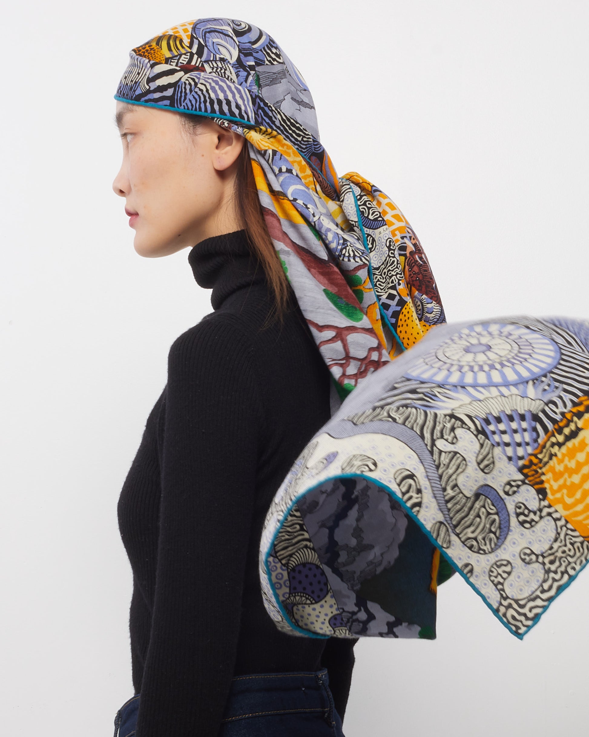 Blue Green Muti Sieste au Paradis Cashmere Shawl Scarf