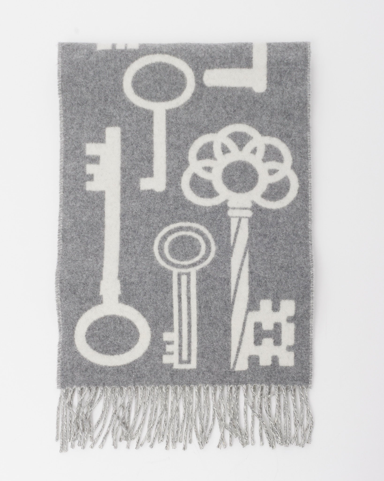Grey and White Casaque Porte-Clefs Cashmere Scarf