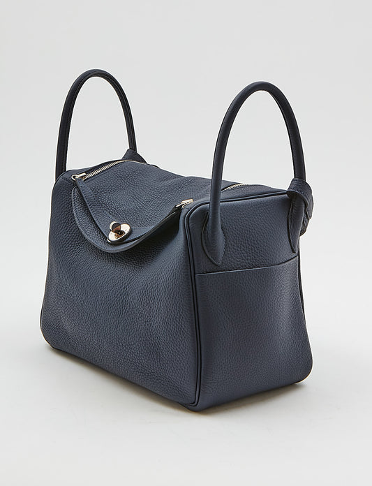 Sac Hermes Bleu Marine Clémence Cuir Palladium Lindy 30