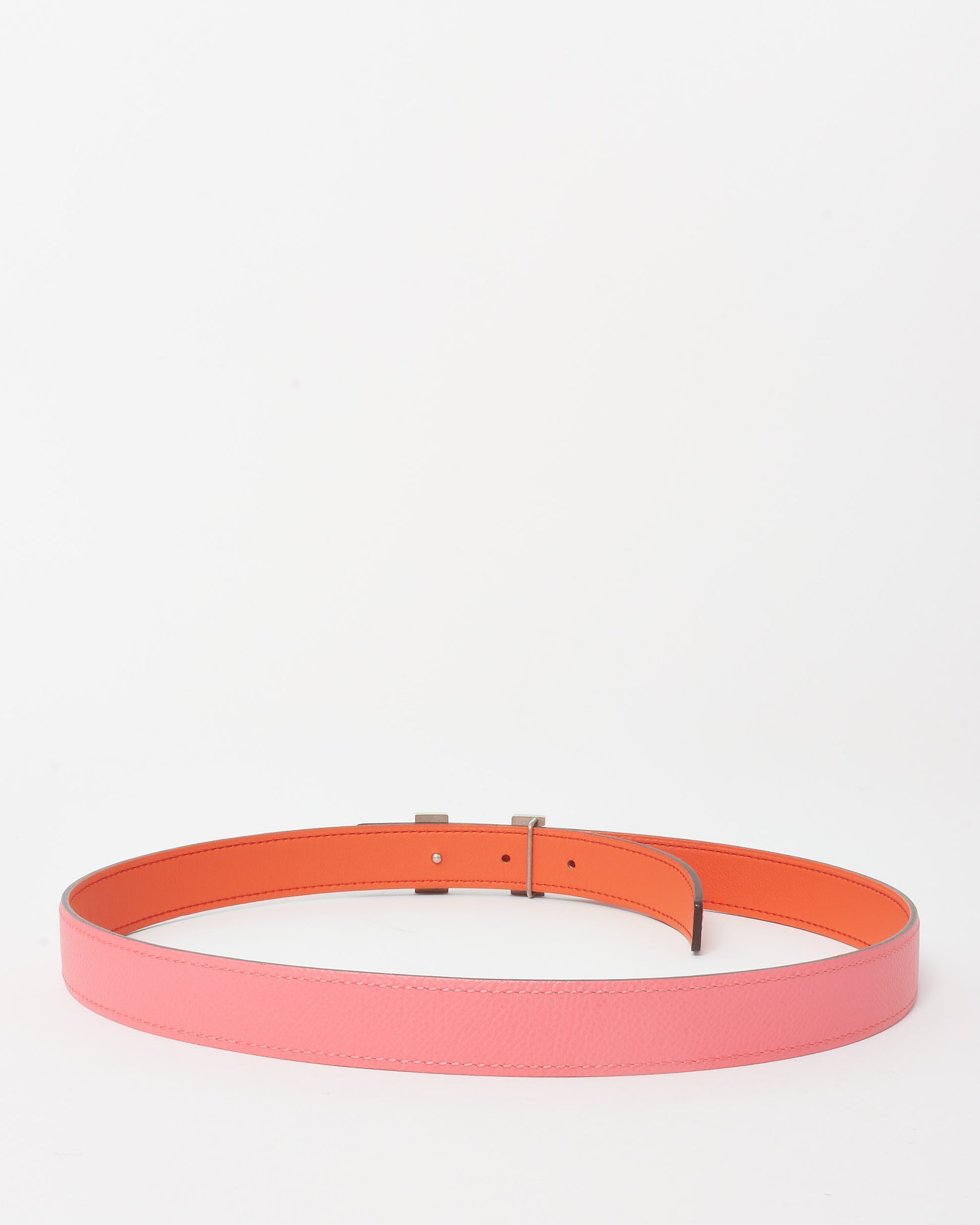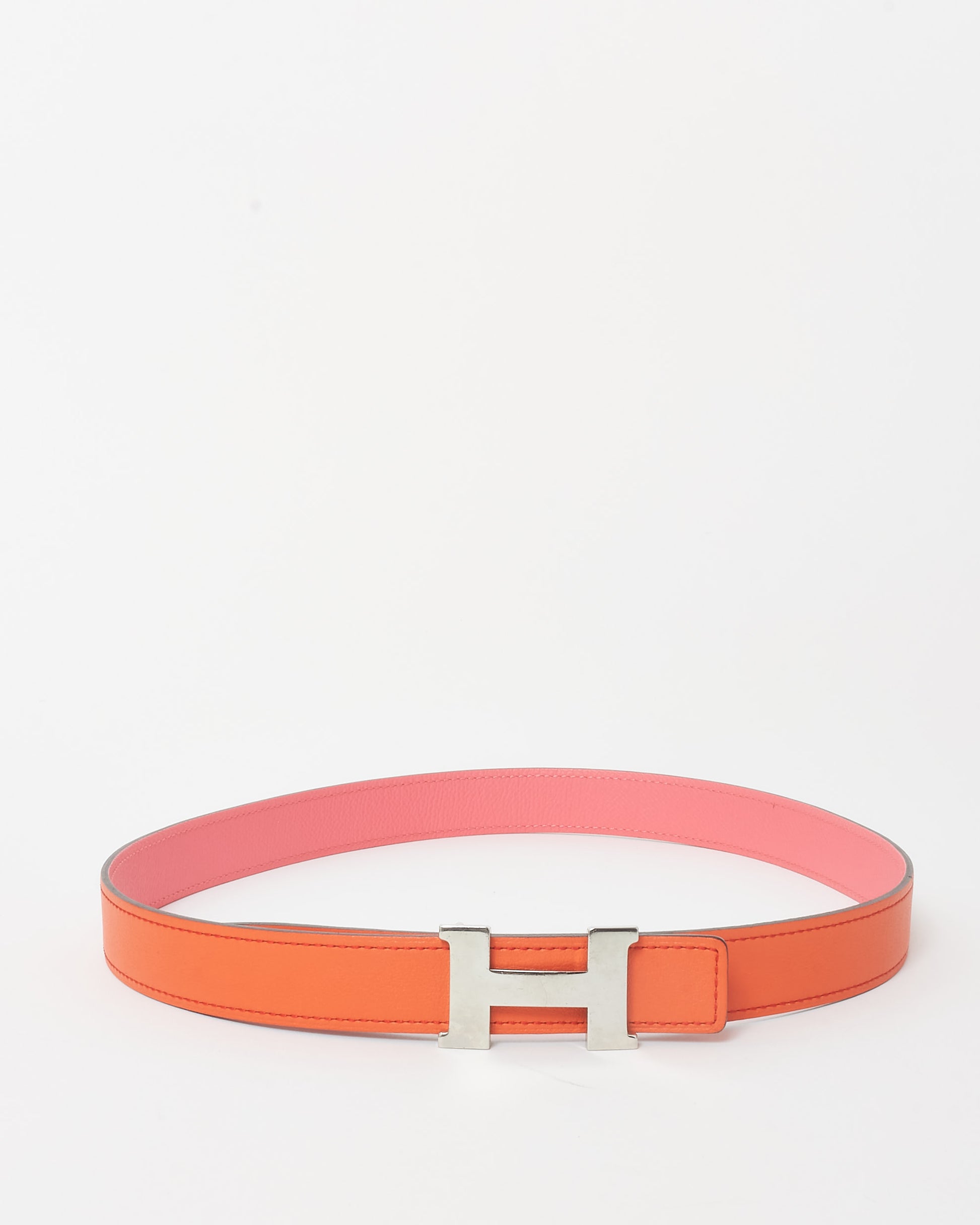 Experience the pinnacle of versatility and luxury with this authentic pre-owned Hermès Pink/Coral Reversible Leather 32MM Constance Buckle Belt. Crafted from premium leather, this reversible design offers two stunning shades—soft pink on one side and vibrant coral on the other—making it the perfect accessory to complement any outfit.