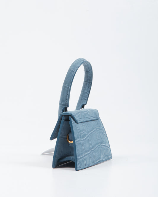 Mini sac Le Chiquito en daim bleu embossé croco