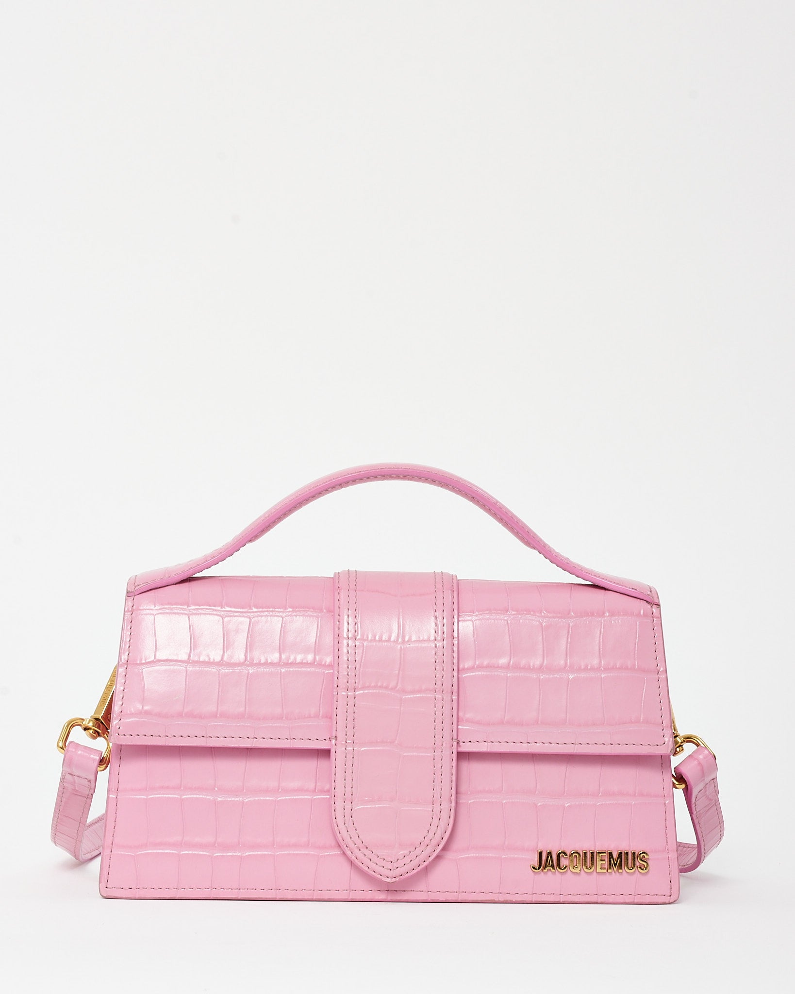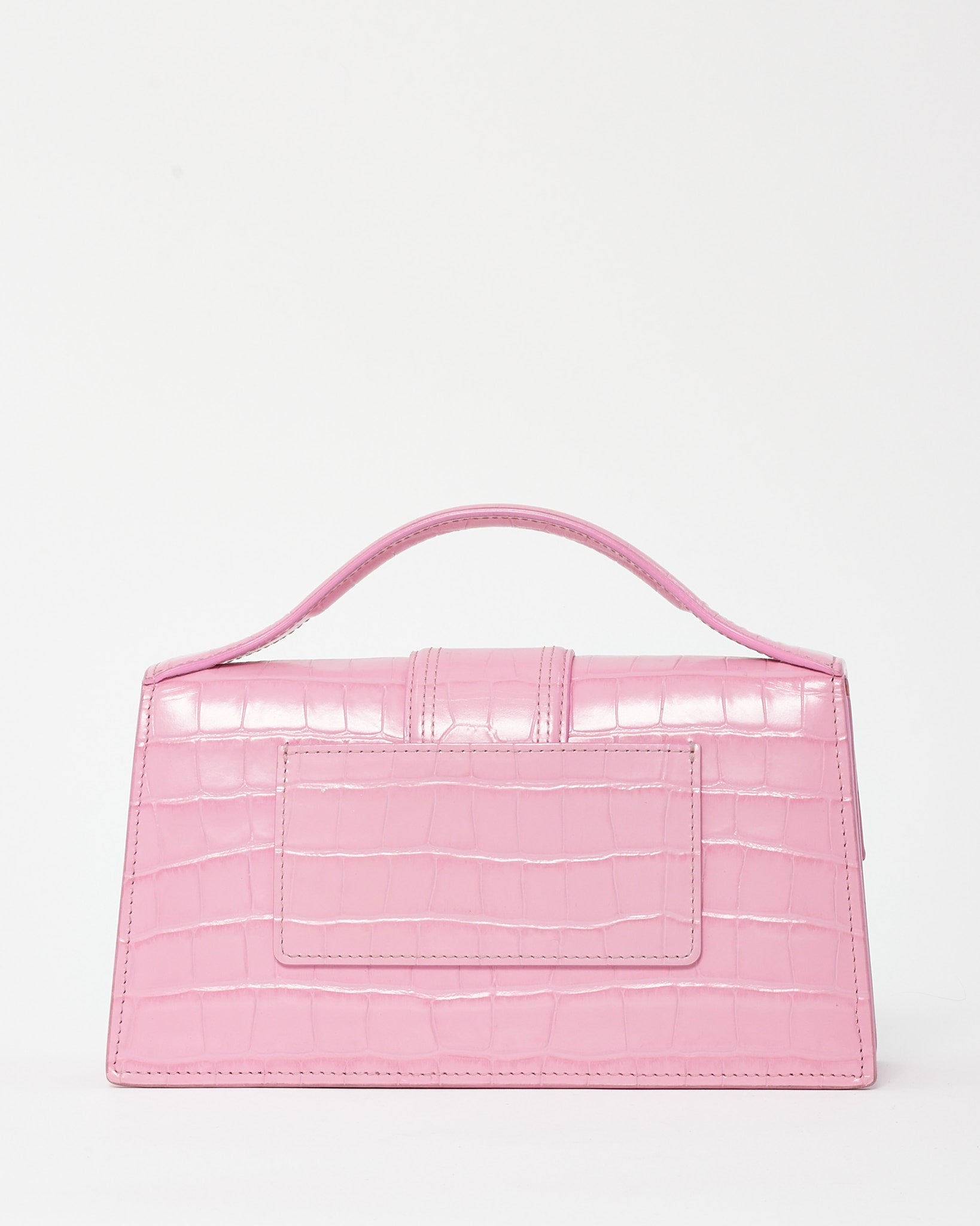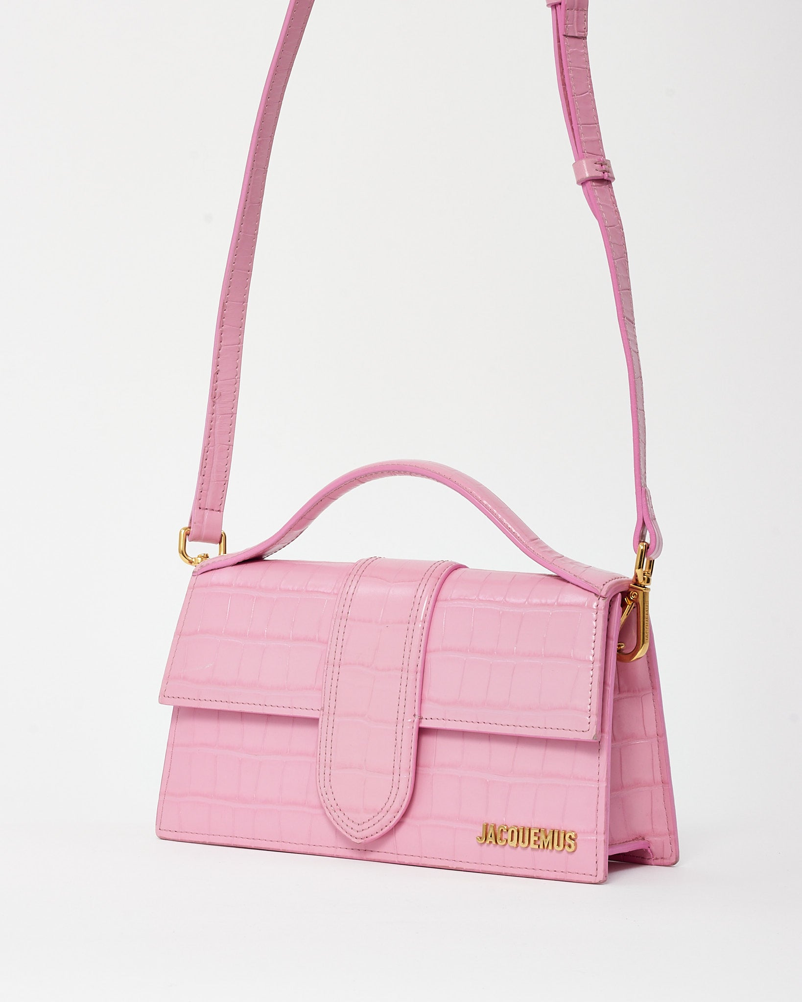 Pink Croc Embossed Leather Le Grand Bambino Bag with Strap
