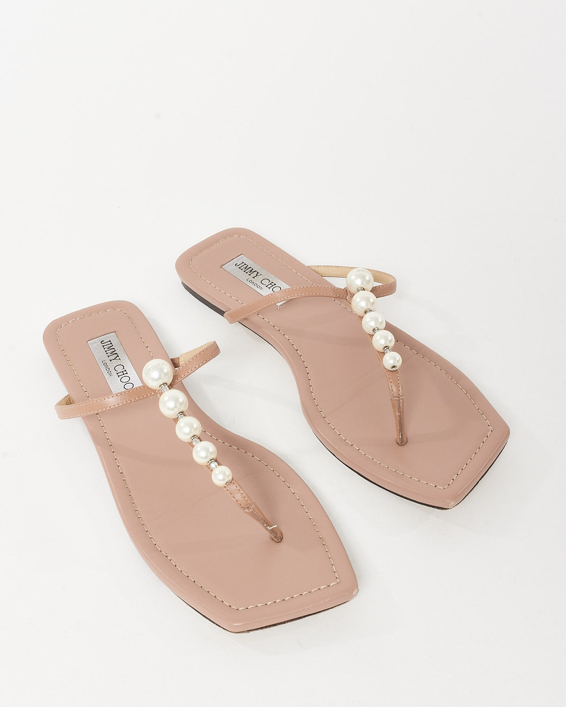 Elevate your step with understated glamour in these pre-owned authentic Jimmy Choo Beige Leather Pearl Alaina Sandals. Crafted in smooth beige leather, this effortlessly chic pair features delicate pearl embellishments that add a graceful, luminous finish to every stride.