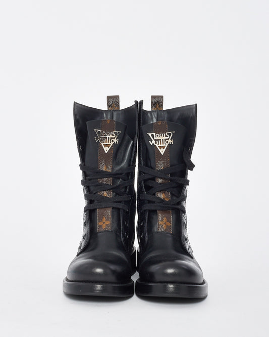 Bottes de combat Metropolis Ranger en cuir noir et monogramme - 37,5