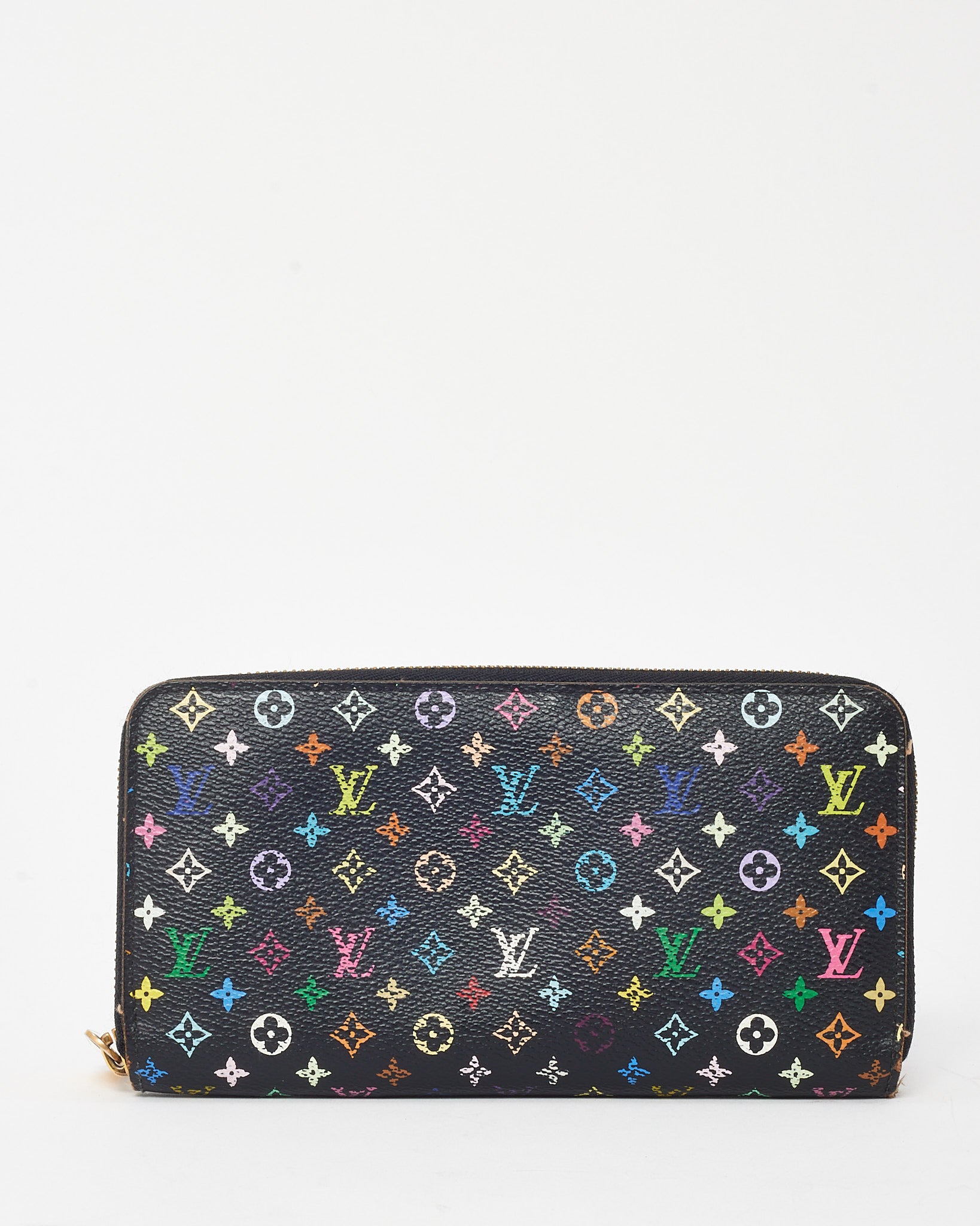 Add a pop of playful sophistication to your accessories with this pre-loved authentic Louis Vuitton Black Monogram Multicolore Zippy Wallet. Designed in collaboration with artist Takashi Murakami, this cult-favorite piece features vibrant multicolored LV monogram motifs printed on black coated canvas, paired with gold-tone hardware and a wraparound zip closure. Inside, a well-organized layout offers multiple card slots, compartments, and a zip coin pocket—perfect for daily use with artistic flair. Bold, functional, and collectible, it’s a standout addition to any luxury collection.