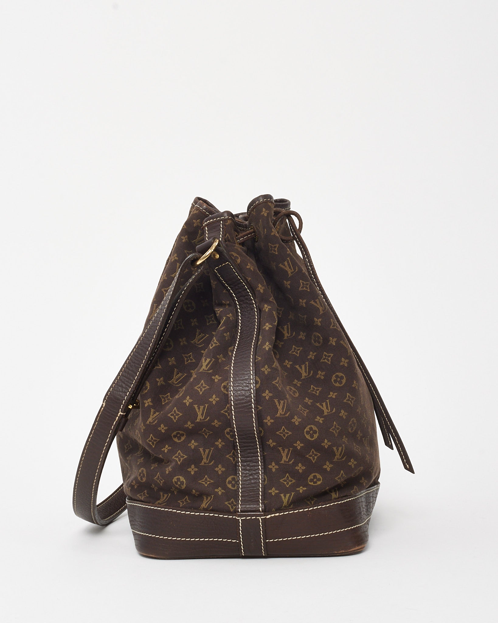 Chic and casually structured, this pre-owned authentic Louis Vuitton Noé GM Bag is crafted from brown Monogram Mini Lin canvas with tonal leather trim and gold-tone hardware. The classic drawstring top opens to a spacious interior lined in canvas, designed to carry your daily essentials with ease.