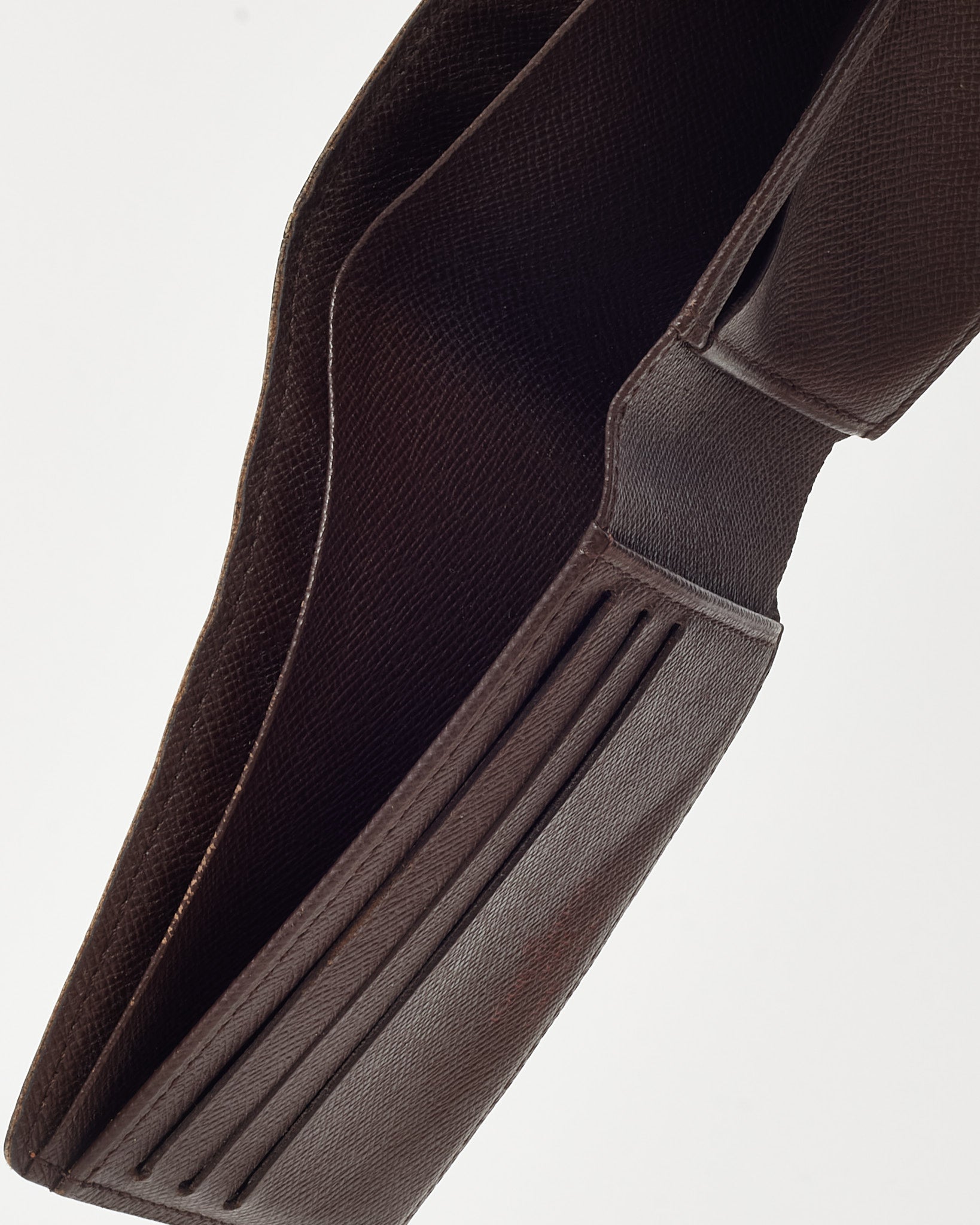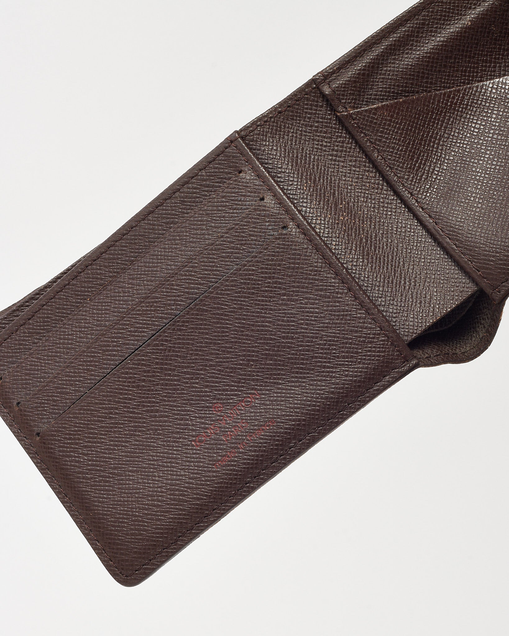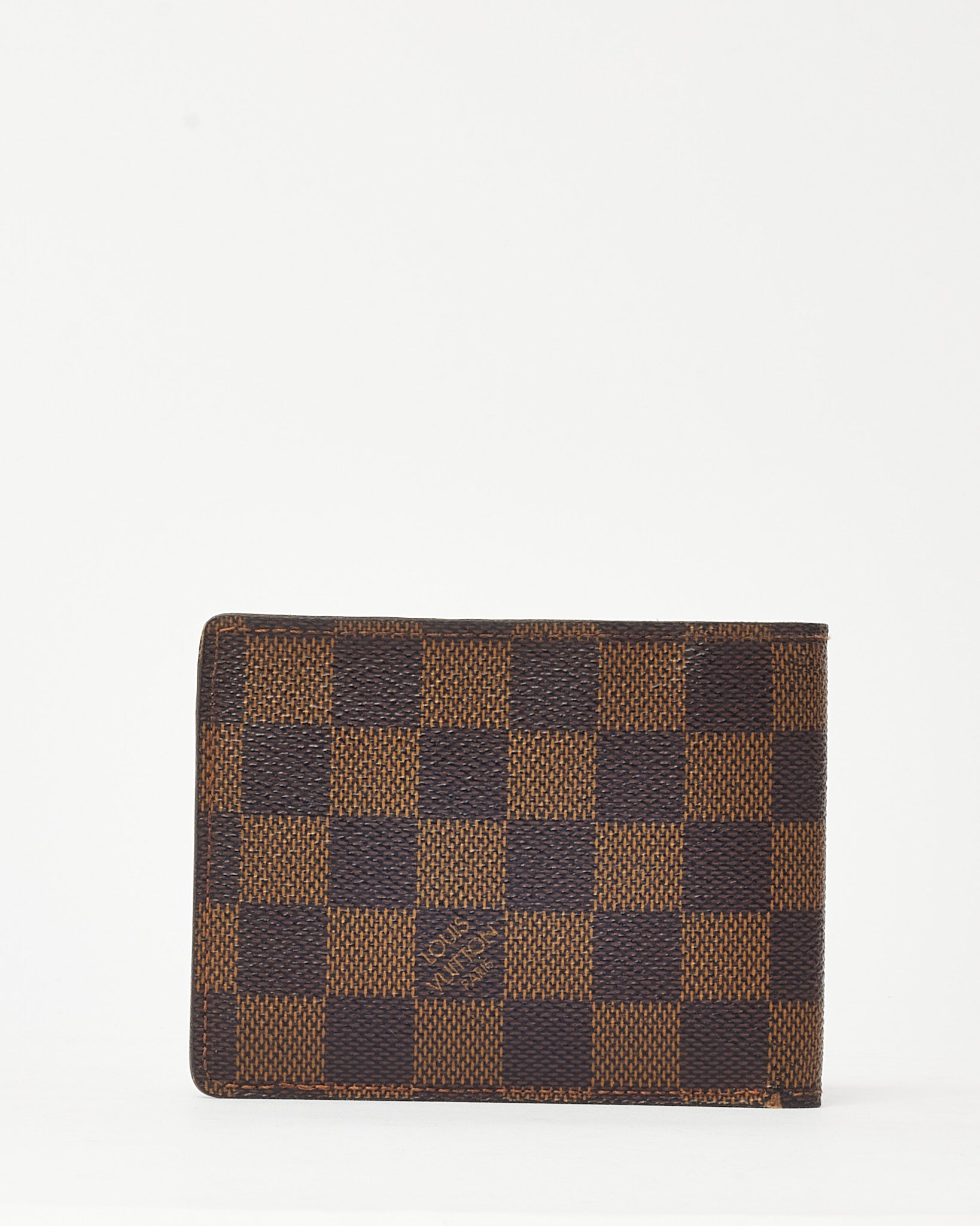 Streamline your everyday essentials with this pre-loved authentic Louis Vuitton Damier Ebene Coated Canvas Multiple Bi-Fold Wallet, crafted in the iconic Damier Ebene coated canvas for durability and timeless appeal. Designed with a compact bi-fold silhouette, this luxury Louis Vuitton wallet features multiple card slots, bill compartments, and a slim profile that fits comfortably in your pocket. The rich brown checkered pattern and refined craftsmanship reflect the house’s heritage design codes, making it a versatile and sophisticated accessory for daily use. A classic designer men’s wallet that blends functionality with unmistakable Louis Vuitton style.