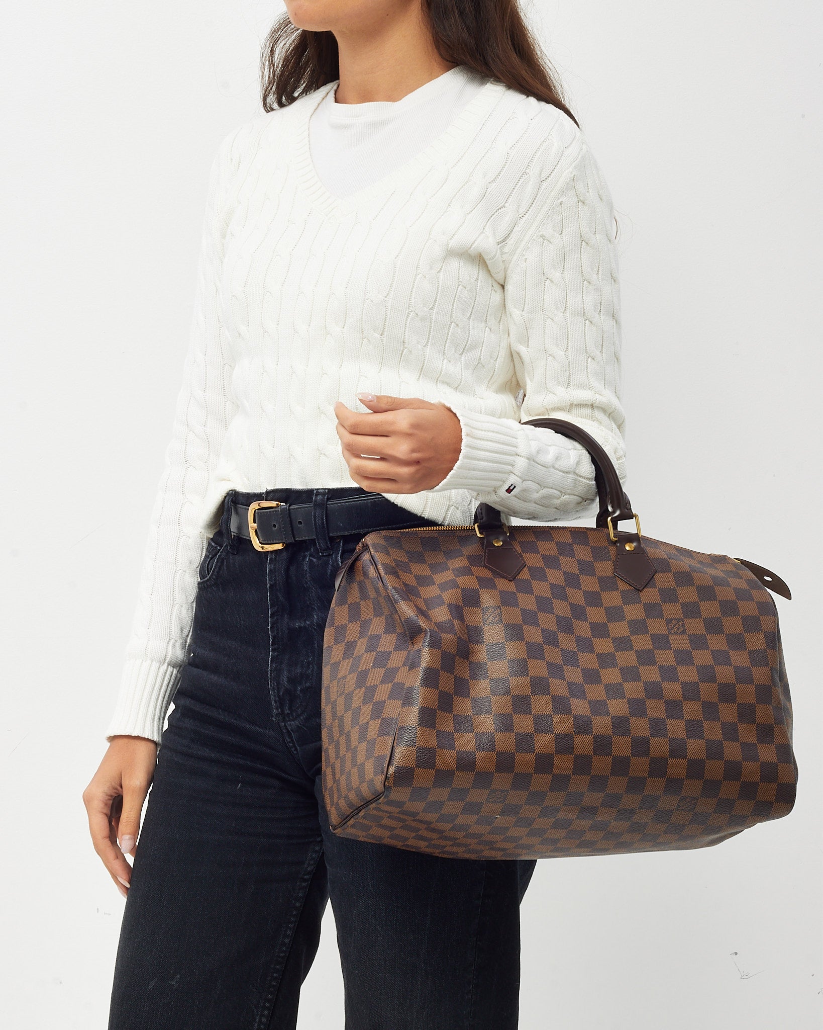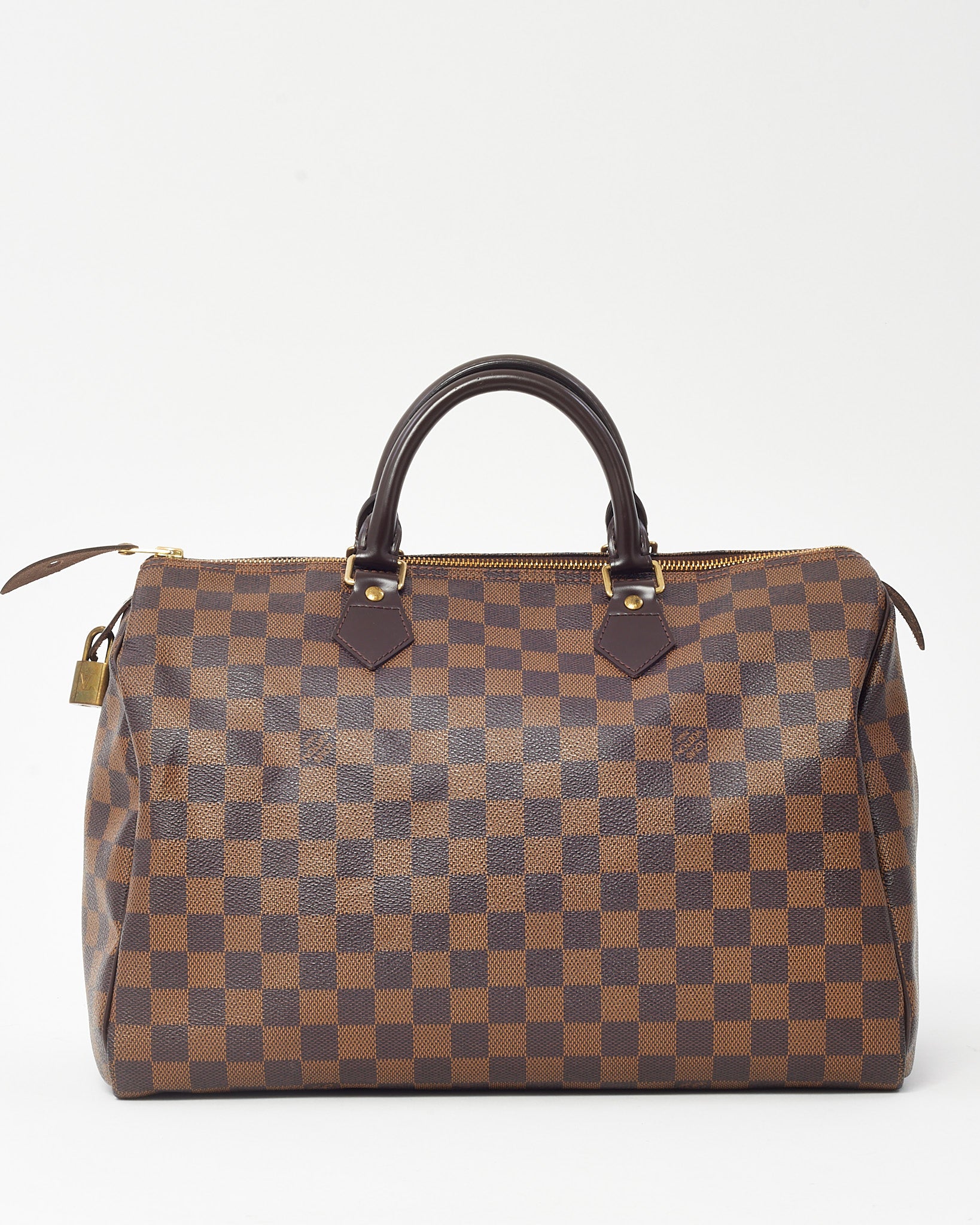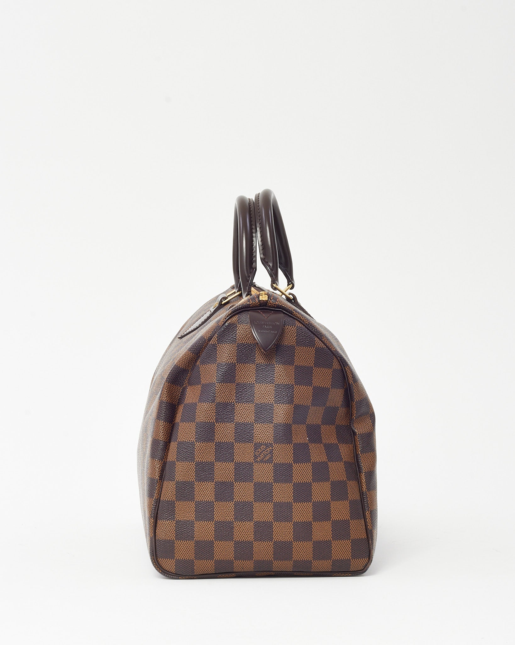 Add a timeless classic to your collection with this pre-loved authentic Louis Vuitton Speedy 35 Bag in Damier Ebene coated canvas. Known for its iconic silhouette and lightweight structure, this spacious handbag features elegant brown checkered canvas, smooth leather trim, and gold-tone hardware. Dual top handles and a secure zip closure make it ideal for daily use or travel, while the roomy interior offers effortless organization. A versatile staple that embodies the elegance and durability of Louis Vuitton craftsmanship.