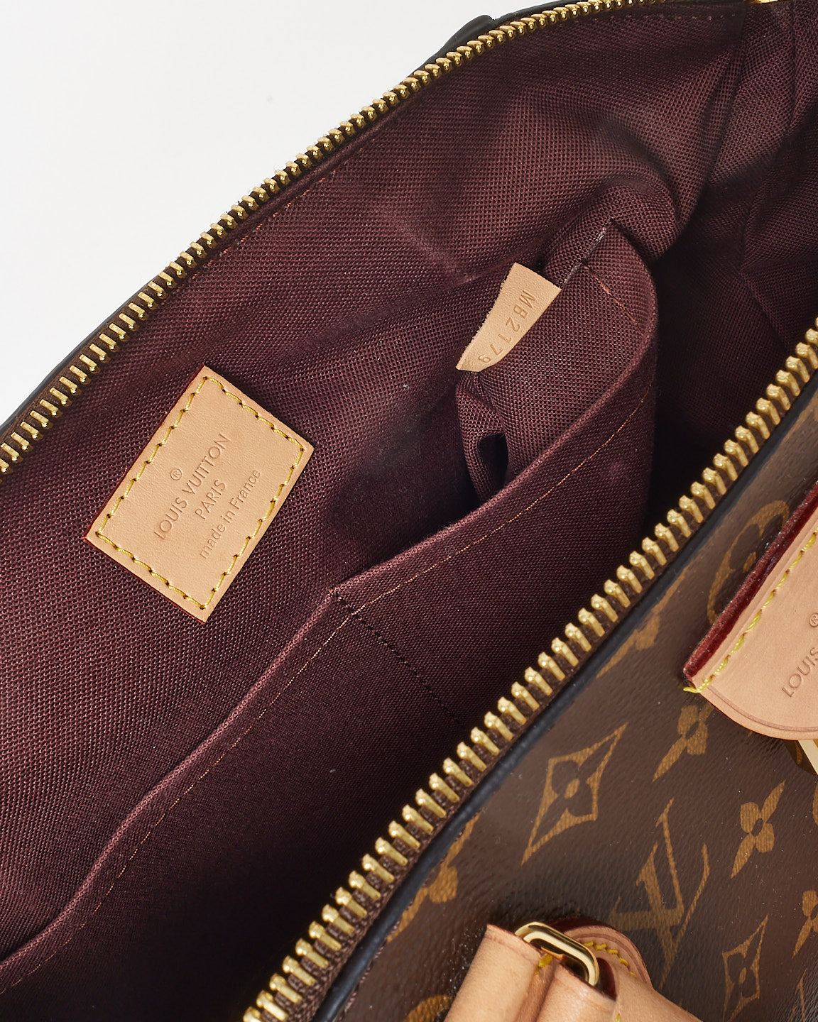 Timeless elegance meets everyday versatility in this pre-owned authentic Louis Vuitton Monogram Canvas Rivoli MM Handbag. Crafted in the house’s signature Monogram coated canvas with natural Vachetta leather trim, this structured silhouette is both polished and practical.
