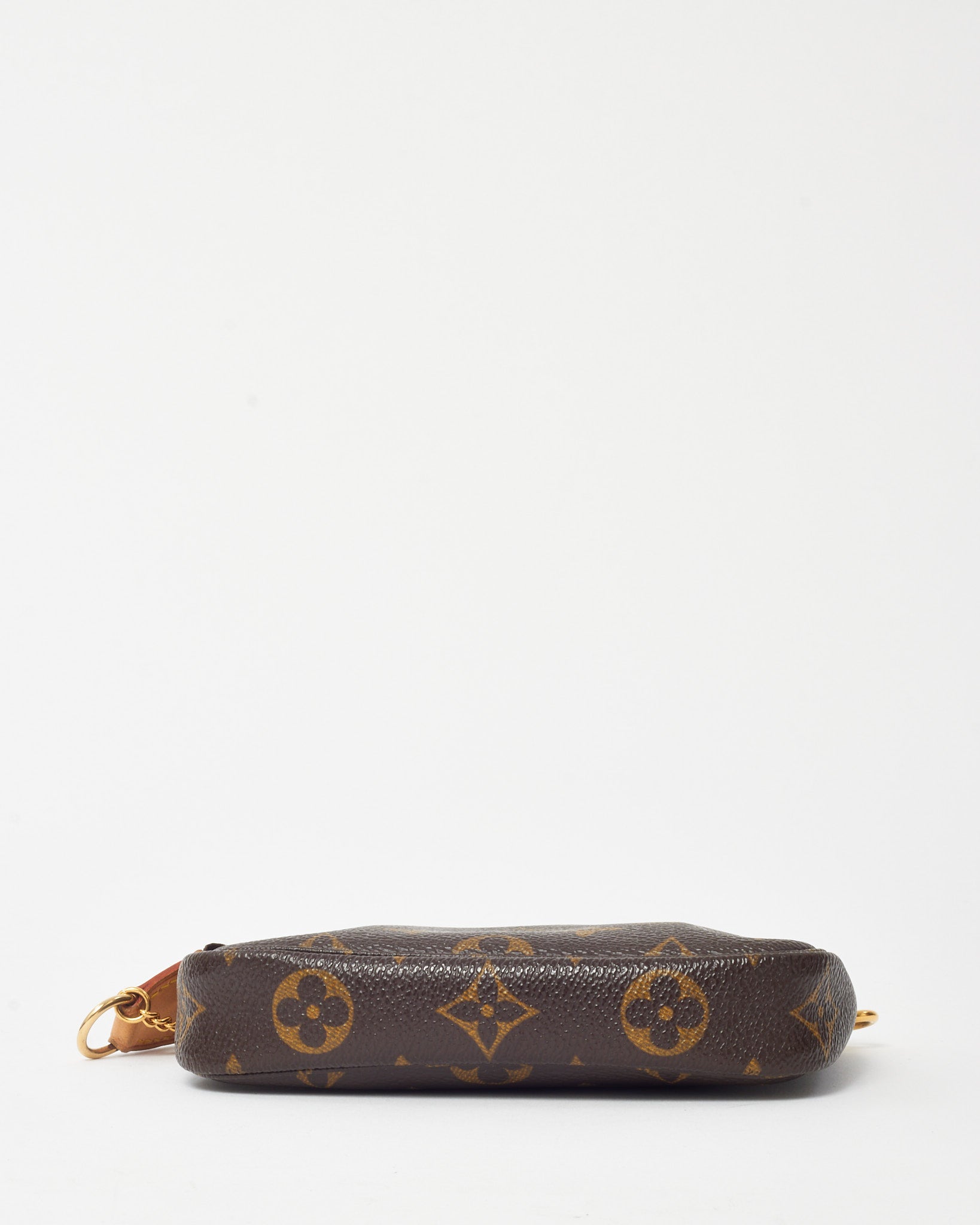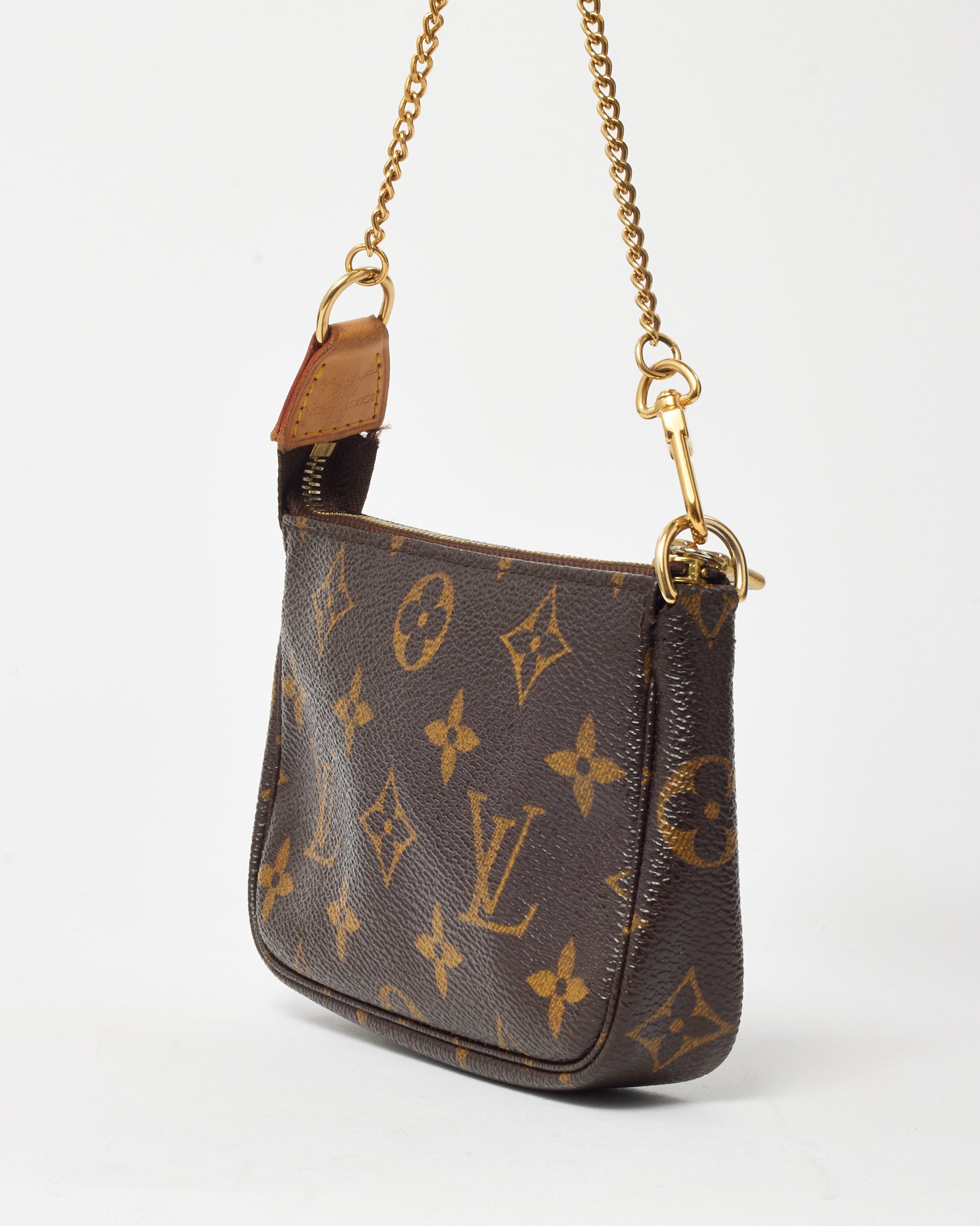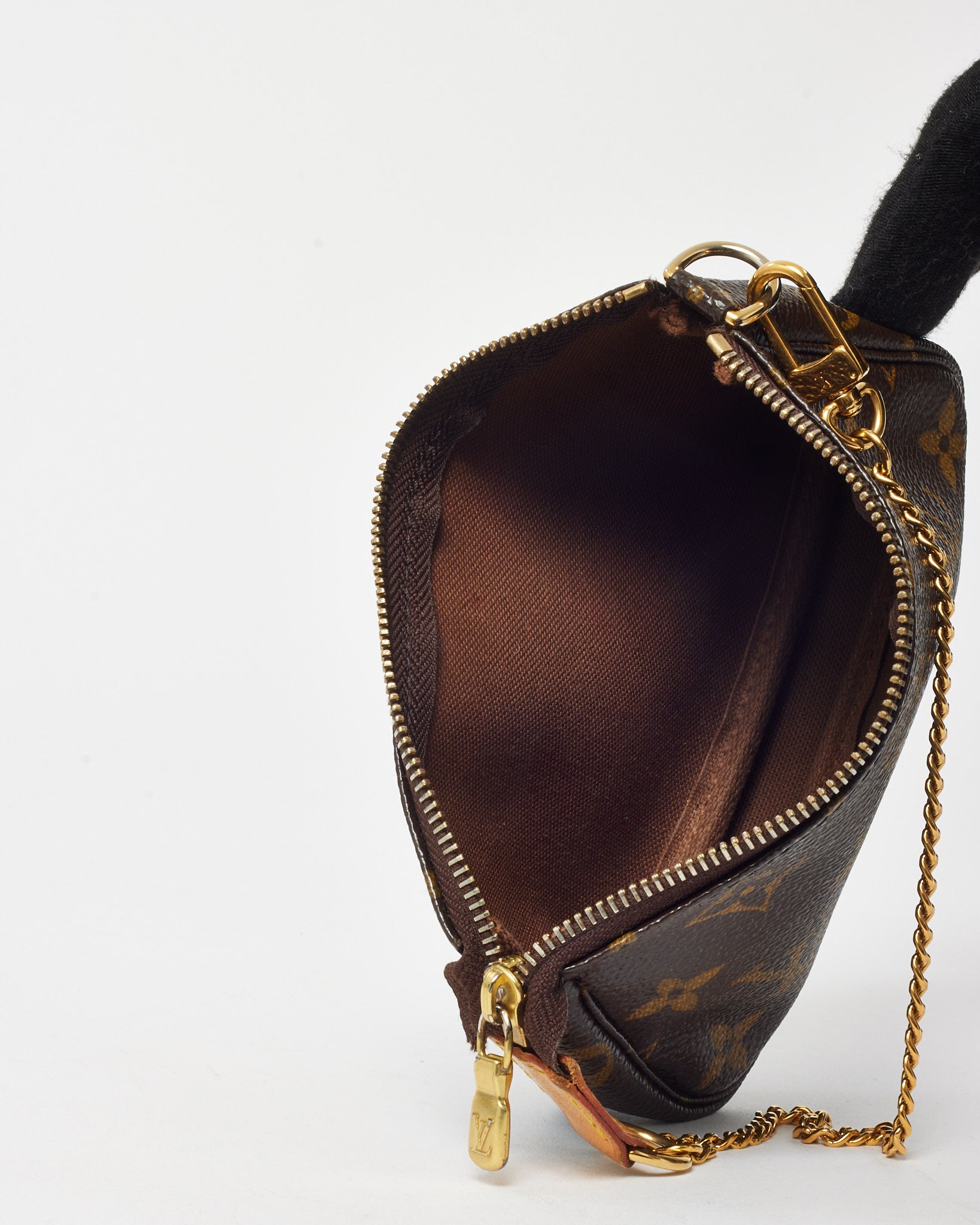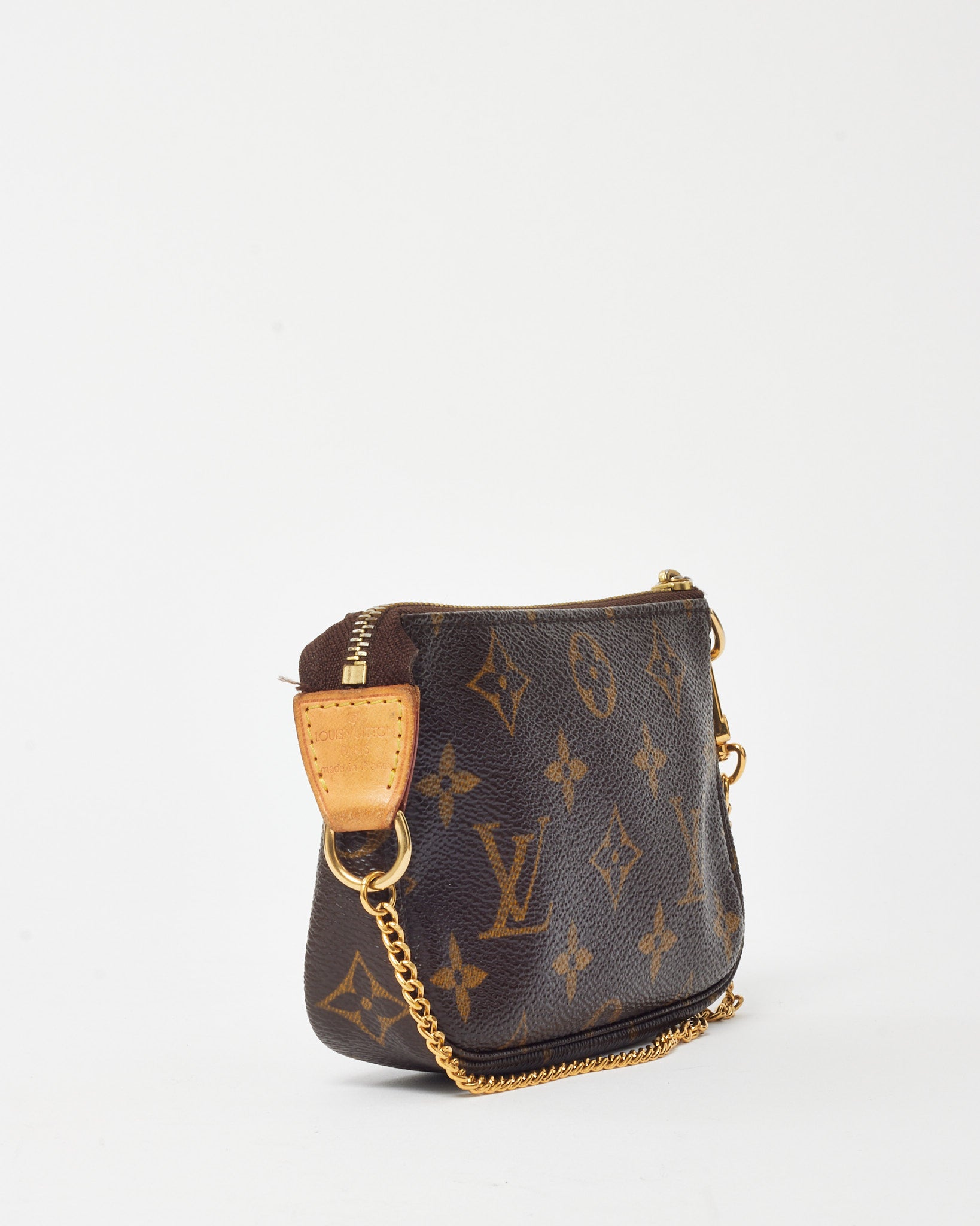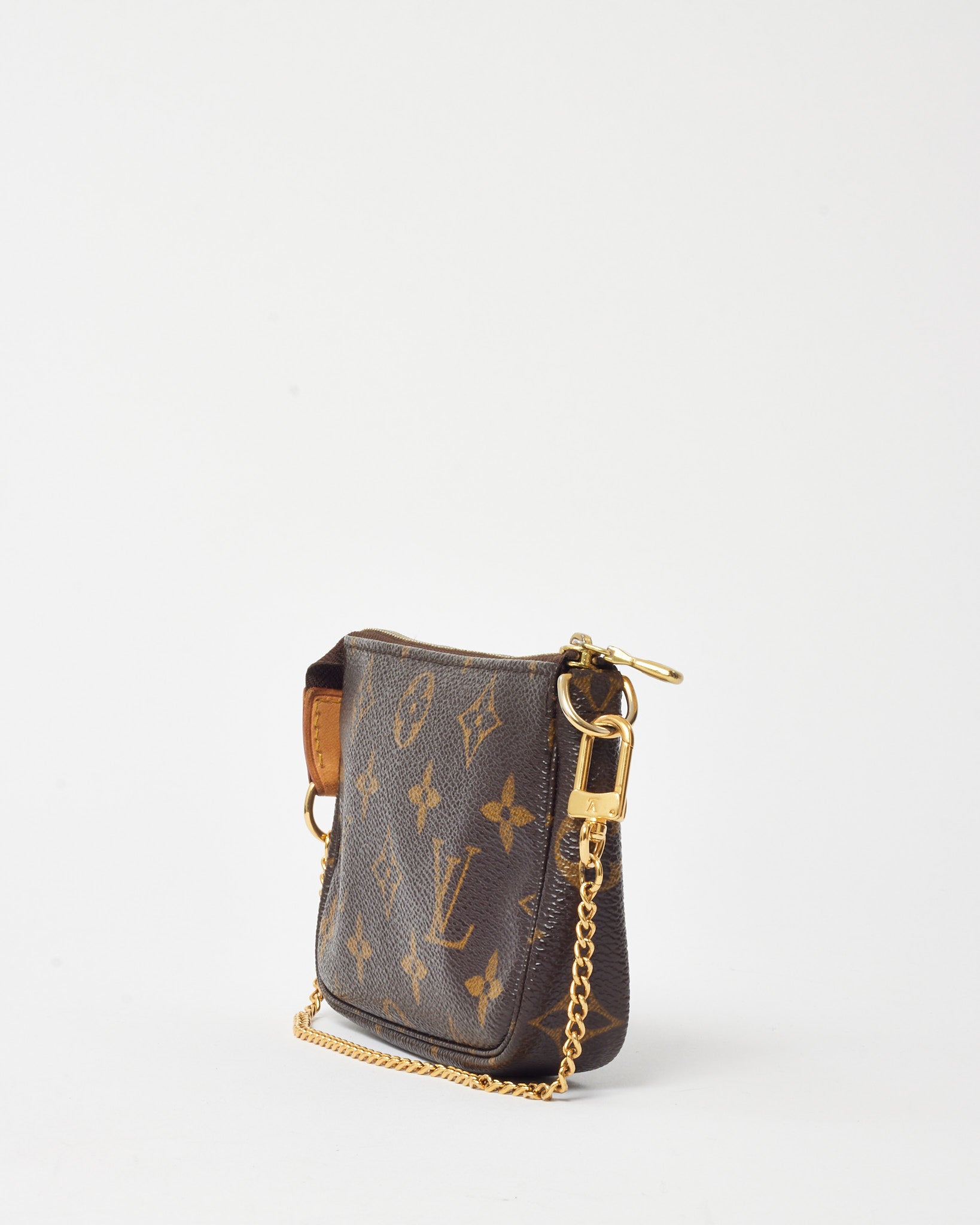 Add a touch of iconic elegance to your essentials with this pre-loved authentic Louis Vuitton Monogram Coated Canvas Mini Pochette Accessoires. Crafted from the house’s signature Monogram coated canvas with natural Vachetta leather trim, this compact pouch features a gold-tone chain strap and zip-top closure for secure and stylish storage. Perfect for holding small items like keys, cards, or cosmetics, it can be carried as a wristlet, crossbody with a chain extender, or inside a larger bag. Chic, versatile, and timeless, it’s the perfect everyday LV accessory.