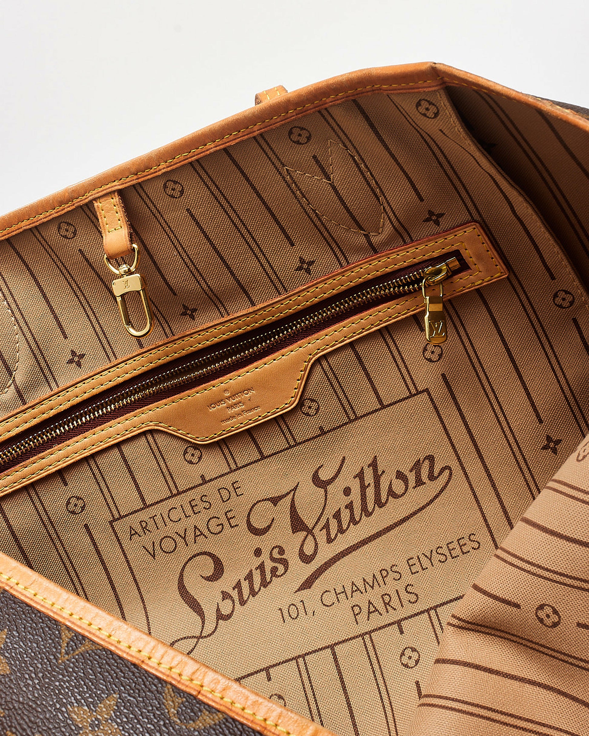 This is an authentic pre-owned Louis Vuitton Neverfull GM Tote Bag in Monogram Coated Canvas is a timeless and practical accessory for everyday use or travel. Designed with spacious proportions and a classic silhouette, this iconic tote effortlessly combines functionality with the luxury of Louis Vuitton’s signature craftsmanship. Durable Monogram coated canvas with smooth Vachetta leather trim and handles that develop a beautiful patina over time. Gold-tone hardware, interior clasp closure and interior zip pocket. Shop pre-owned Louis Vuitton handbags at Retyche.