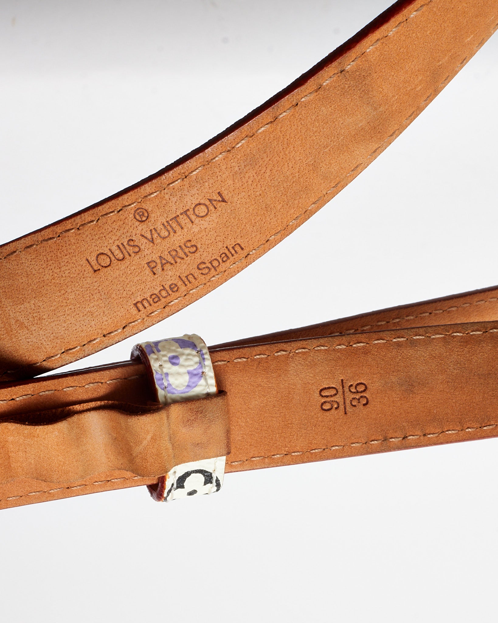 Murakami White Monogram Multicolor Gold Buckle Belt - 90/36