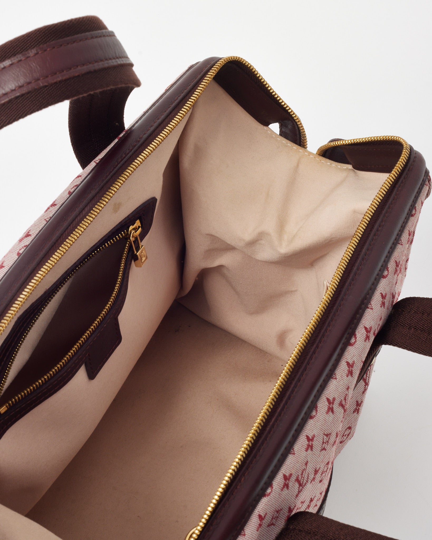 Feminine and functional, this pre-loved authentic Louis Vuitton Pink Monogram Mini Lin Canvas Josephine GM Tote Bag blends soft structure with timeless elegance. Crafted from lightweight mini lin canvas in a romantic pink hue, this roomy silhouette features contrasting leather trim, rolled top handles, and gold-tone hardware for a refined finish. The spacious interior is ideal for daily essentials, while side zip gussets offer expanded storage when needed. A chic and versatile companion, it brings subtle color and luxury to everyday styling.