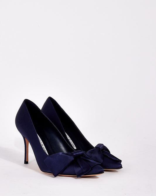 Escarpins à bout pointu avec nœud en satin bleu marine