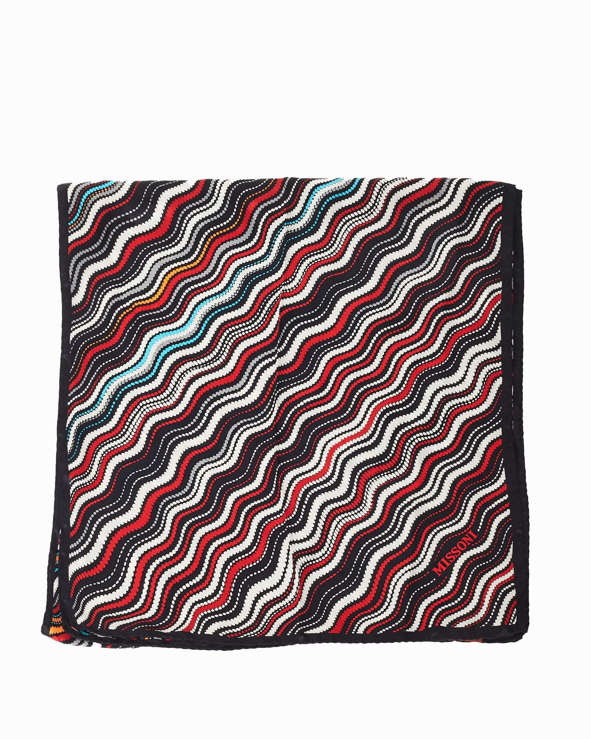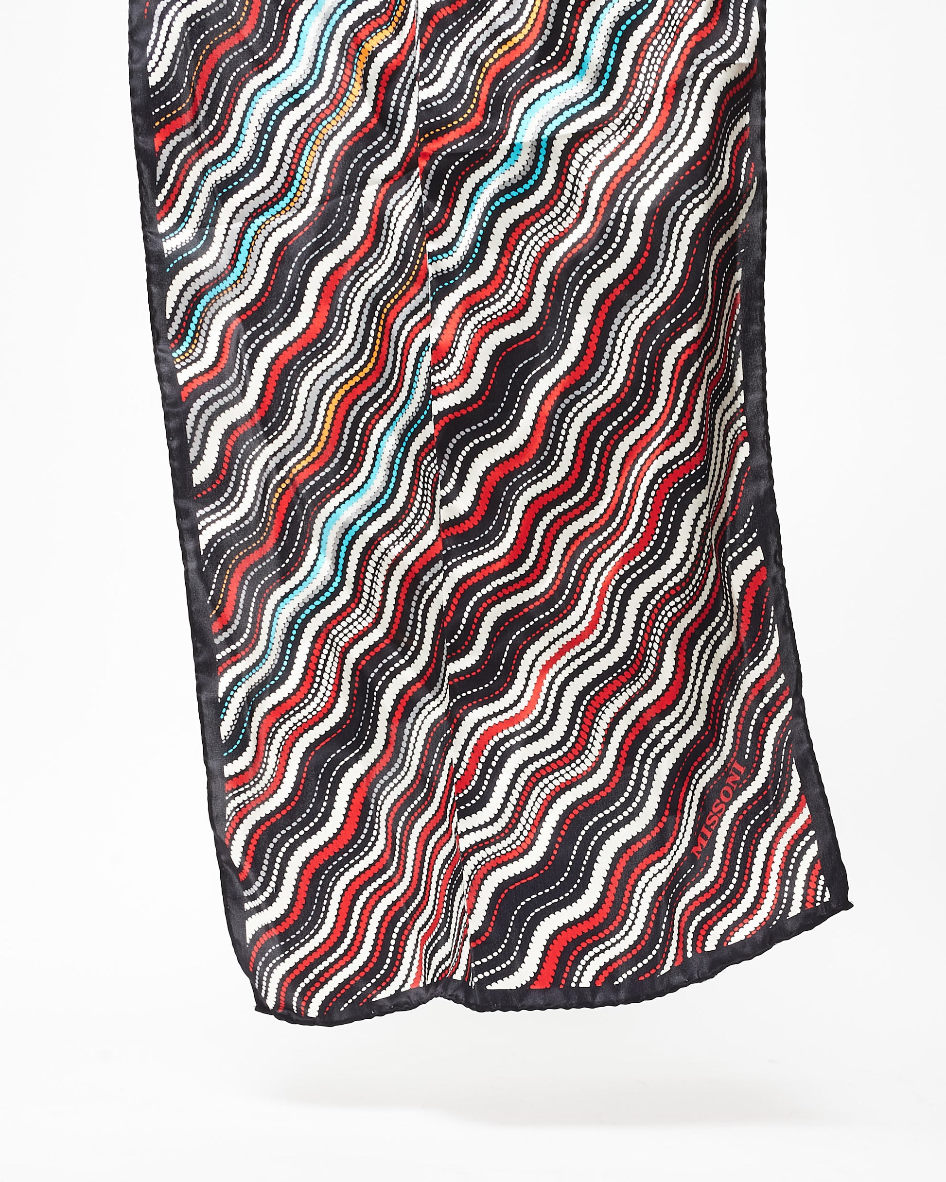 Explore Missoni's exquisite collection of accessories, featuring this certified pre-owned Black Orange Red & Blue Wave Silk Scarf. Embodying timeless elegance and modern sustainability, each piece, including favorites like this, is authenticated by Retyche. Discover sustainable luxury — shop our current treasures or find inspiration for your next coveted find.