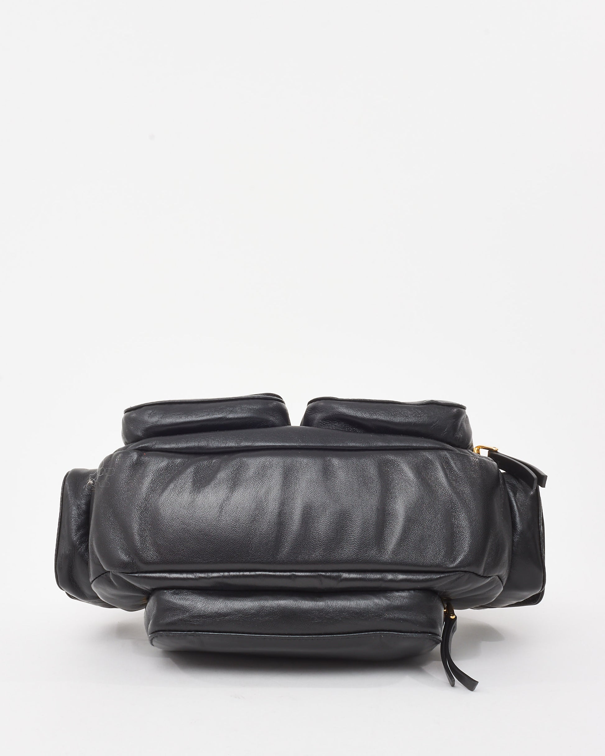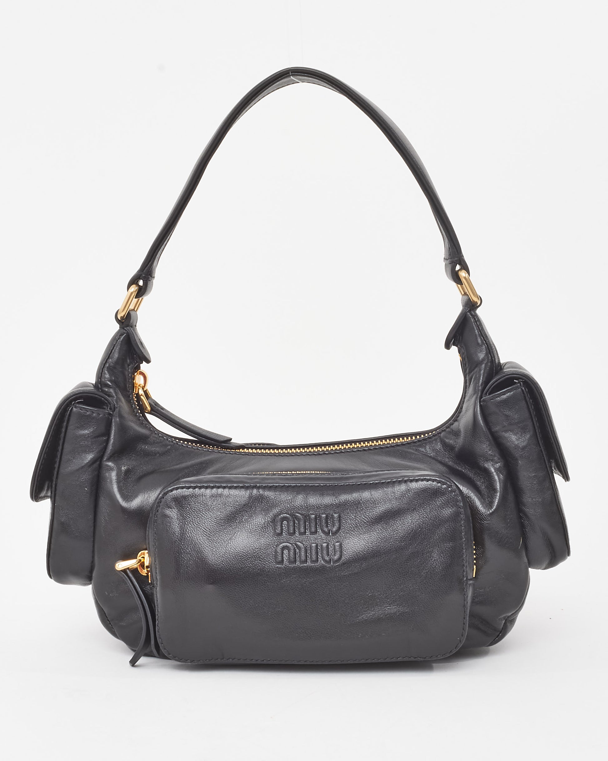 A sophisticated yet practical everyday accessory, the pre-owned authentic Miu Miu Black Nappa Leather Pocket Shoulder Bag blends modern elegance with effortless functionality. Crafted from supple black Nappa leather, this bag features a soft, slouchy silhouette, offering a relaxed yet refined look.