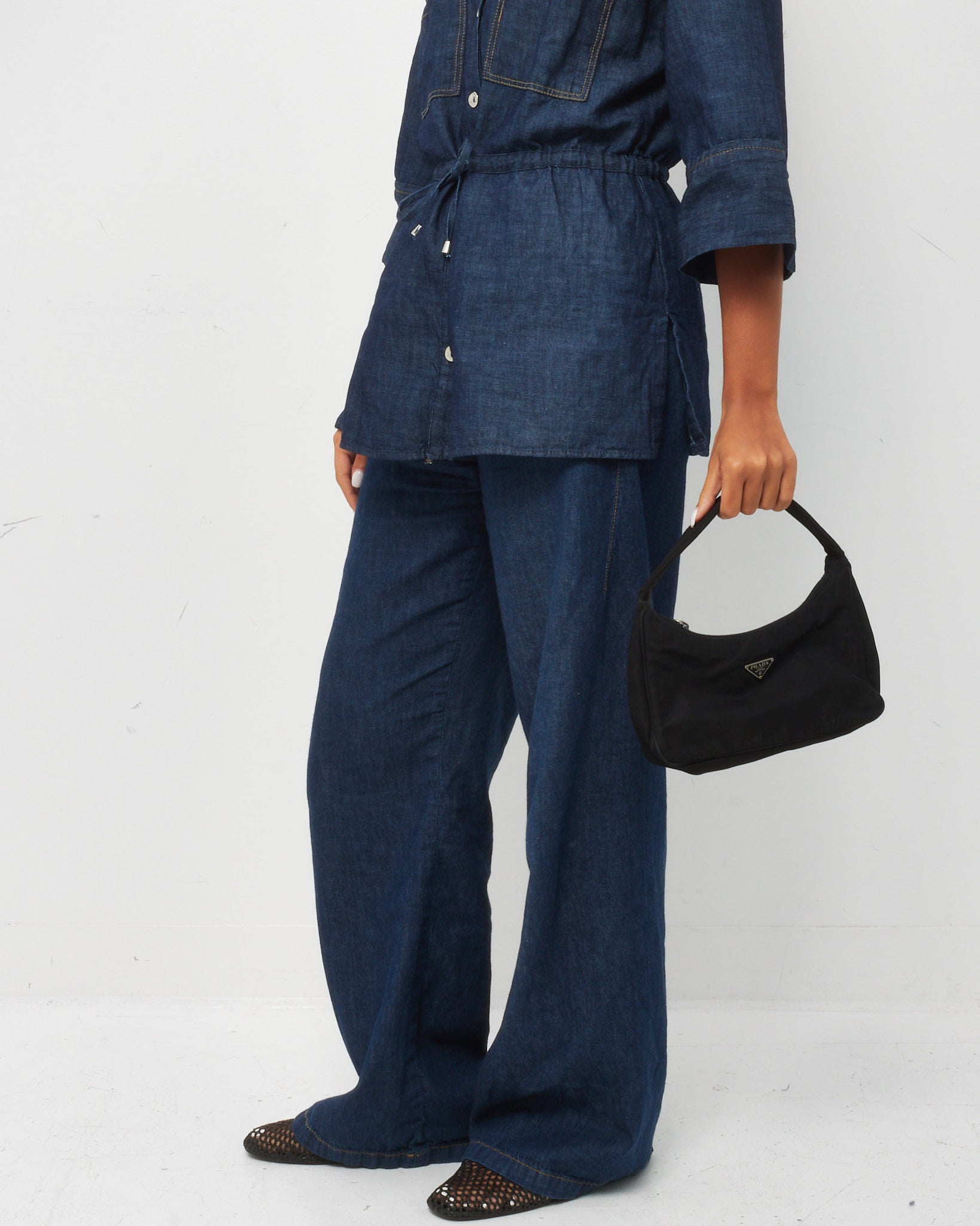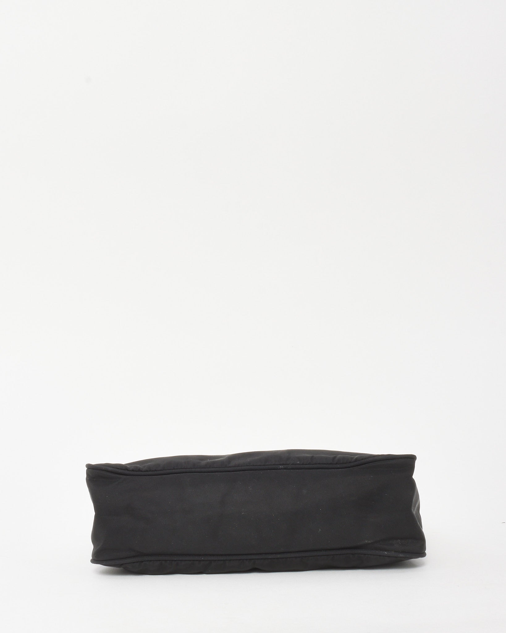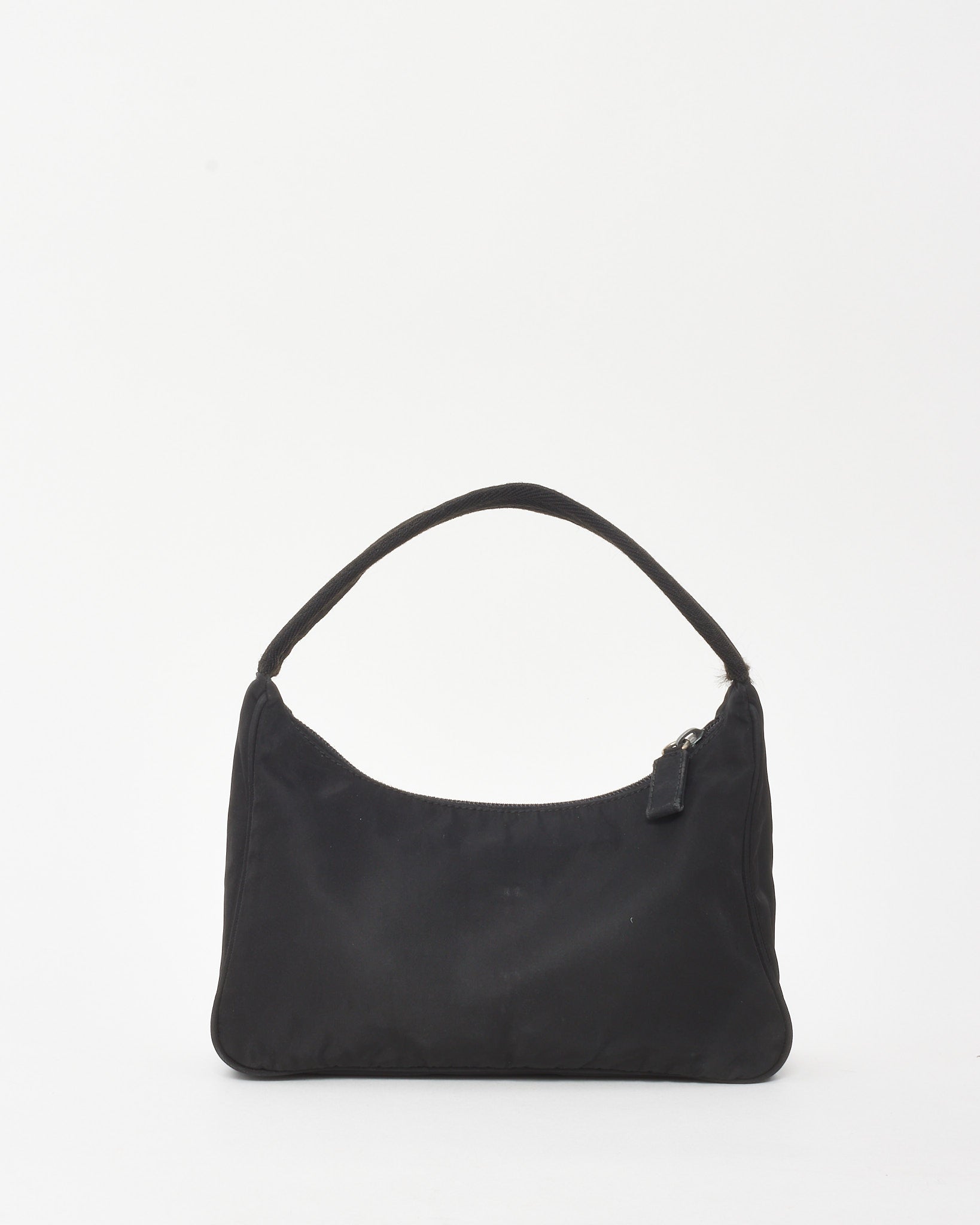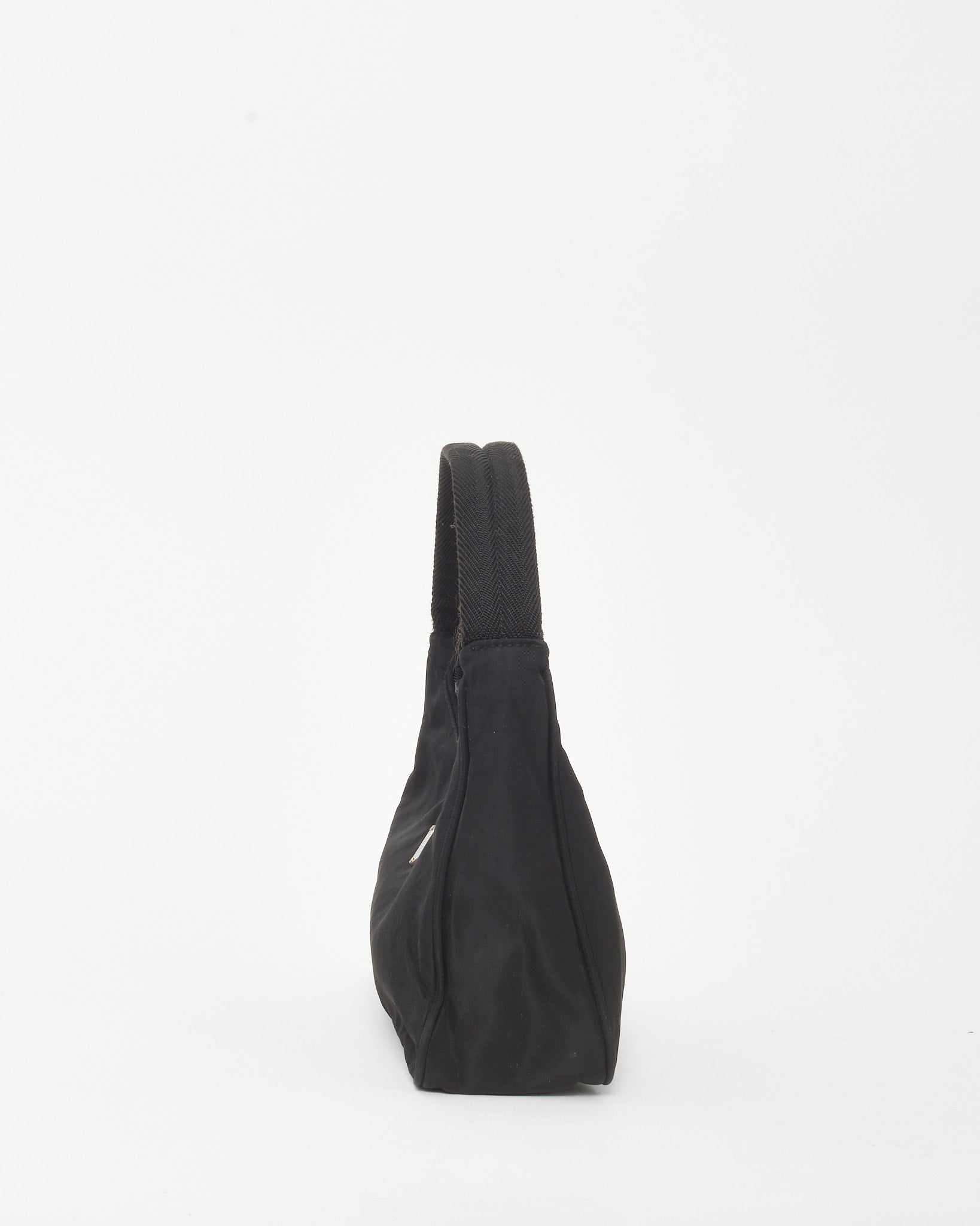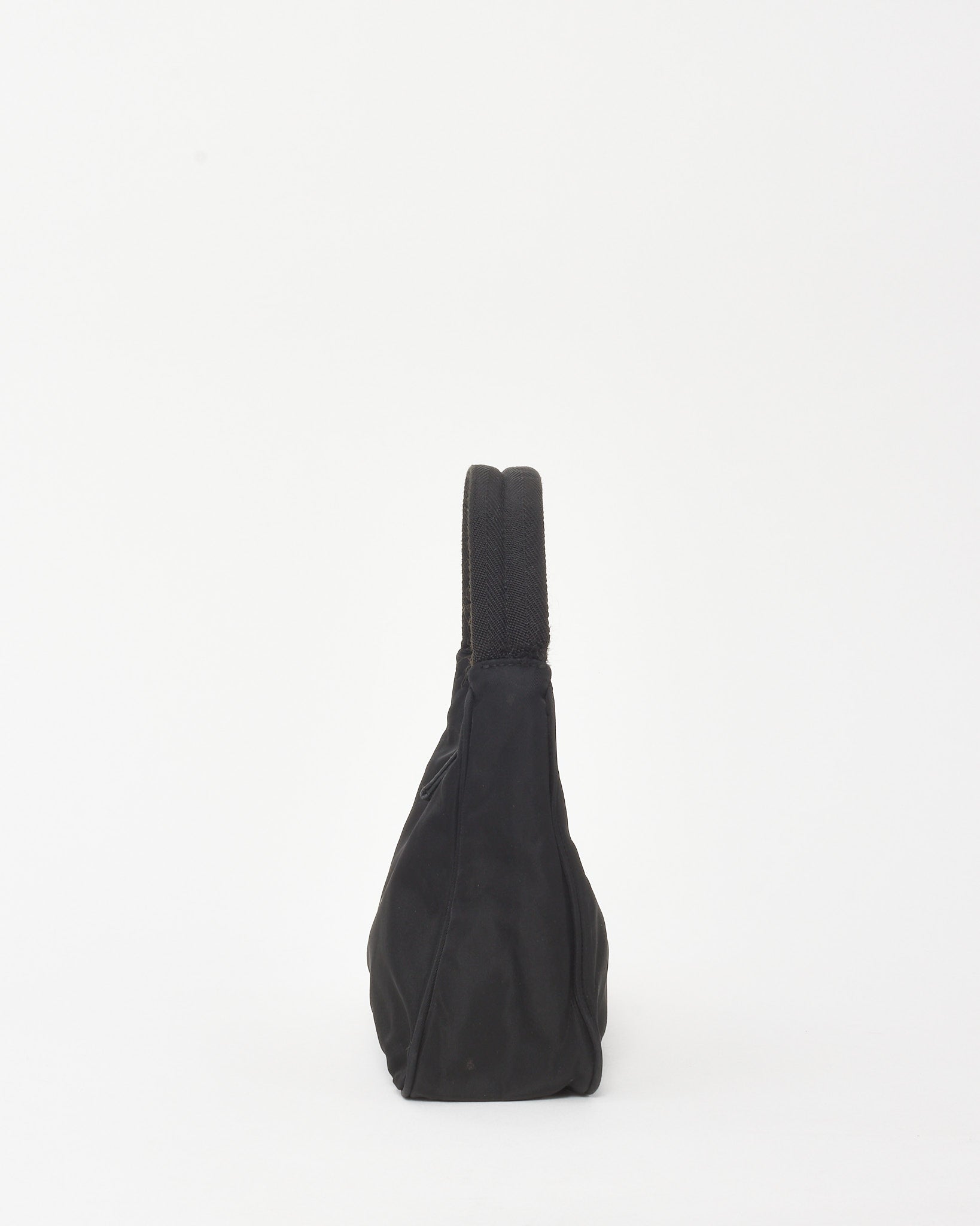 A nod to Y2K nostalgia, this pre-loved authentic Prada Mini Hobo Bag is crafted from durable black nylon with sleek lines and minimalist appeal. Accented with the house’s iconic enamel triangle logo and silver-tone hardware, the compact silhouette features a zip-top closure and a comfortable shoulder strap. Lightweight and effortlessly chic, it’s the ultimate everyday essential for understated luxury.