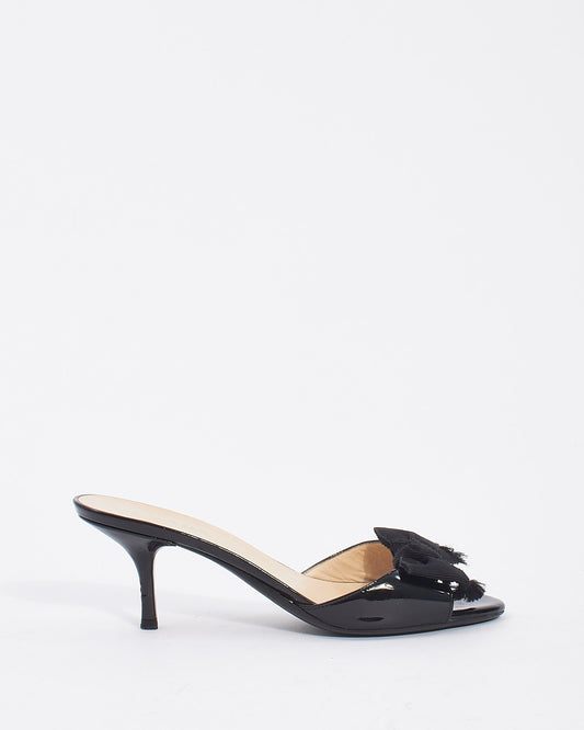 Escarpins mules à talon chaton en cuir verni noir avec nœud - 38,5
