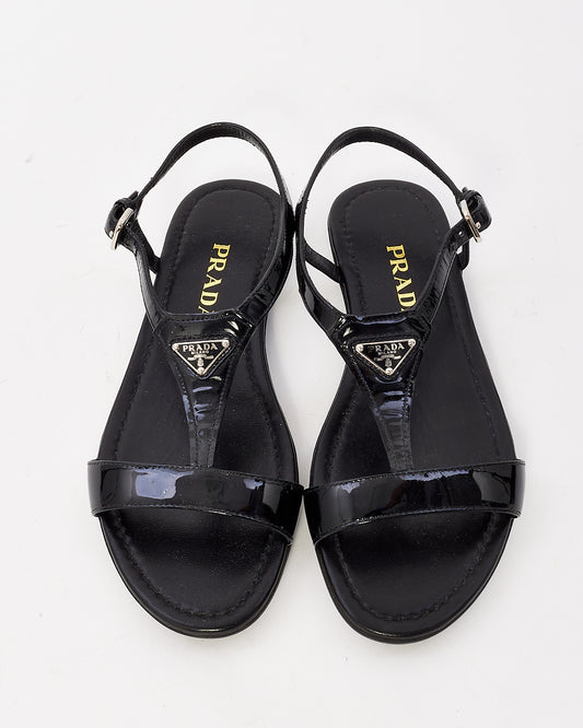 Sandales plates à lanières avec logo en cuir verni noir - 36,5