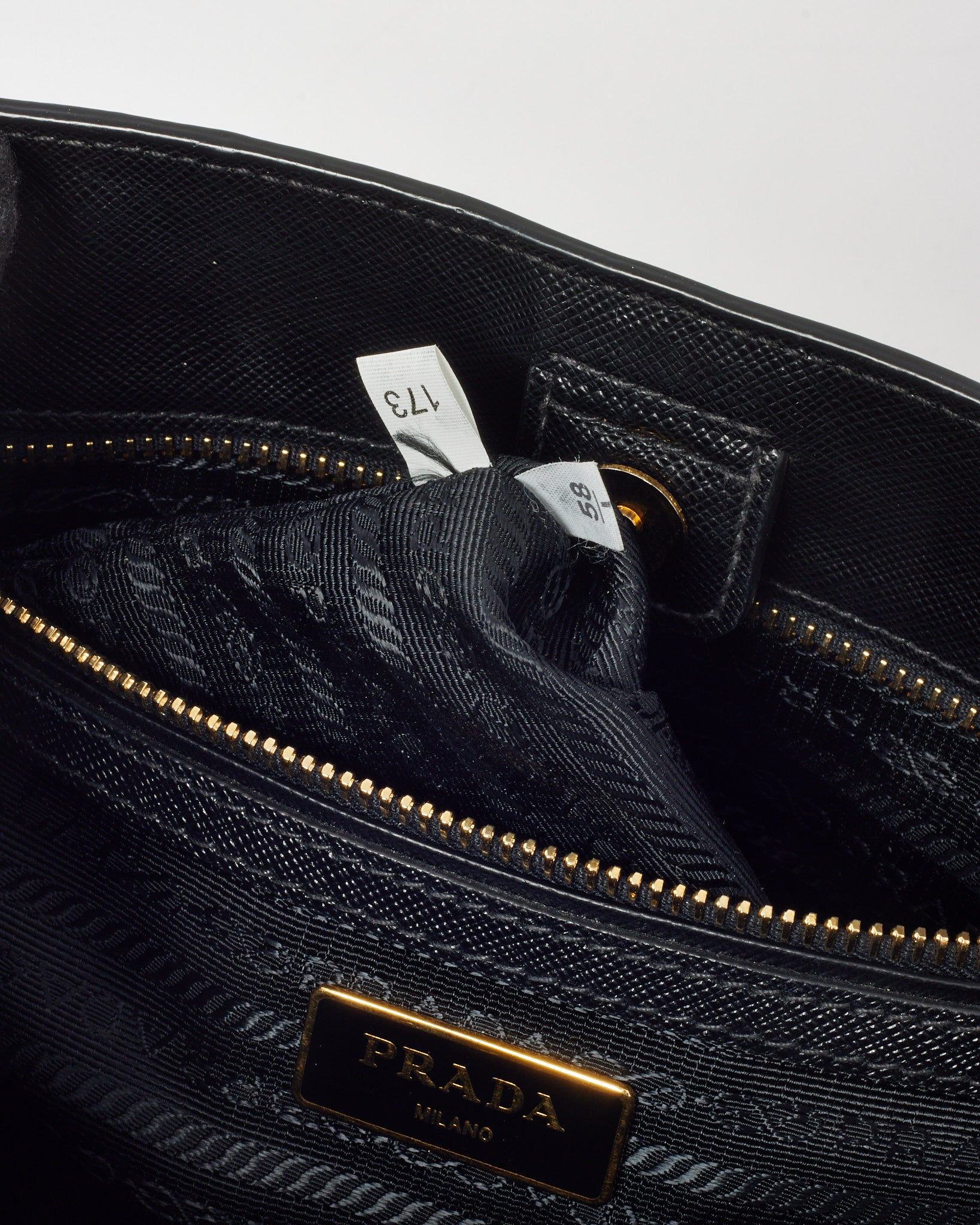 Sleek, structured, and unmistakably elegant, this pre-loved authentic Prada Black Saffiano Leather Medium Galleria Double Zip Tote is a timeless investment piece. Crafted from durable crosshatch Saffiano leather, this sophisticated silhouette features dual rolled handles, two zippered compartments, and a spacious central open section for daily essentials. The iconic triangle logo plaque and gold-tone hardware complete the polished look. Ideal for both professional and casual styling, this tote balances classic Italian luxury with practical functionality.