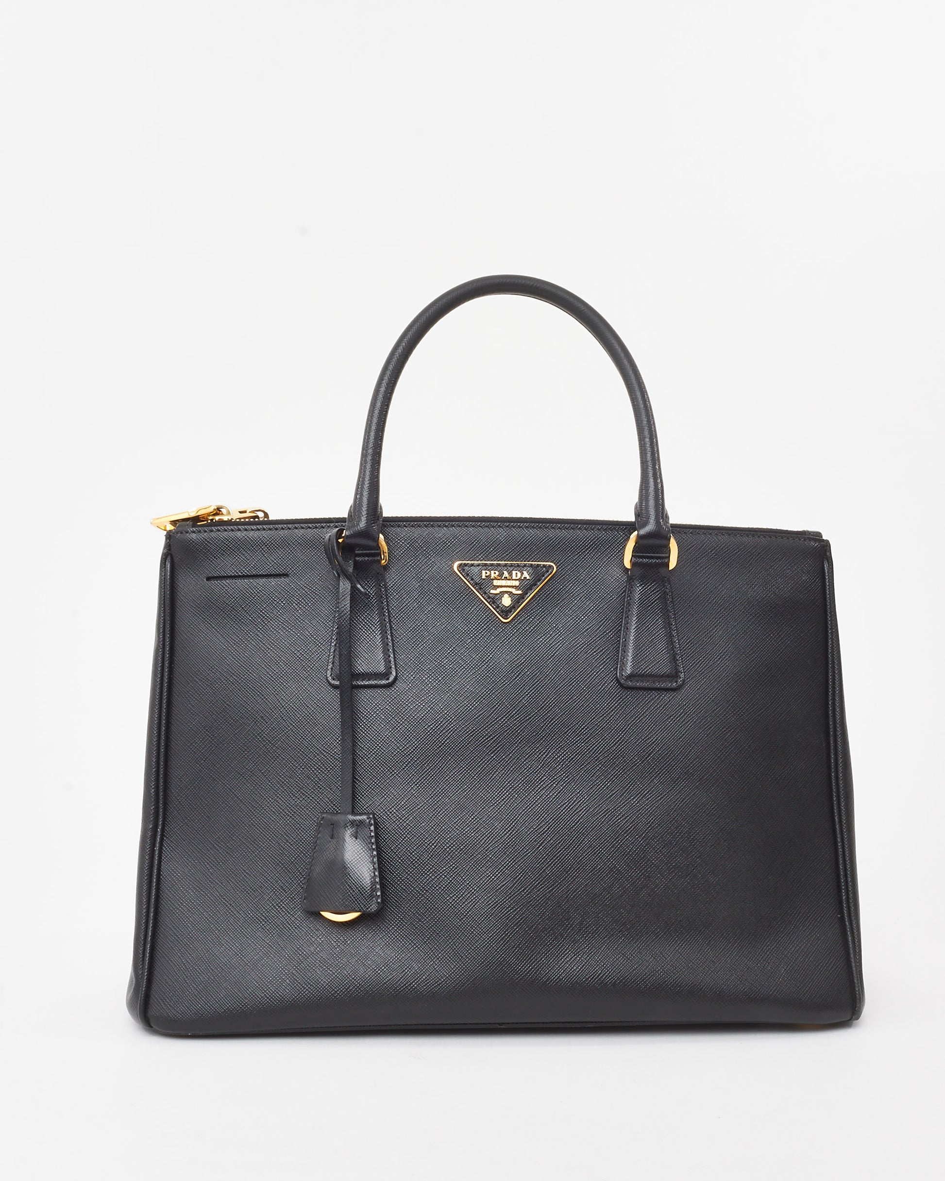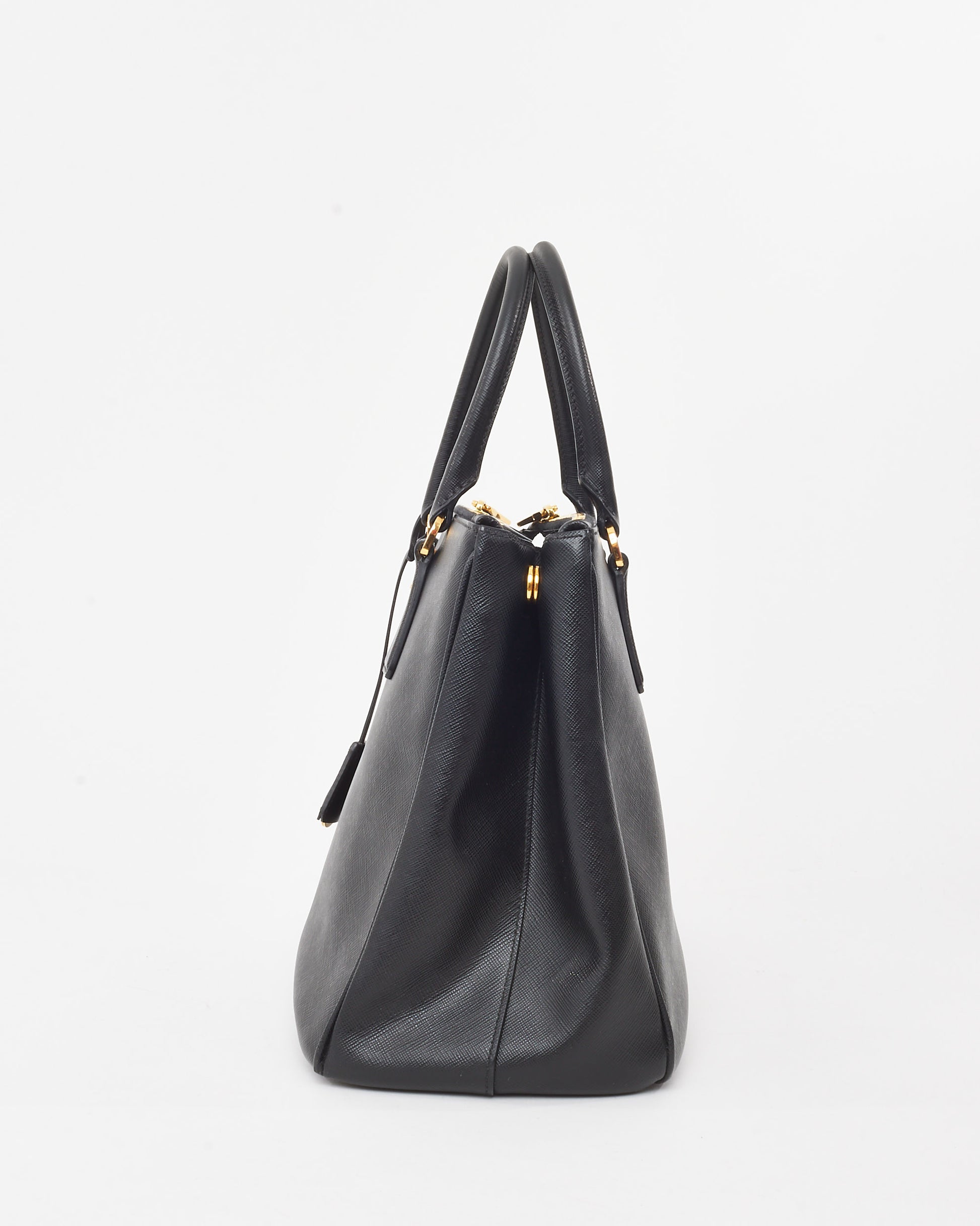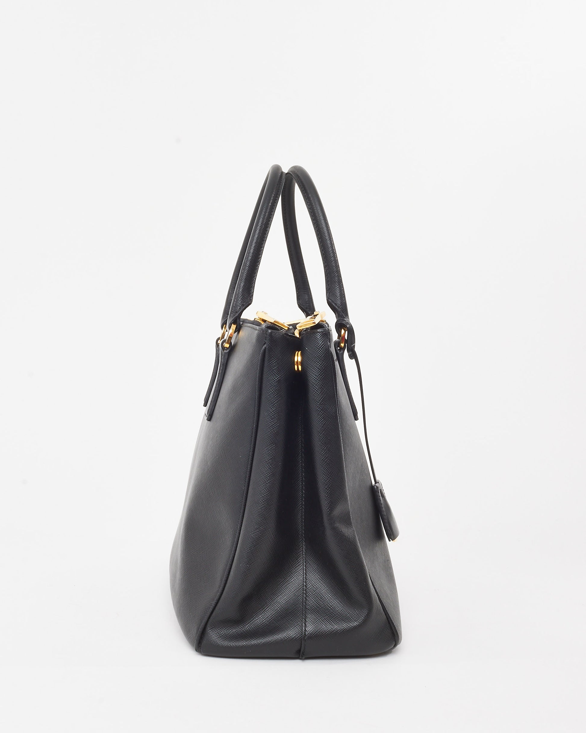 Black Saffiano Lux Leather Double Zip Medium Galleria Tote