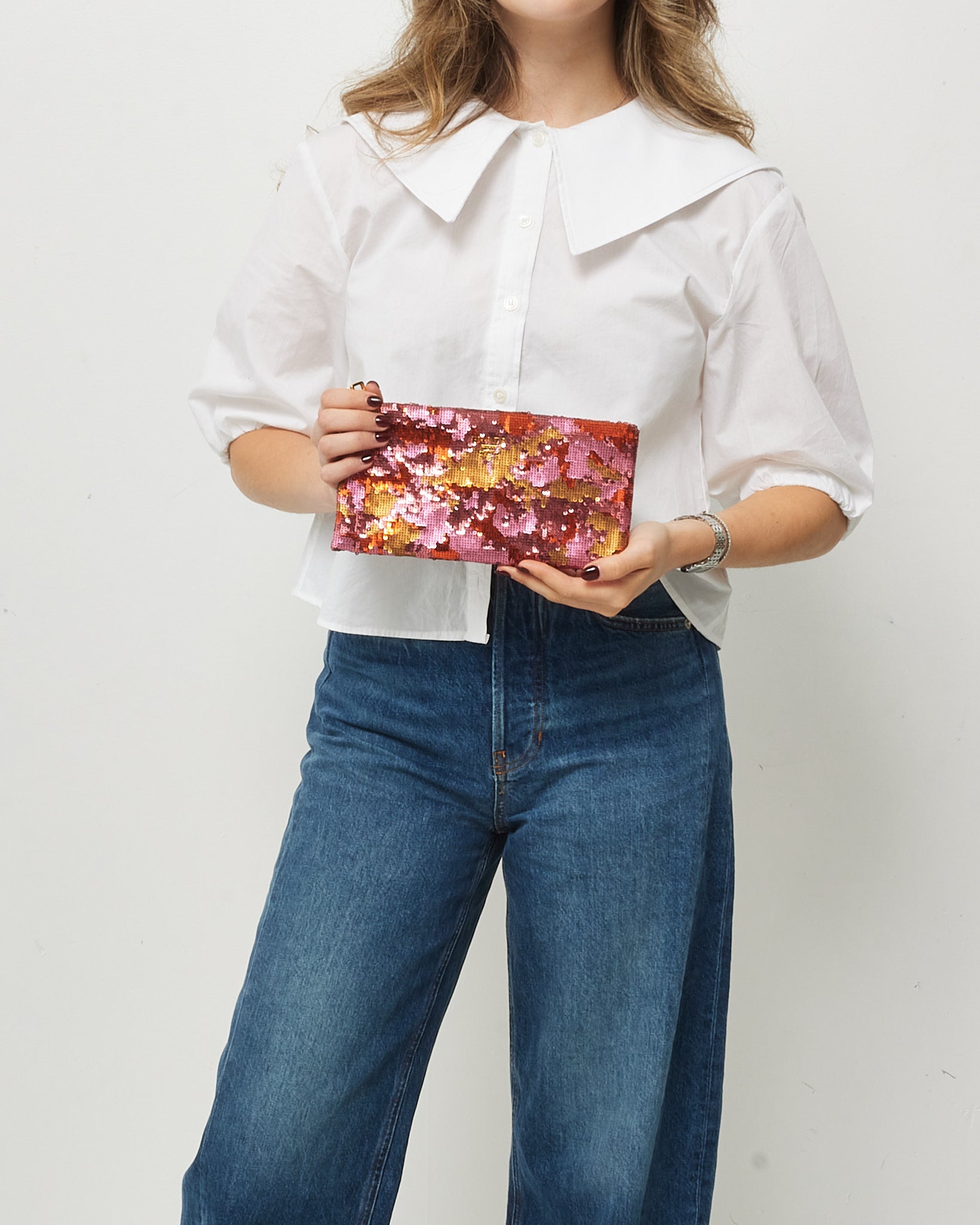Metallic Pink/Orange/Multi Geranio Paillettes Small Zip Pouch Clutch Bag