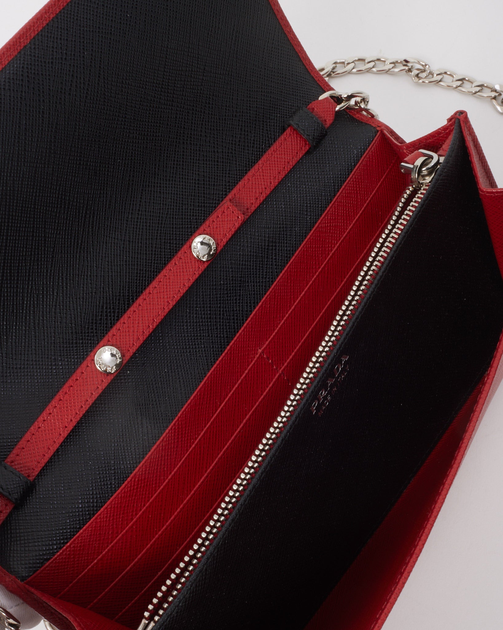 Red Saffiano Leather Bi-Color WOC Wallet on Chain Crossbody Bag