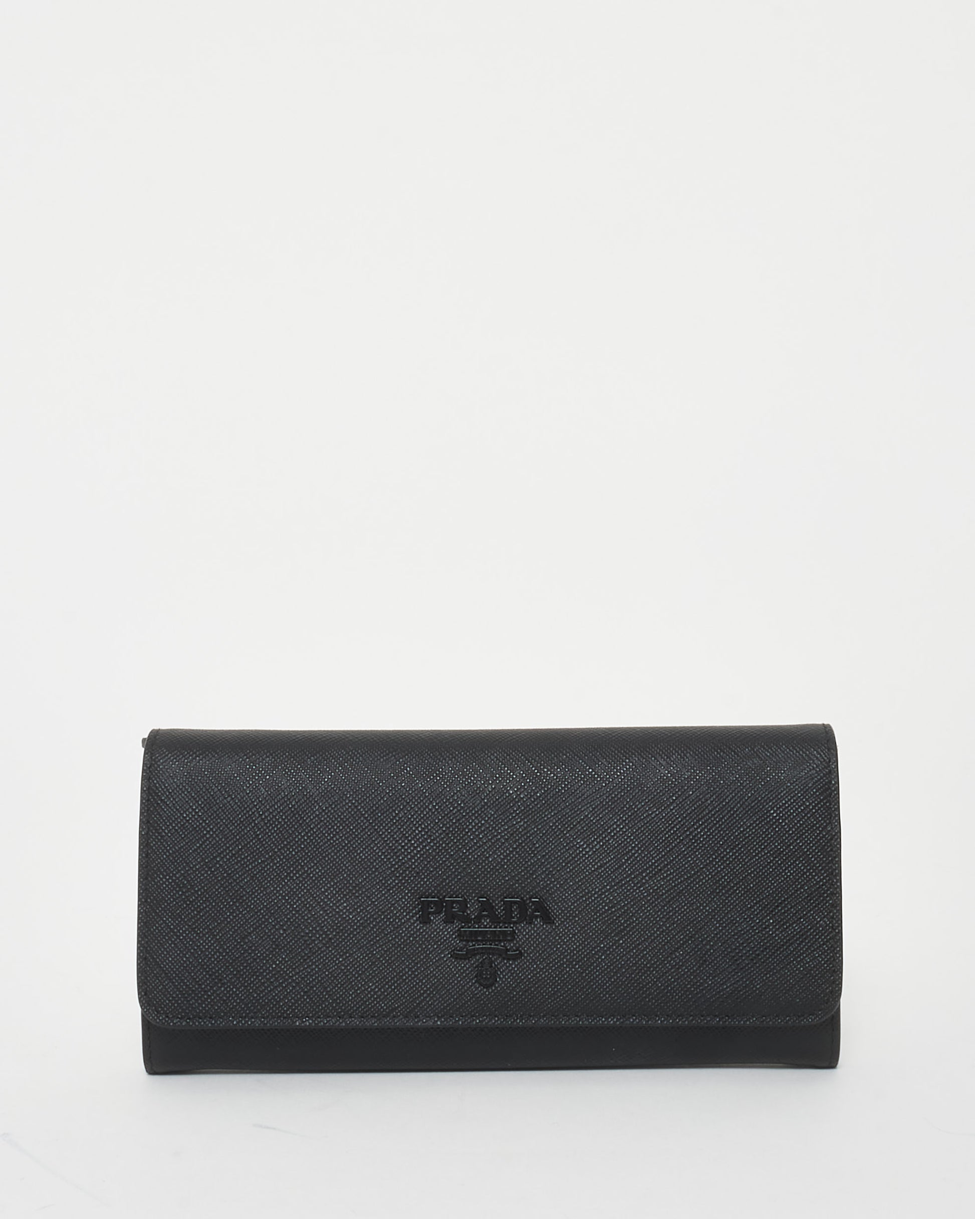 Explore Prada's exquisite collection of acces, featuring this certified pre-owned So Black Saffiano Leather GHW Long Flap Wallet. Embodying timeless elegance and modern sustainability, each piece, including favorites like this, is authenticated by Retyche. Discover sustainable luxury — shop our current treasures or find inspiration for your next coveted find.