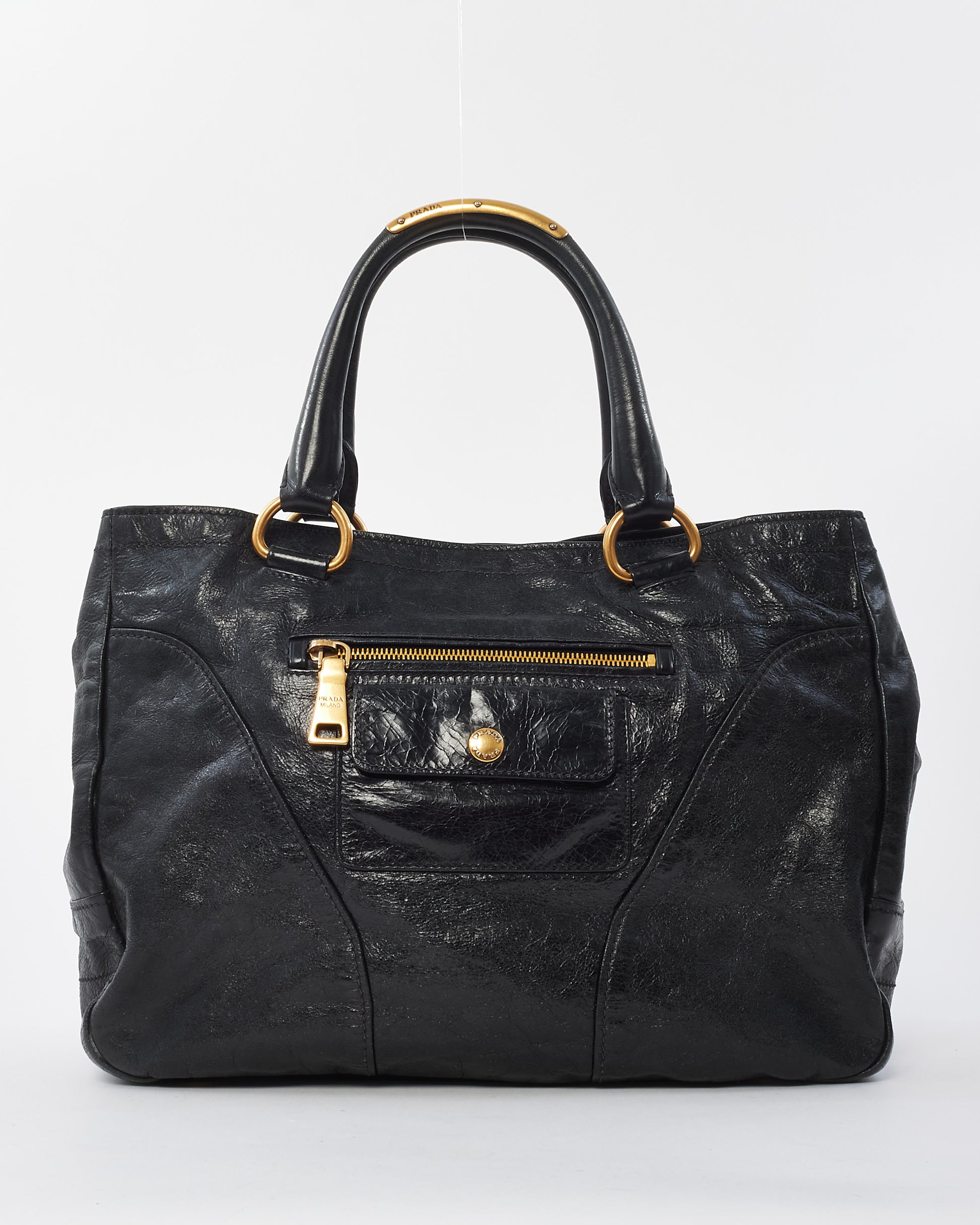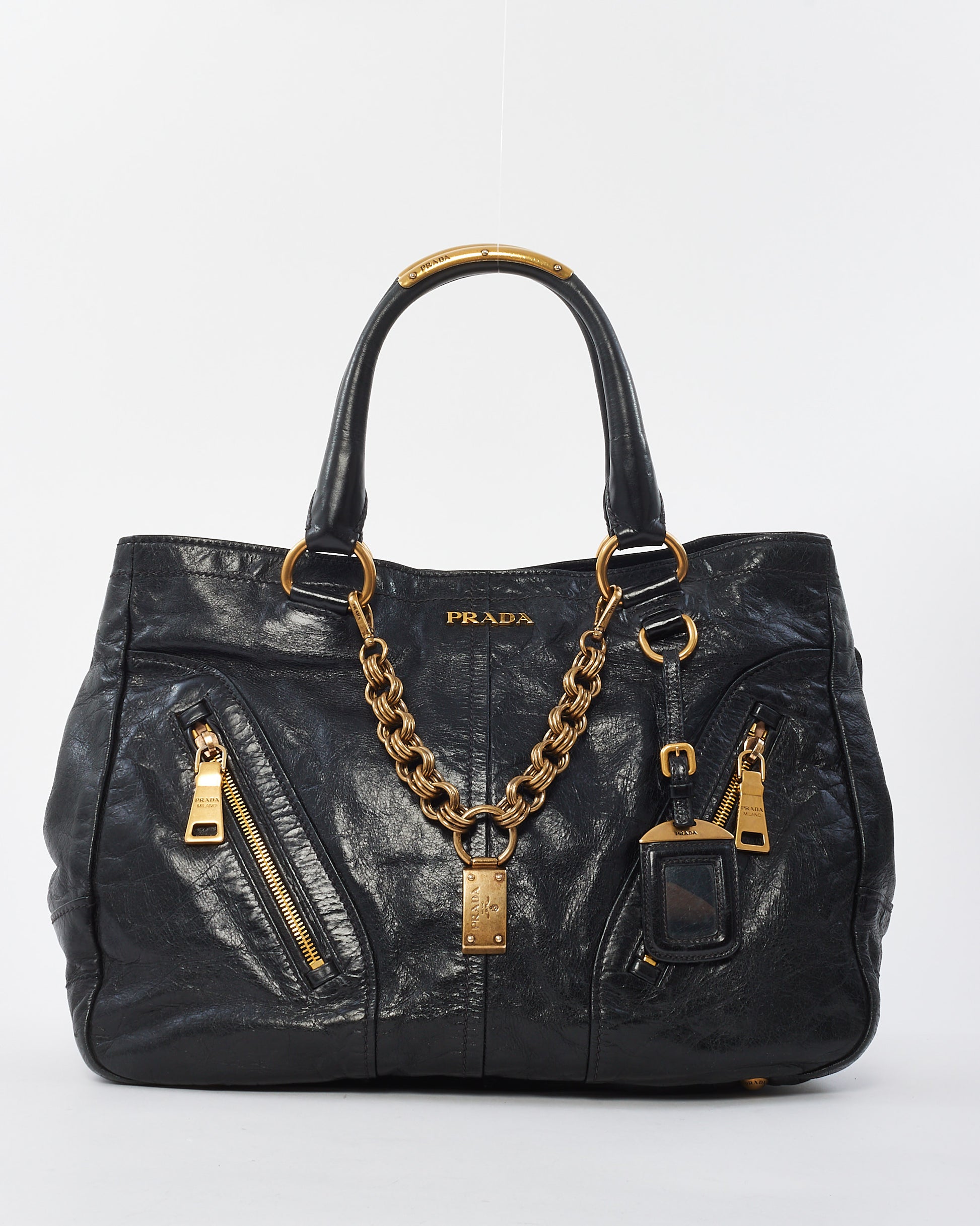 Explore Prada's exquisite collection of handbags, featuring this certified pre-owned Vintage Black Leather & Gold Zipper Detail Shoulder Bag. Embodying timeless elegance and modern sustainability, each piece, including favorites like this, is authenticated by Retyche. Discover sustainable luxury — shop our current treasures or find inspiration for your next coveted find.