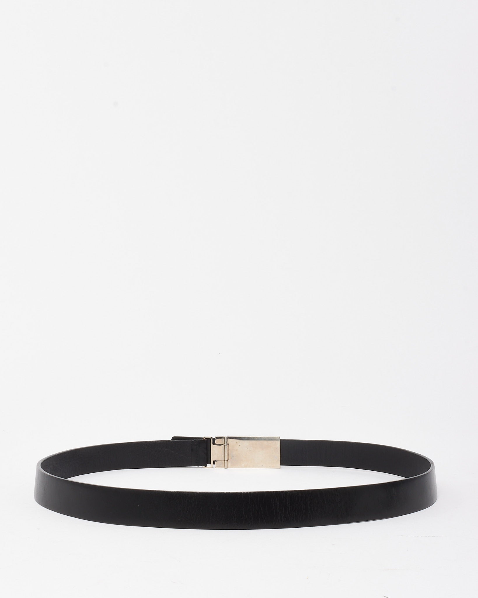Vintage Black Leather Silver Logo Buckle Slider Belt - 80