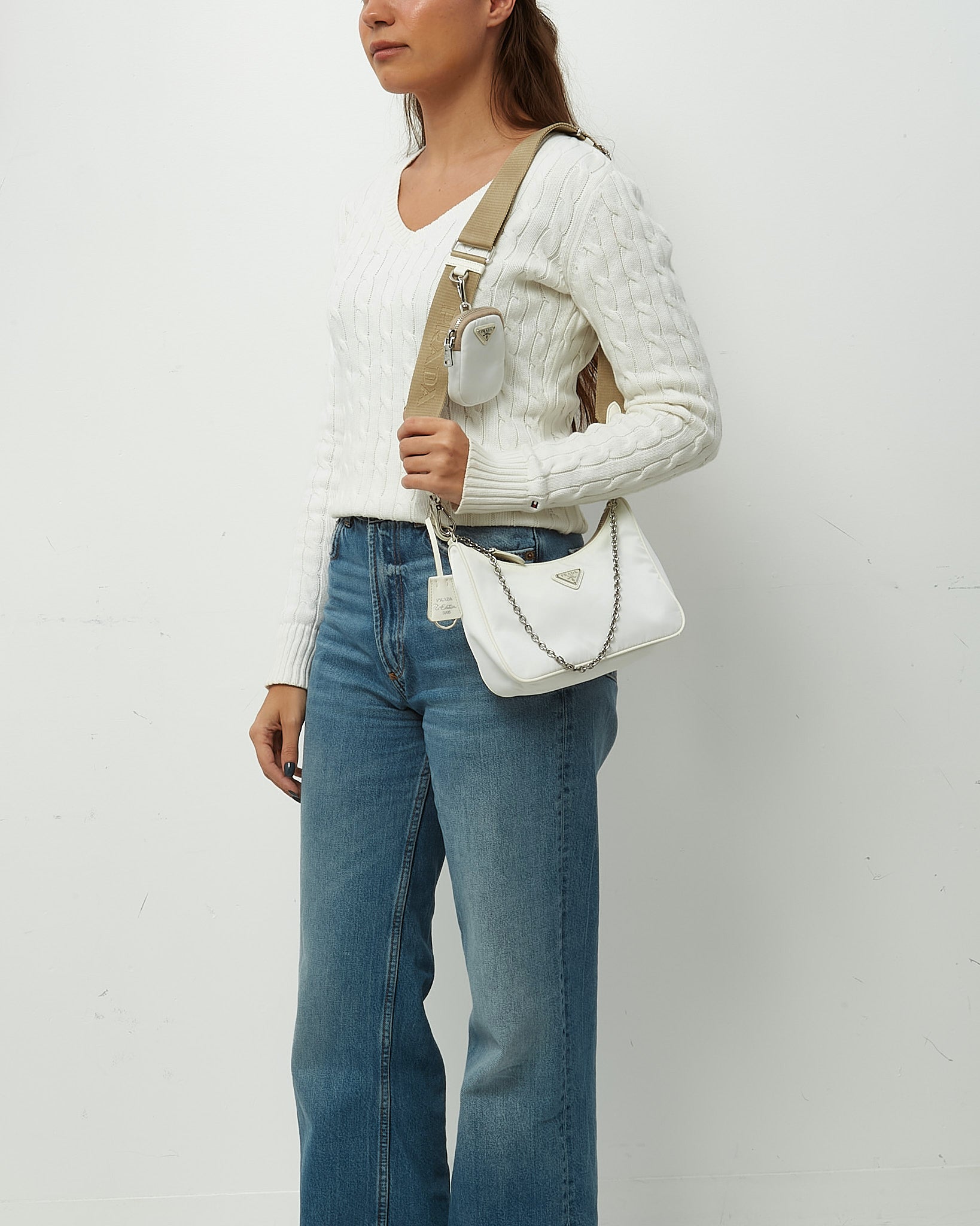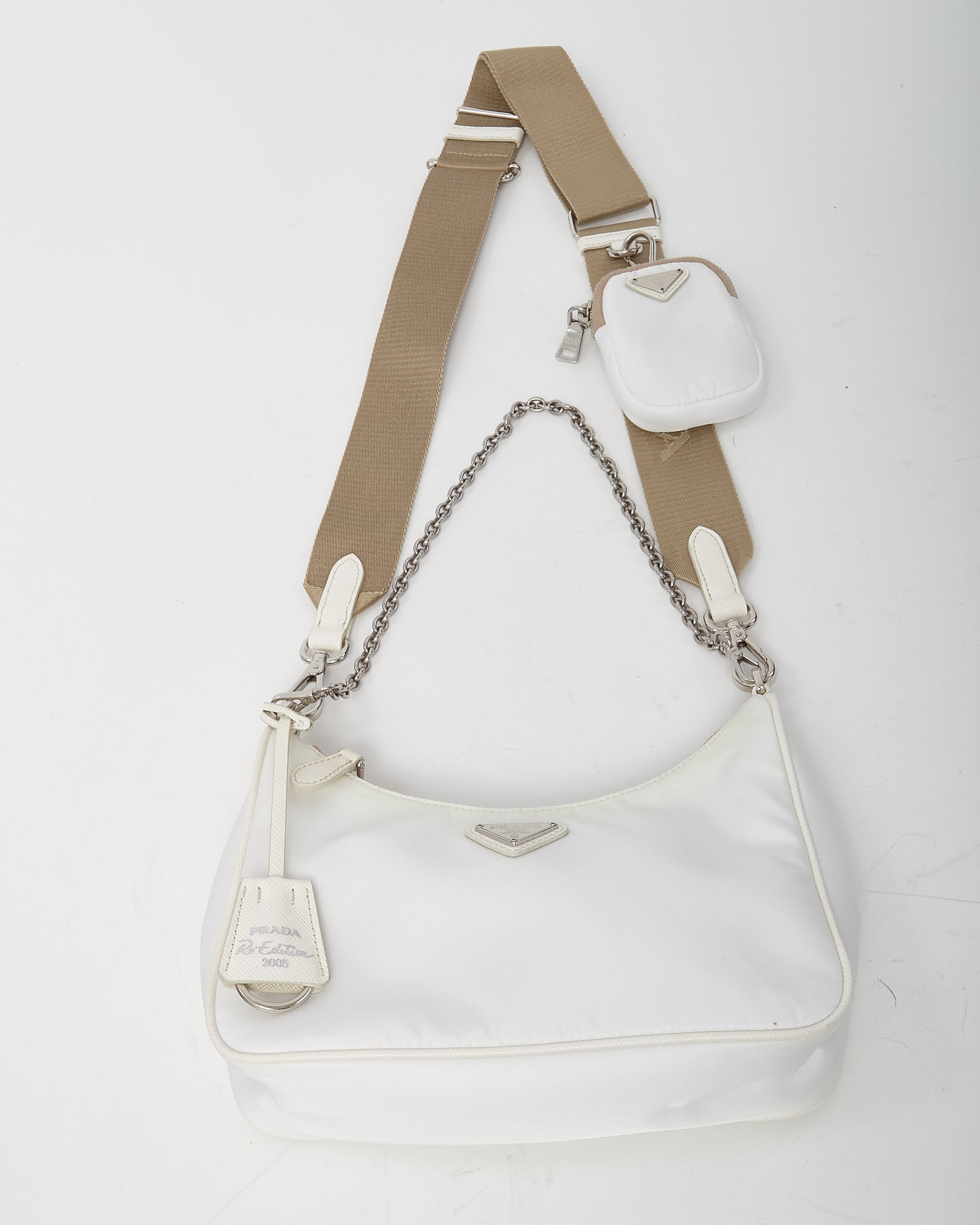 White and Beige Re-Nylon 2005 Re-Edition Crossbody Bag
