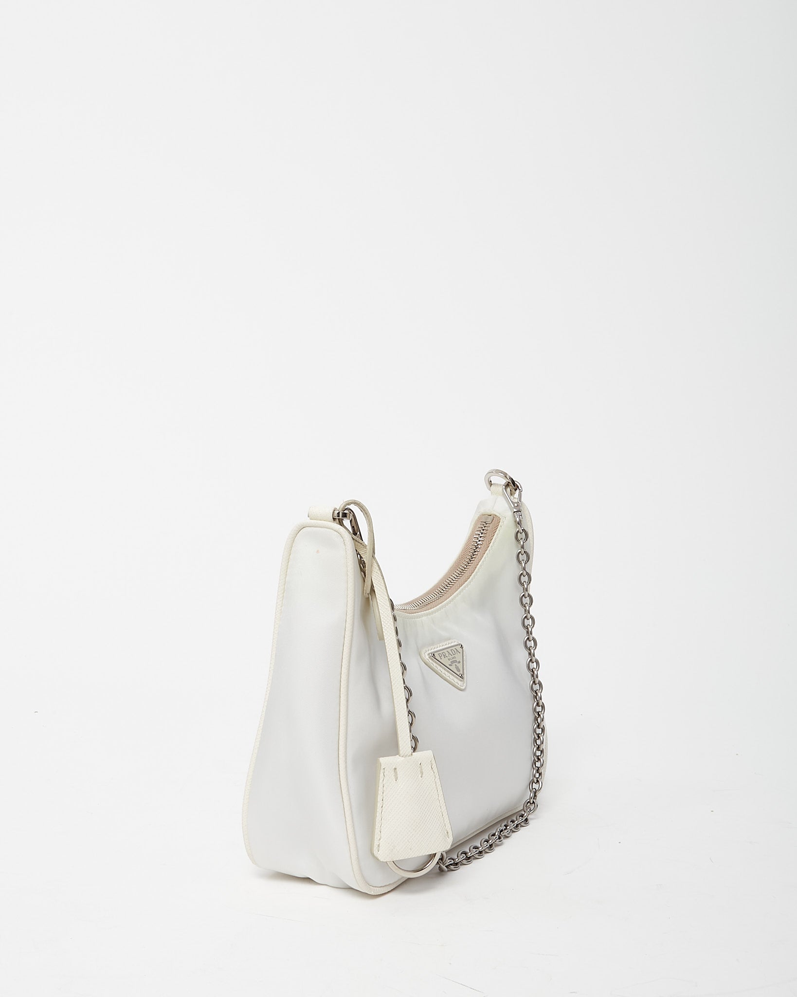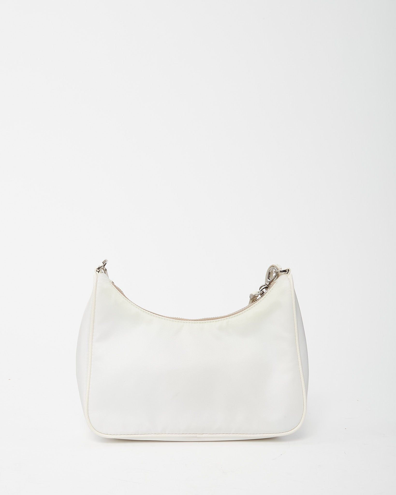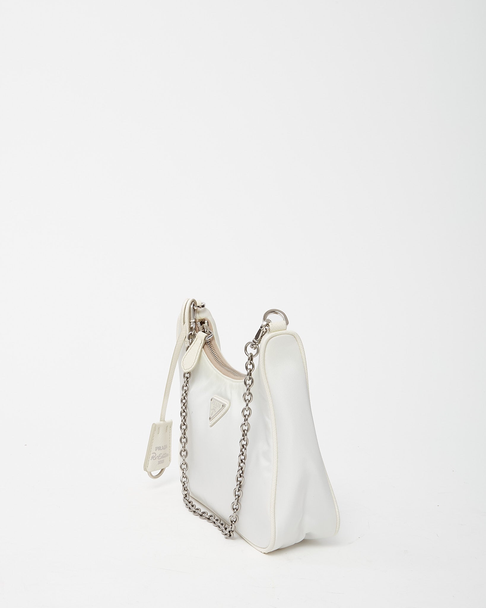 Bring iconic Y2K style into your wardrobe with this pre-loved authentic Prada White and Beige Re-Nylon 2005 Re-Edition Crossbody Bag, crafted in the house’s sustainable Re-Nylon fabric with smooth leather trim. The compact silhouette reflects the beloved Prada 2005 design, featuring the signature enamel triangle logo and versatile beige strap options for shoulder or crossbody wear. Designed with a zip-top closure and practical interior space for daily essentials, this Prada bag blends modern functionality with retro-inspired luxury. A coveted designer piece that delivers lightweight durability, timeless branding, and effortless everyday style.