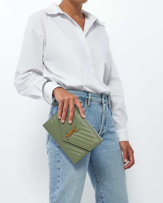 Pochette Cassandra en cuir grainé vert sauge Matlassé