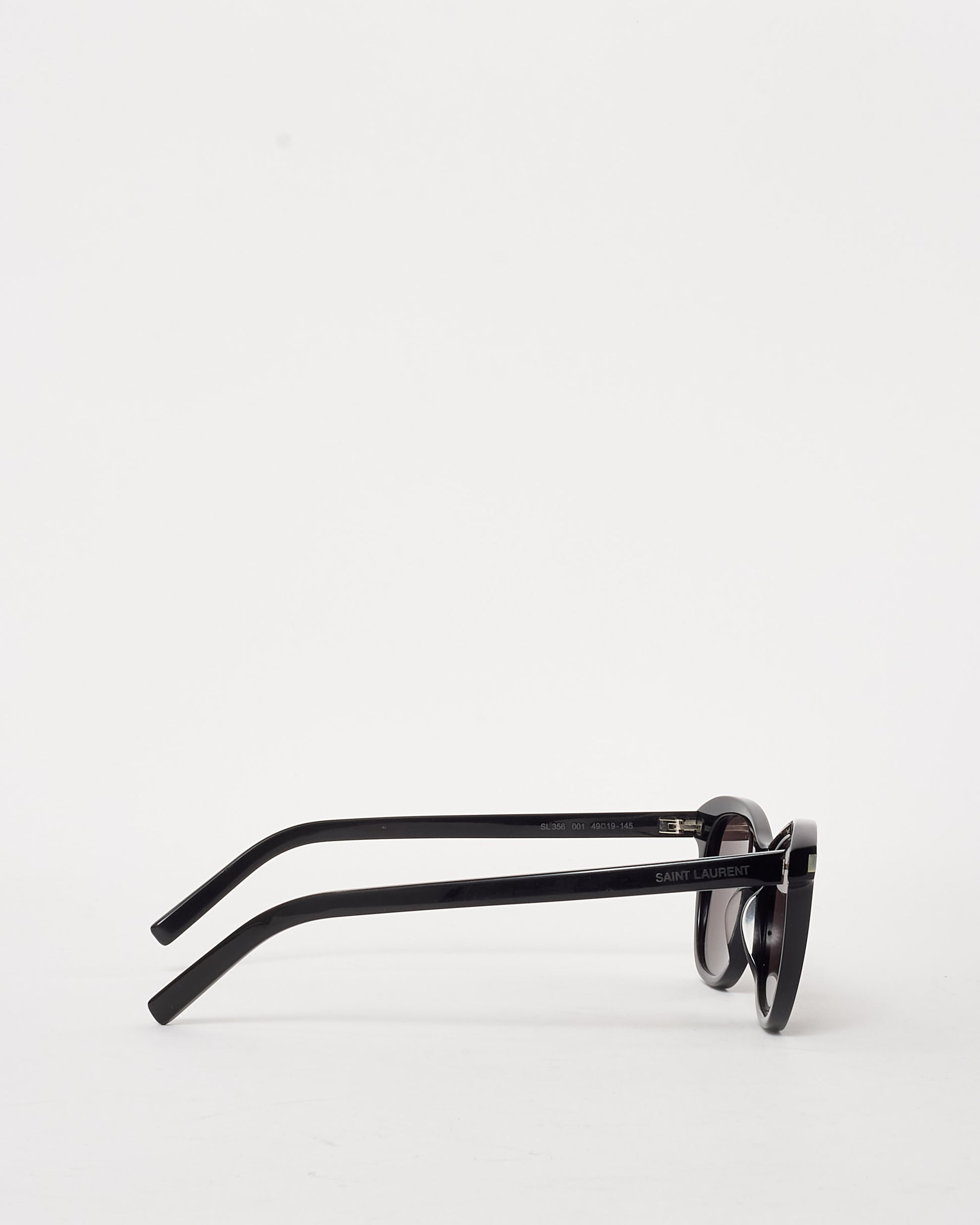 Elevate your eyewear collection with these authentic pre-owned Saint Laurent Black Acetate SL 356 Wayfarer Sunglasses—a modern take on an iconic silhouette. Expertly crafted in sleek black acetate, these sunglasses feature a timeless wayfarer design that complements every face shape, offering both versatility and style. The polished black frame exudes understated luxury, while the Saint Laurent logo discreetly engraved on the temples adds a touch of brand sophistication. Shop pre-owned authentic Saint Laurent sunglasses and accessories at Retyche.