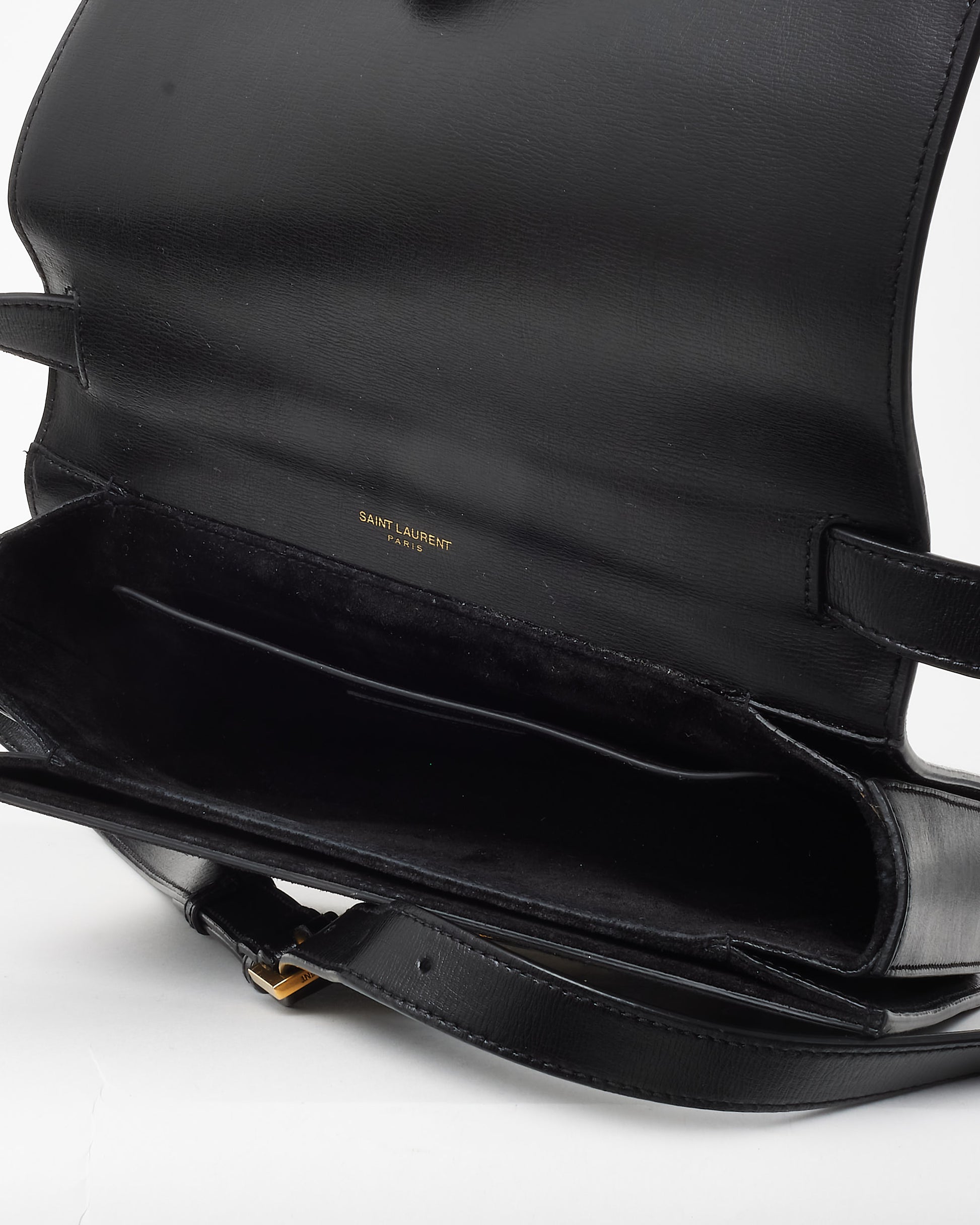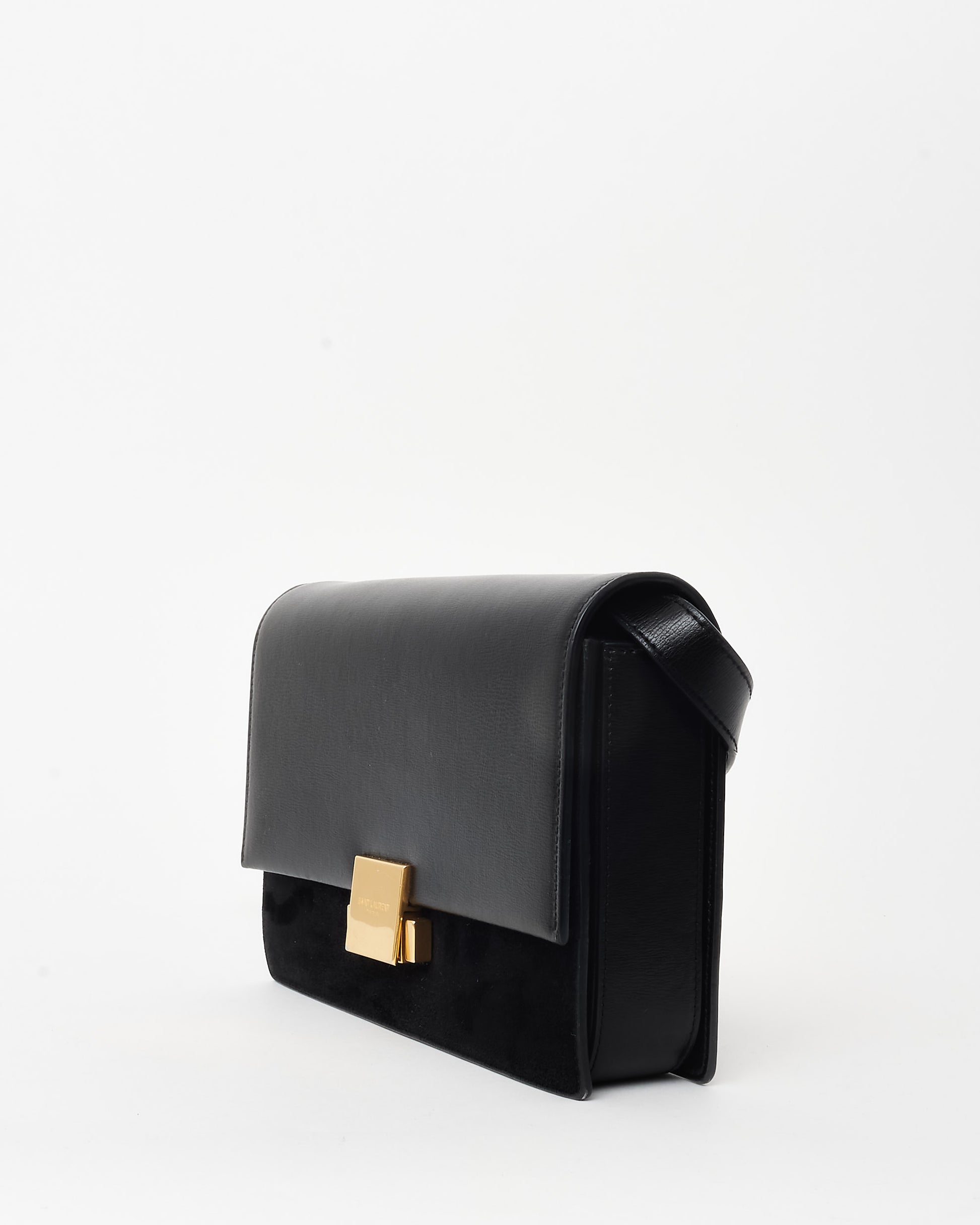 A refined balance of structure and elegance, the pre-owned authentic Saint Laurent Black Leather & Suede Medium Bellechasse Crossbody Bag is a timeless piece designed for effortless sophistication. Crafted from smooth black leather with contrasting suede panels, this bag offers a luxurious textural contrast that enhances its sleek, structured silhouette.