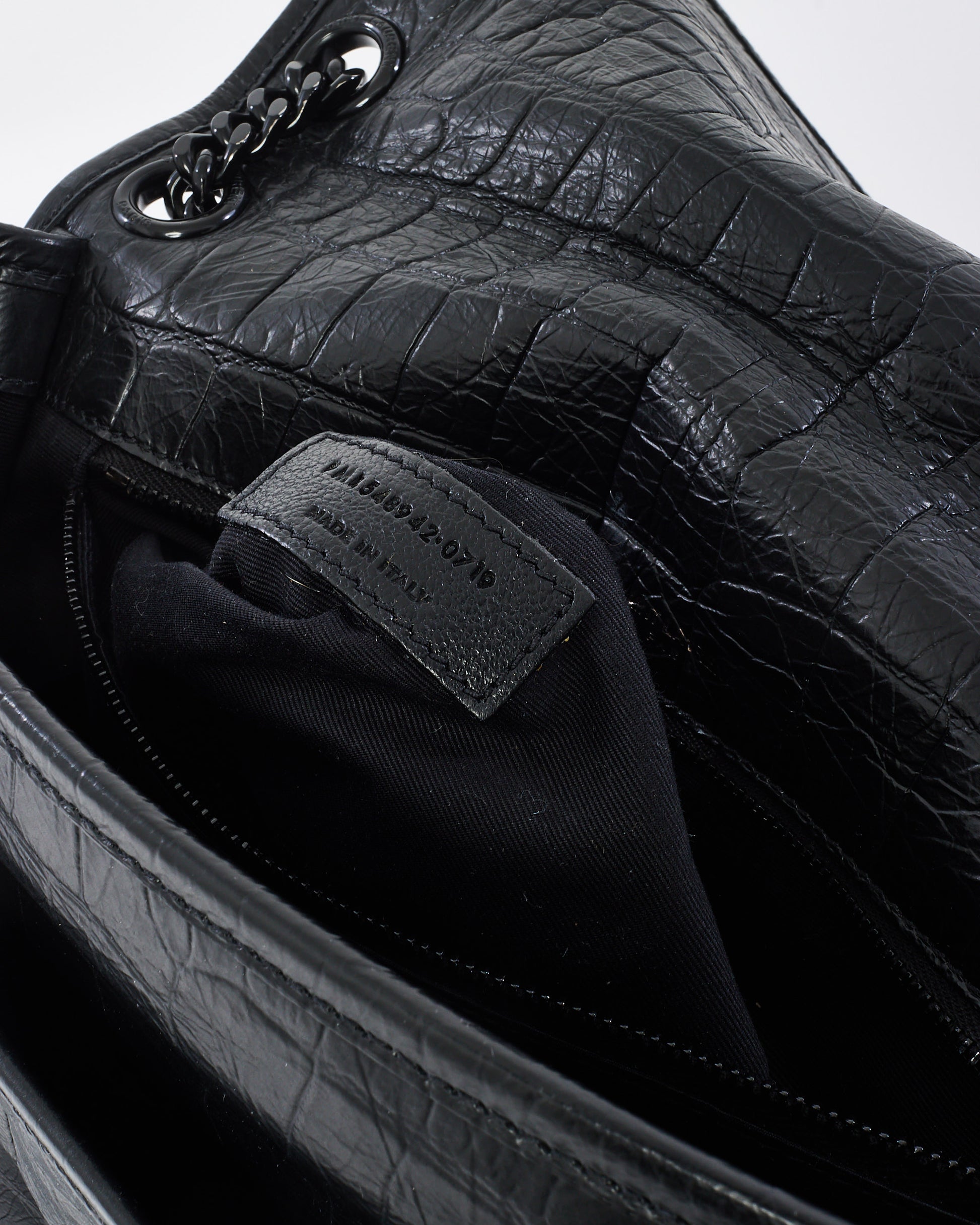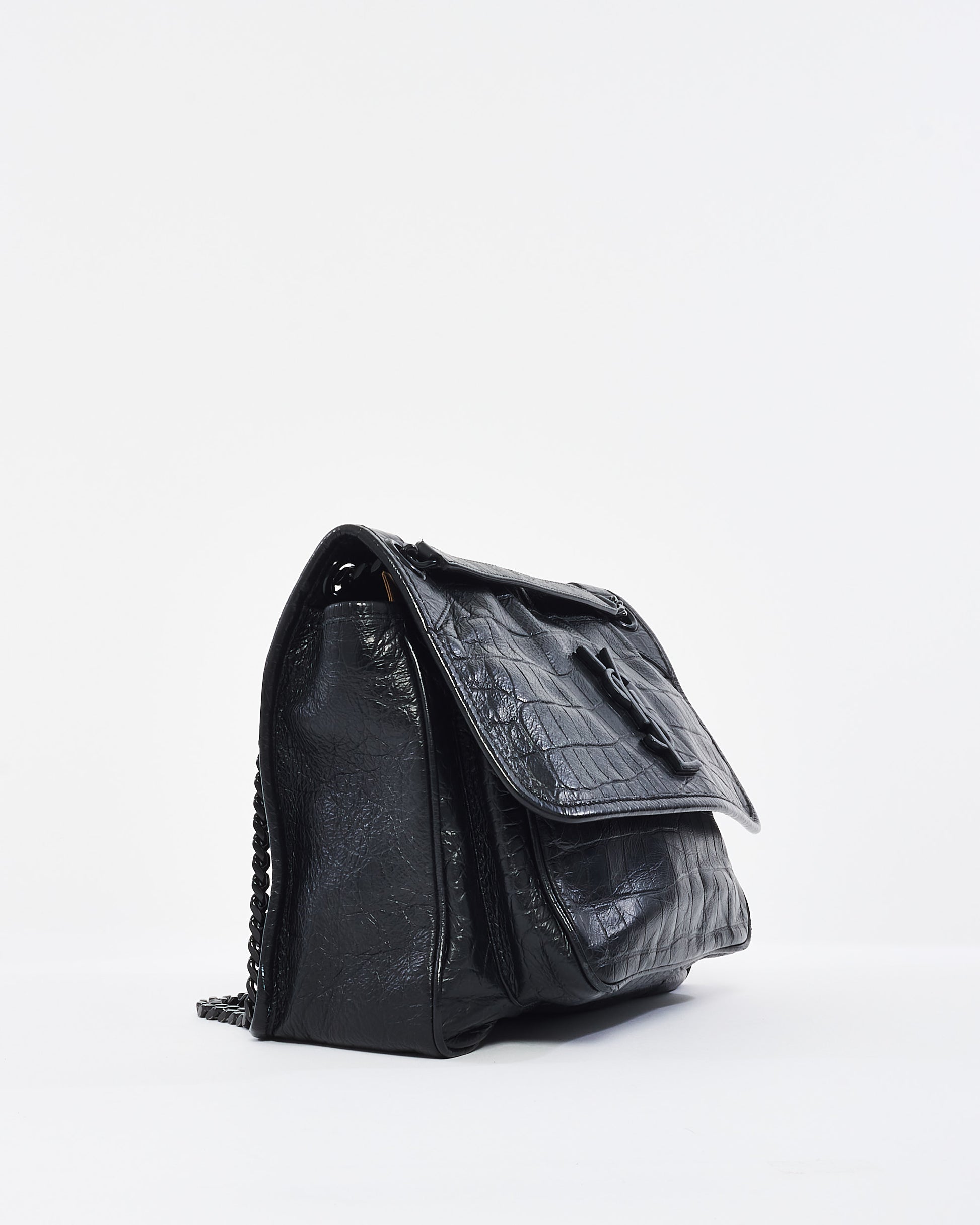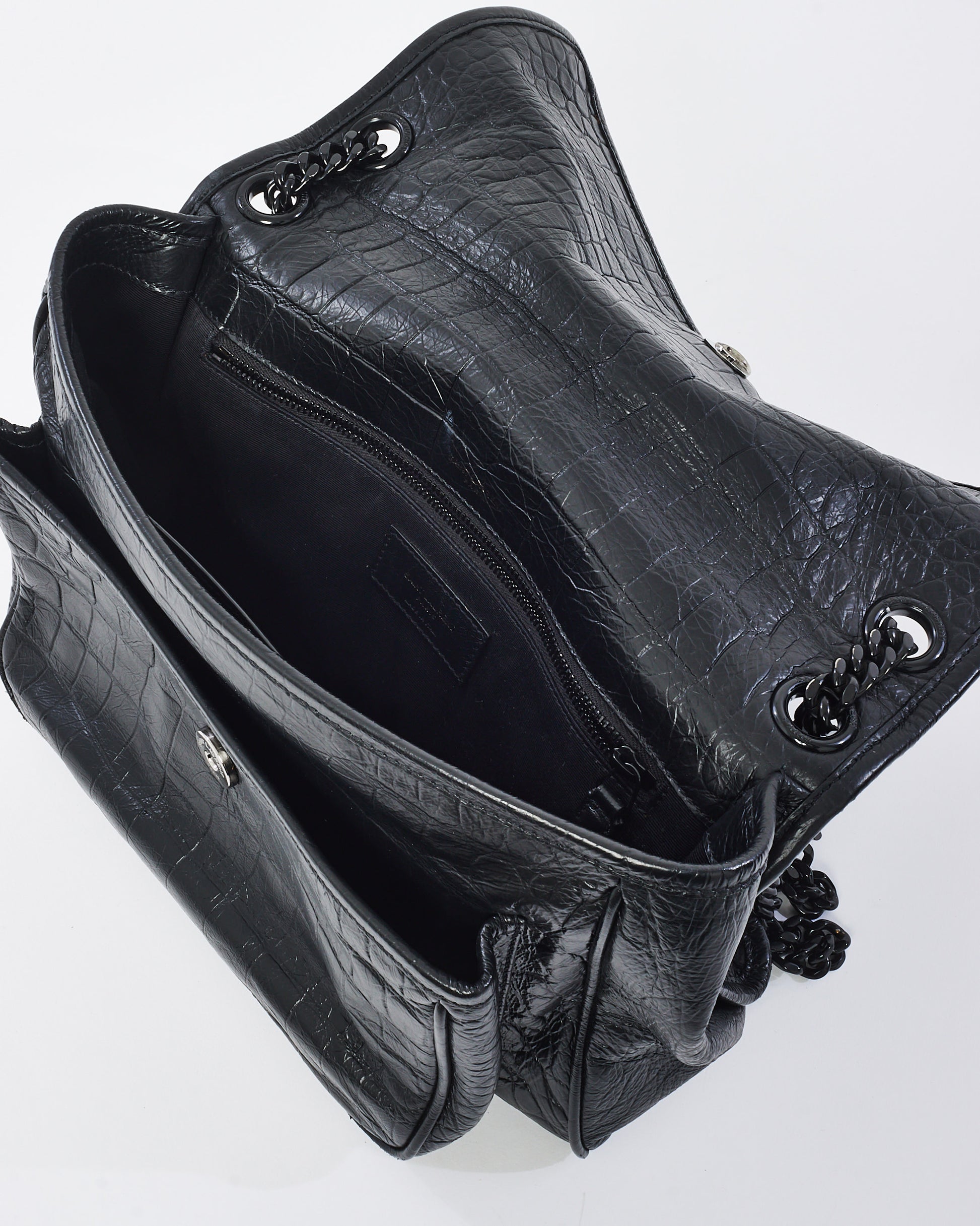 Sac à bandoulière Nikki moyen noir mat en relief croco
