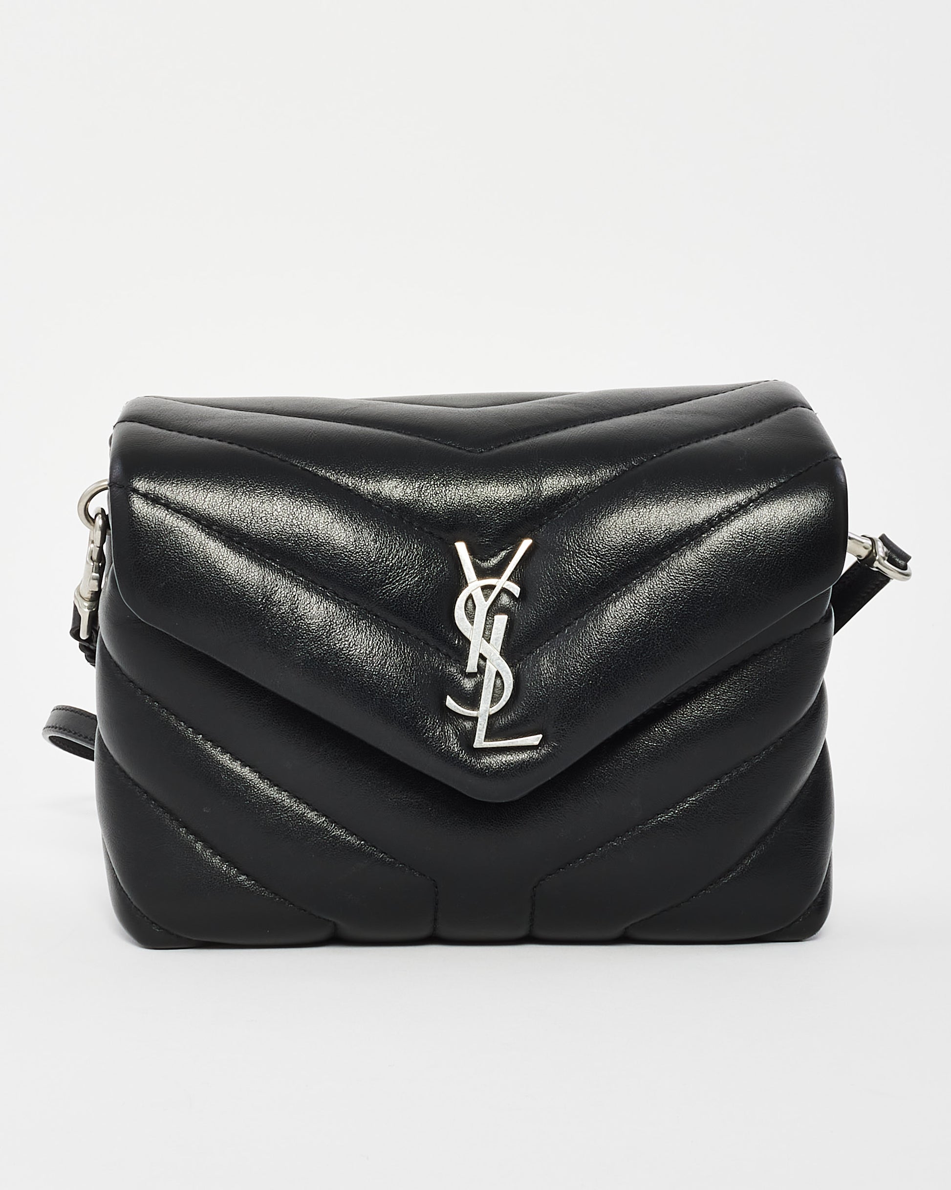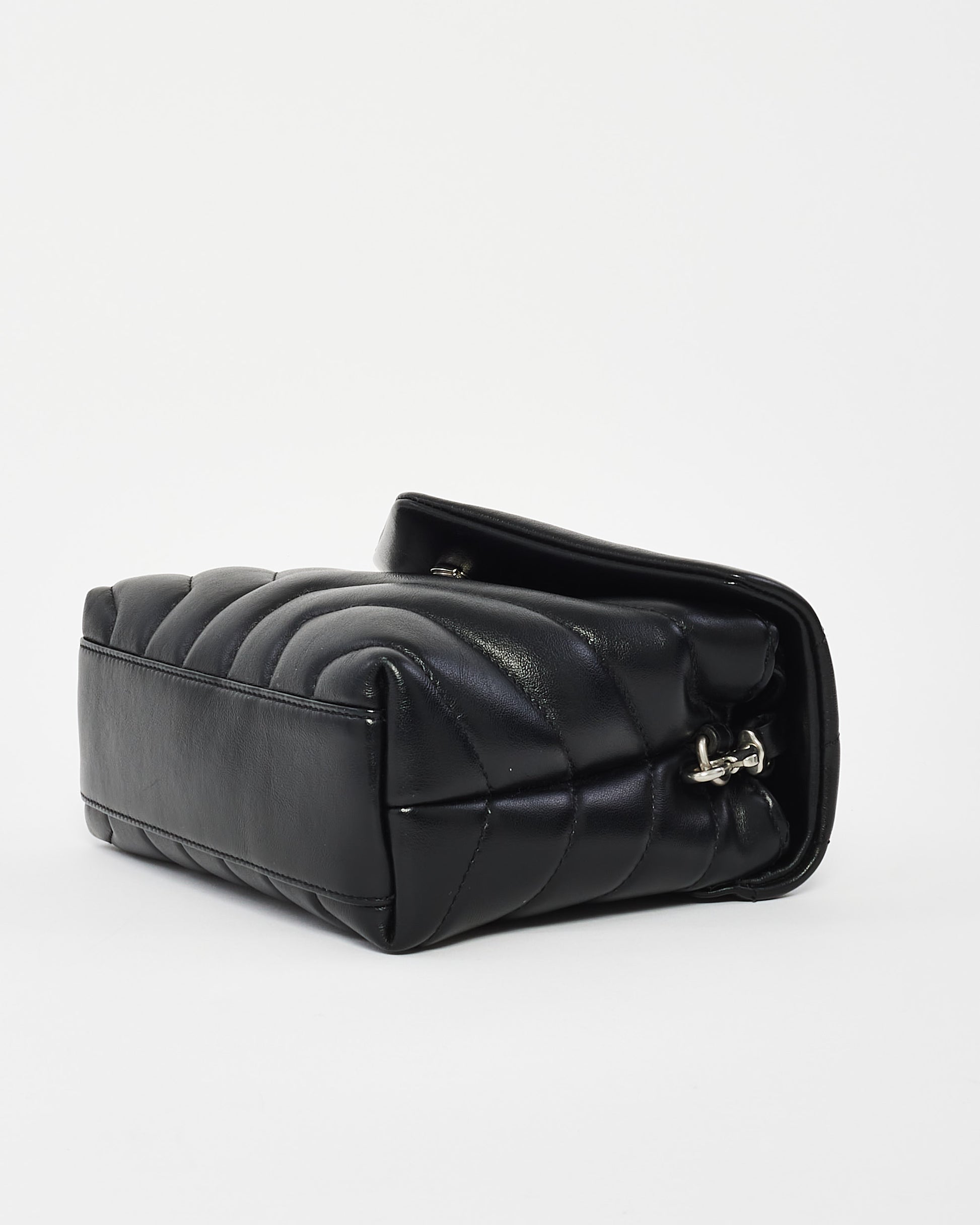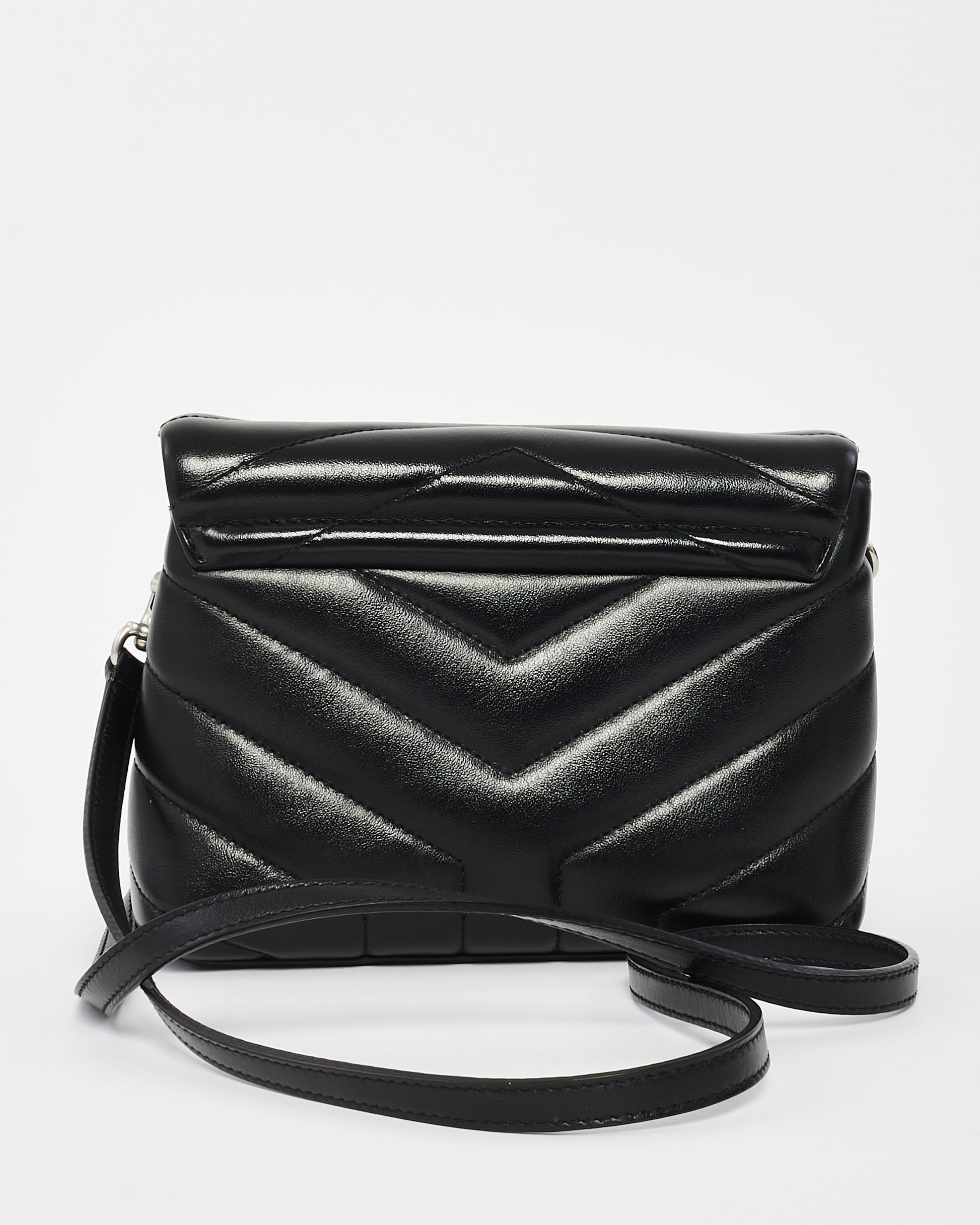 Sac à bandoulière Toy Loulou en cuir matelassé noir Y avec détails argentés