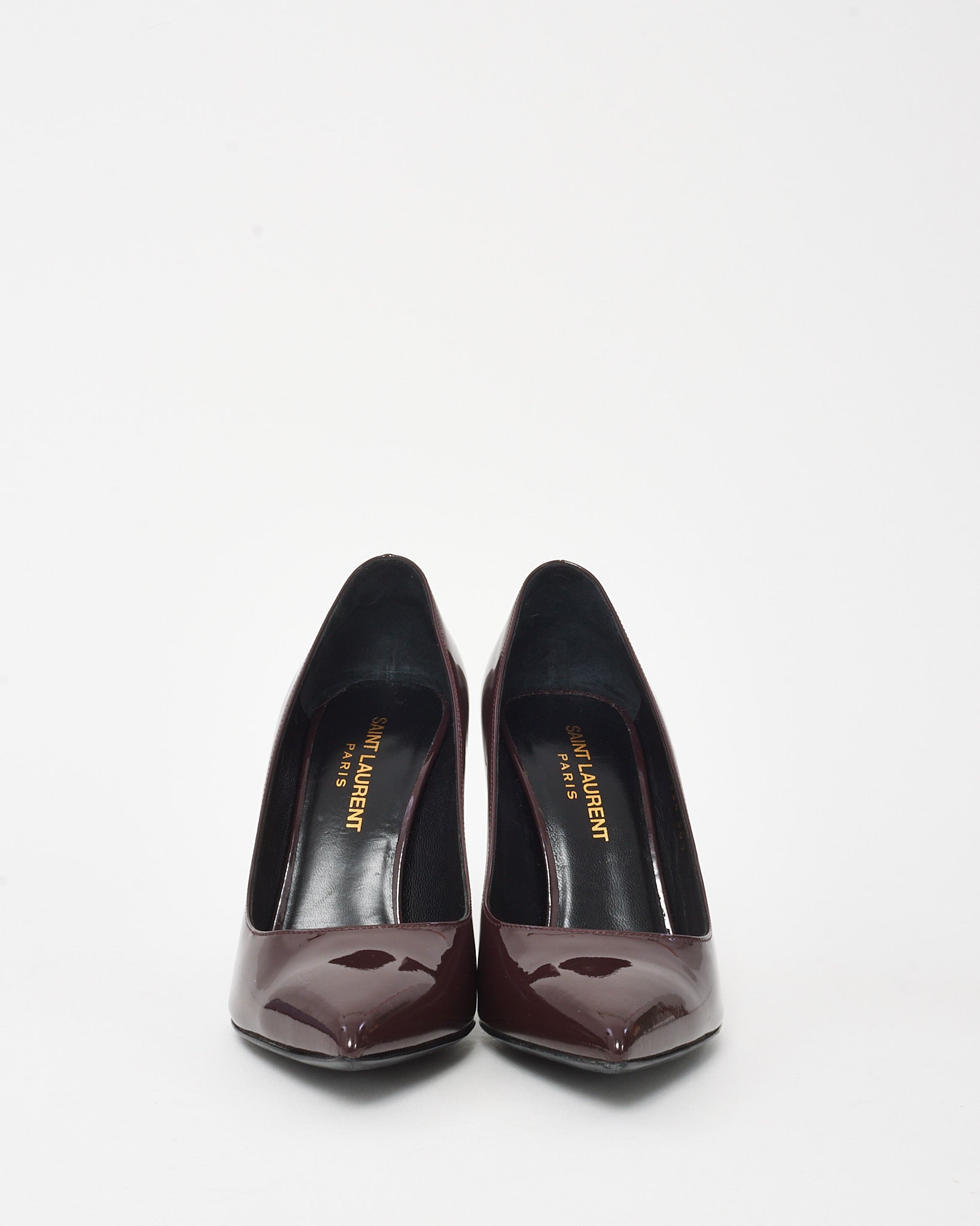 Burgundy Patent Leather Pointed Toe Pumps - 36.5