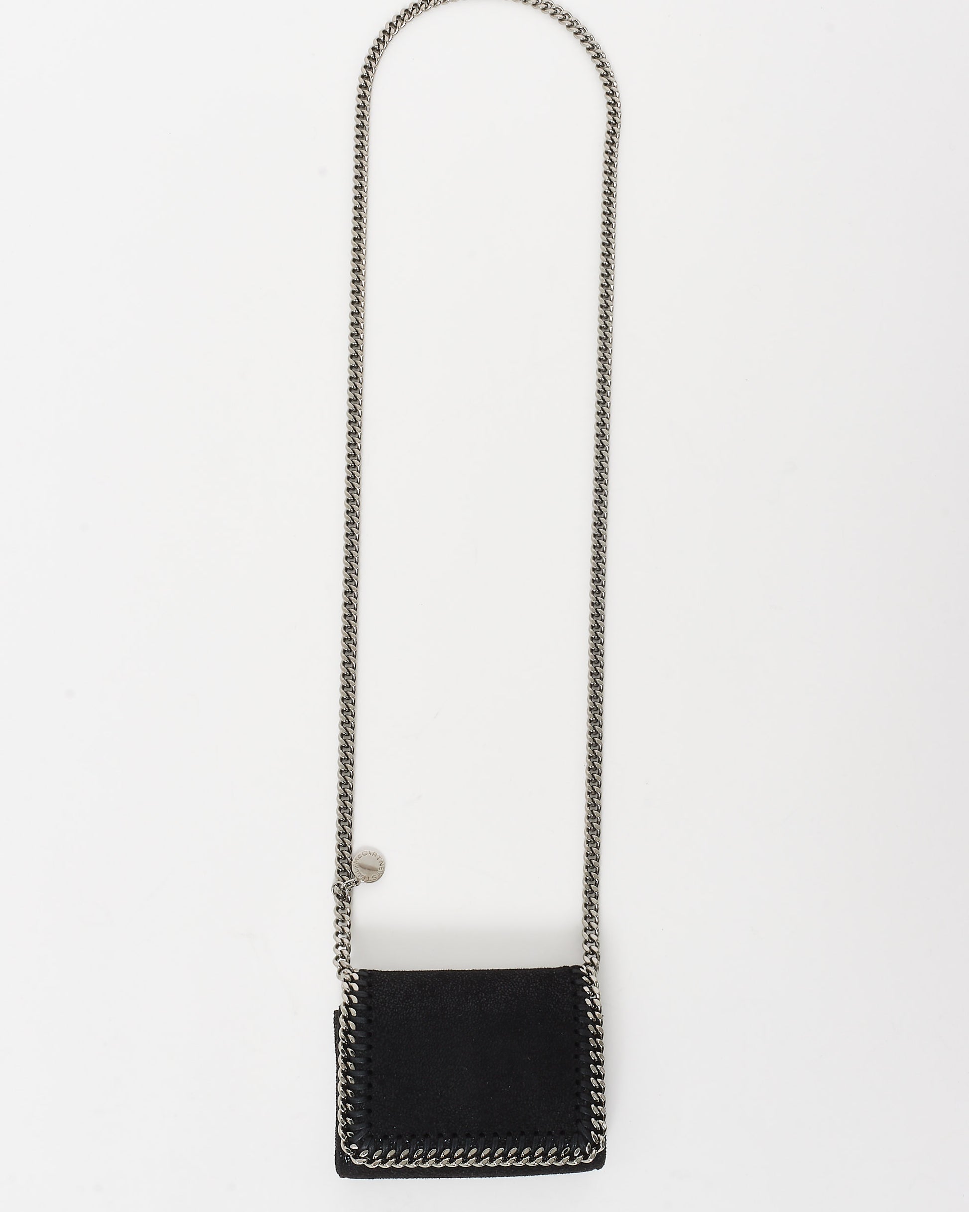 Effortlessly chic and practical, the authentic pre-owned Stella McCartney Black Falabella Card Holder on Chain is a versatile accessory that combines functionality with signature style. Crafted from Stella McCartney’s signature eco-friendly faux leather, this sleek card holder features the iconic Falabella chain trim in silver-tone hardware for a touch of edgy elegance.