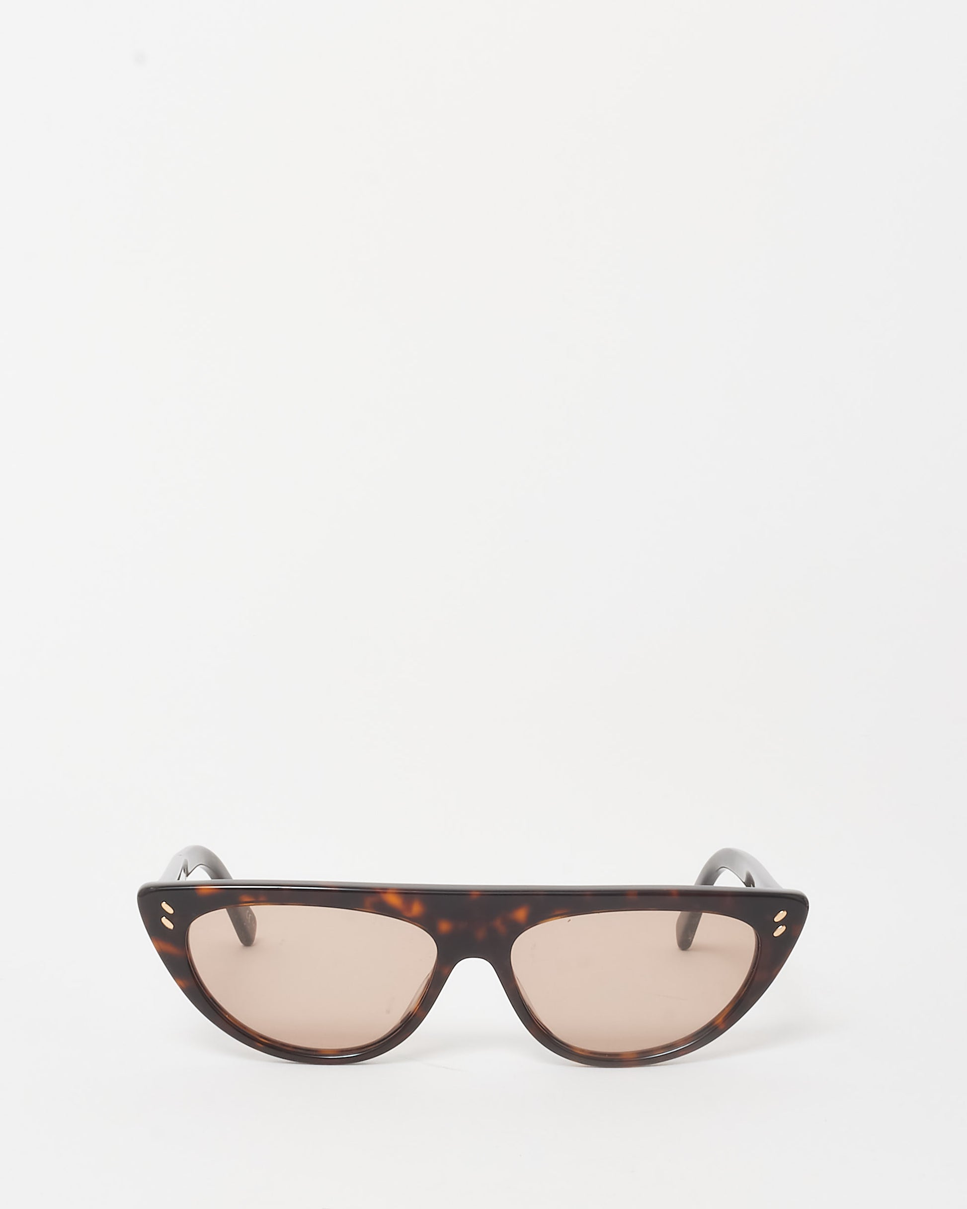 Turn heads with these authentic pre-owned Stella McCartney Brown Tortoise Cat Eye Sunglasses, a perfect blend of vintage allure and contemporary sophistication. Featuring a bold cat-eye silhouette, these sunglasses exude confidence and style, making them a must-have accessory for any fashion-forward wardrobe.