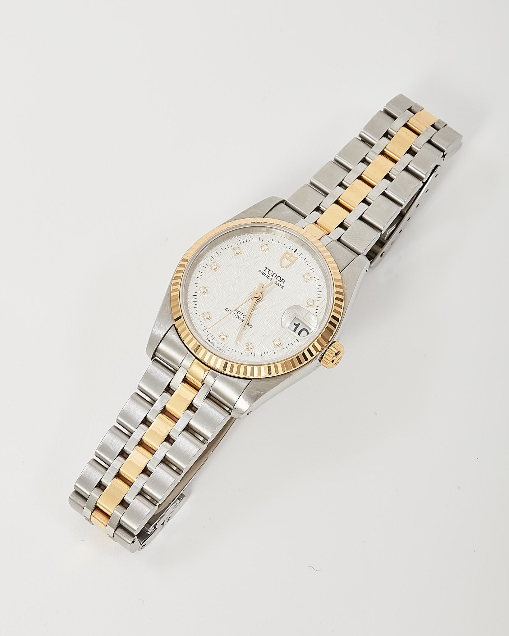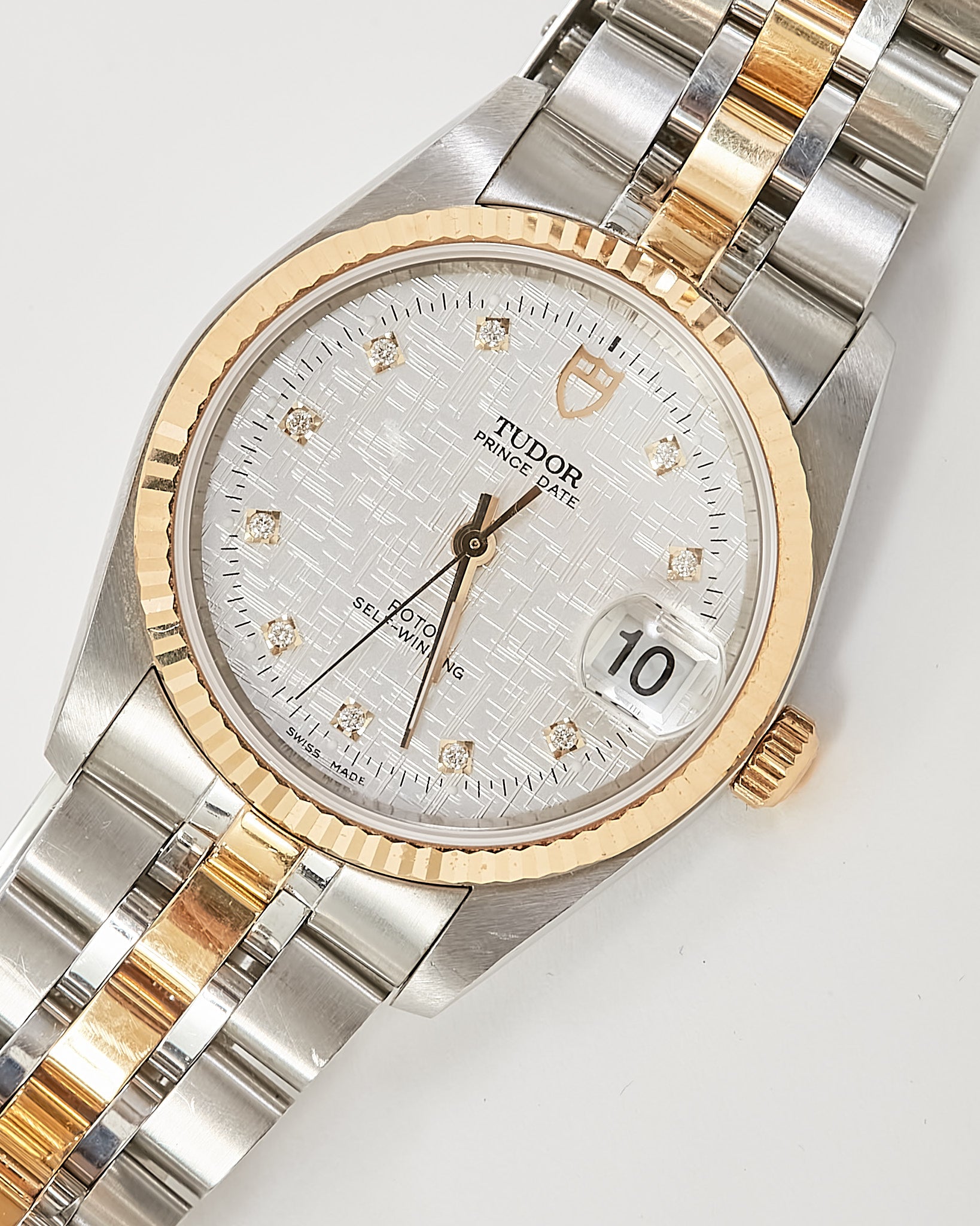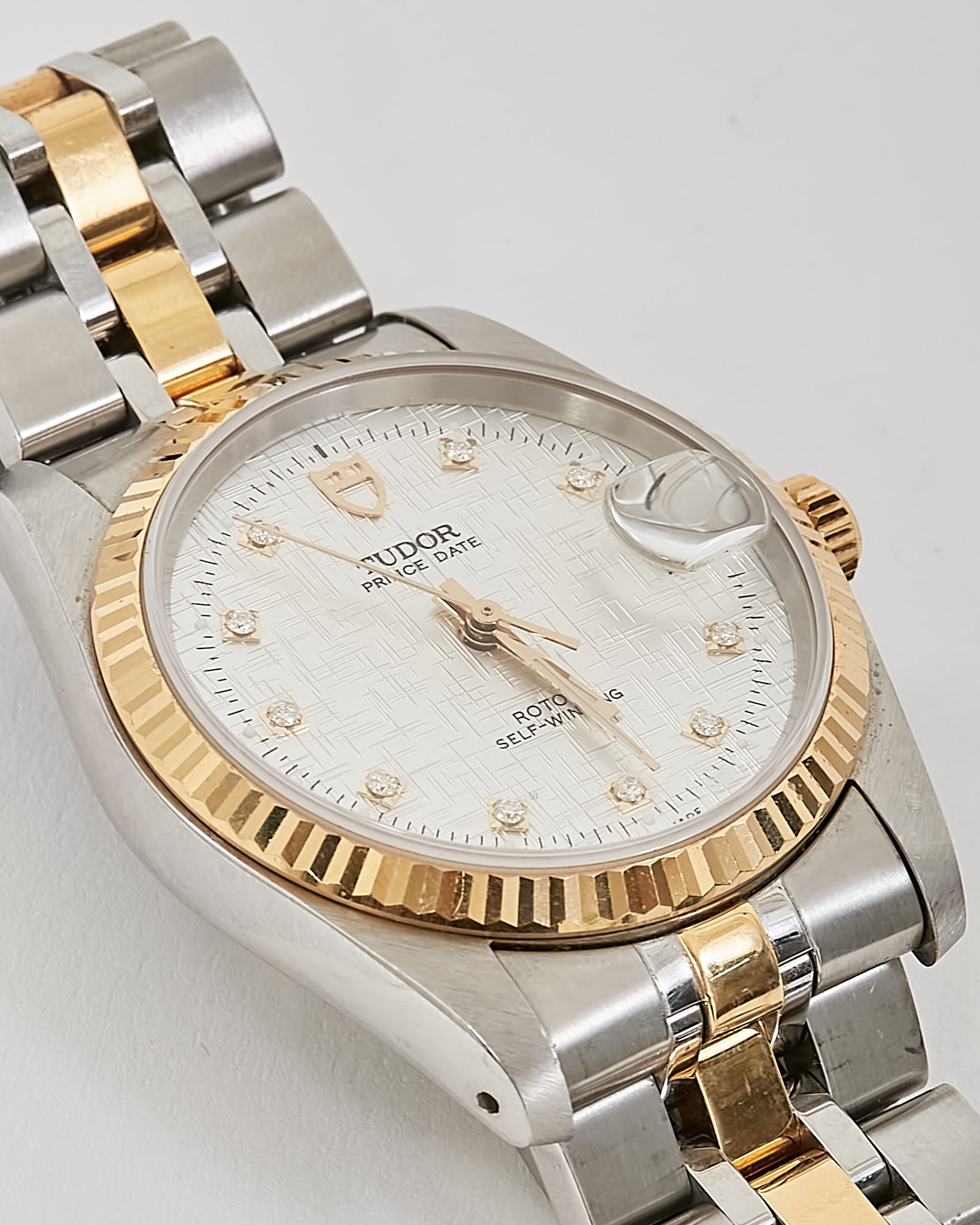 Refined and distinctive, this pre-loved authentic Tudor Silver Stainless Steel and Gold Black Bay One Diamond Dial 36mm Watch blends heritage design with modern sophistication. Featuring a sleek two-tone bracelet and a polished 36mm case, this timepiece is highlighted by a luxurious diamond-set dial that adds understated brilliance. The signature snowflake hands and classic bezel nod to Tudor’s dive-watch legacy, while the automatic movement ensures precision. Versatile and elegant, it’s a timeless accessory suited for both everyday wear and formal occasions.