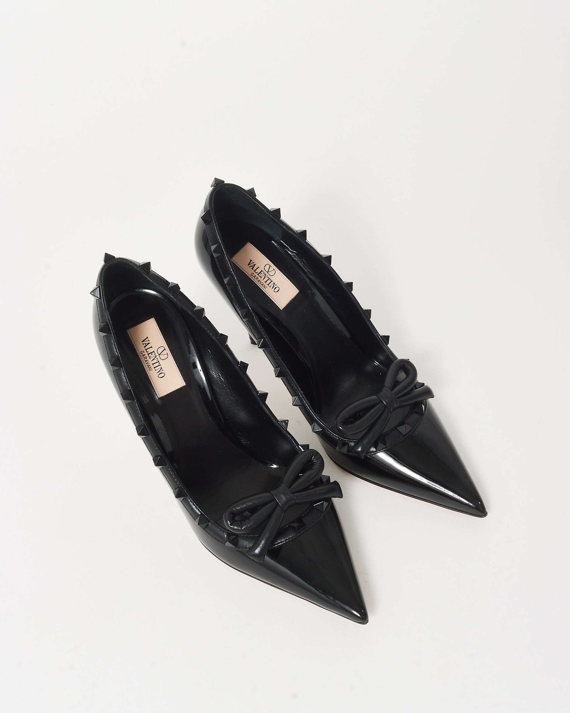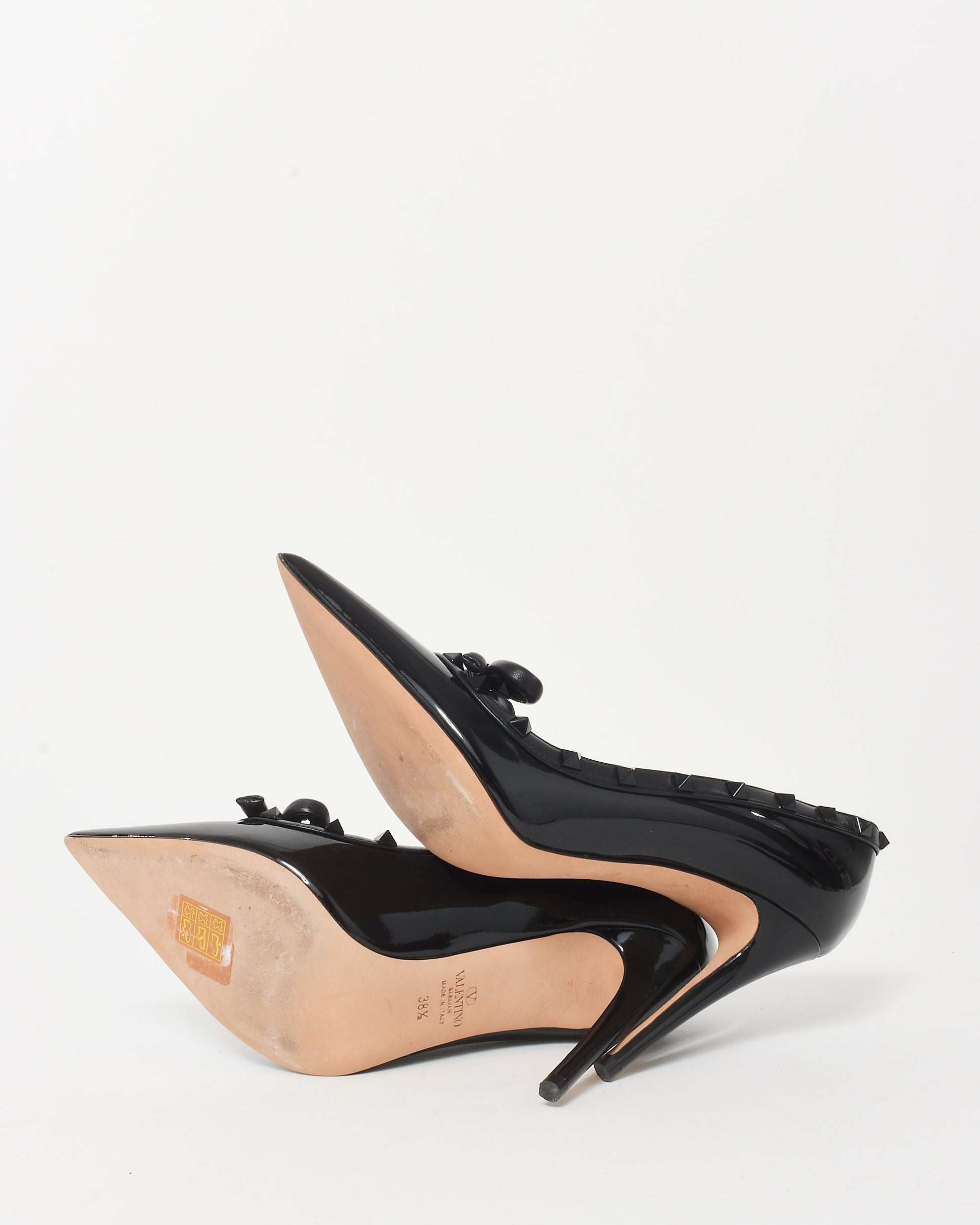 Black Patent Leather Rockstud Bow Pumps - 38.5