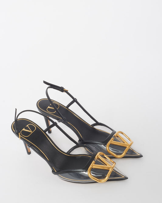 Black PVC and Leather VLOGO Slingback Pumps - 35