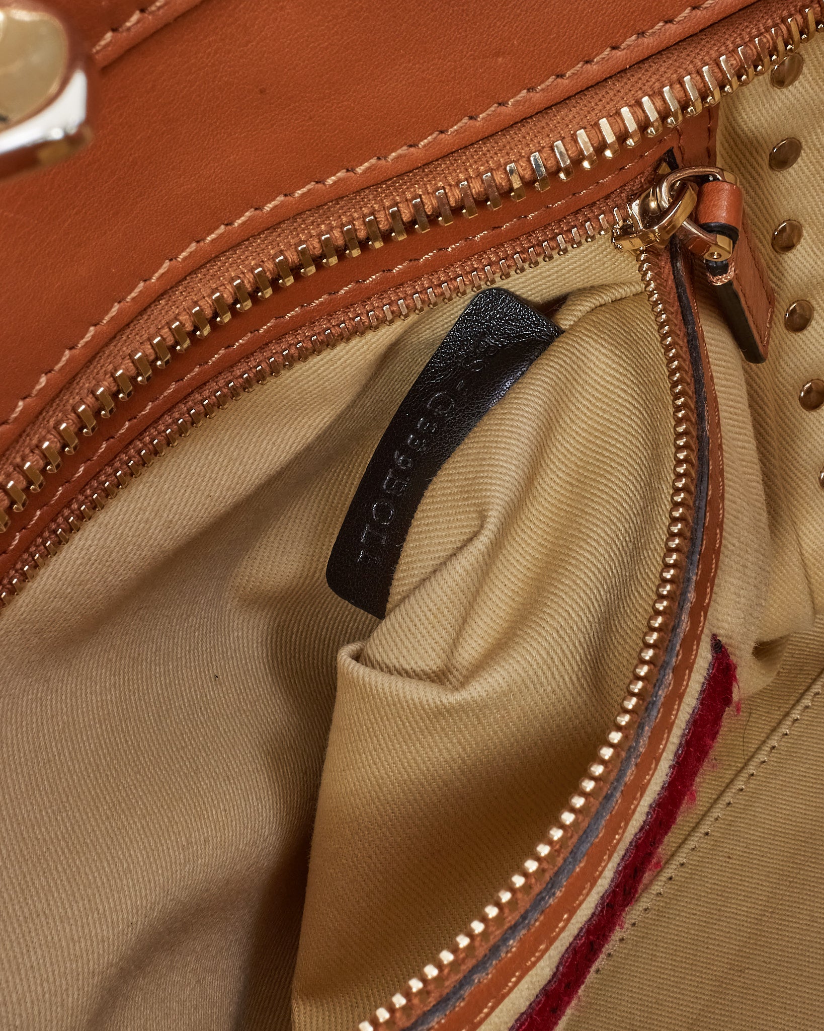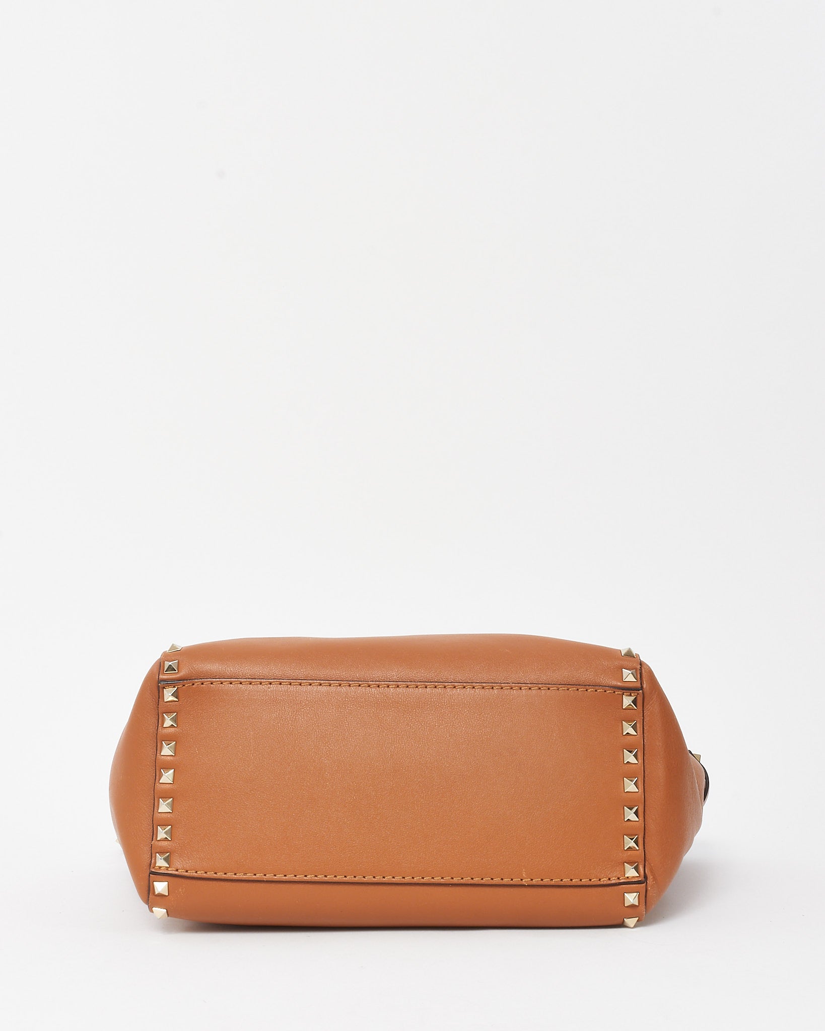 Camel Brown Leather Rockstud Convertible Flip Lock Tote with Strap