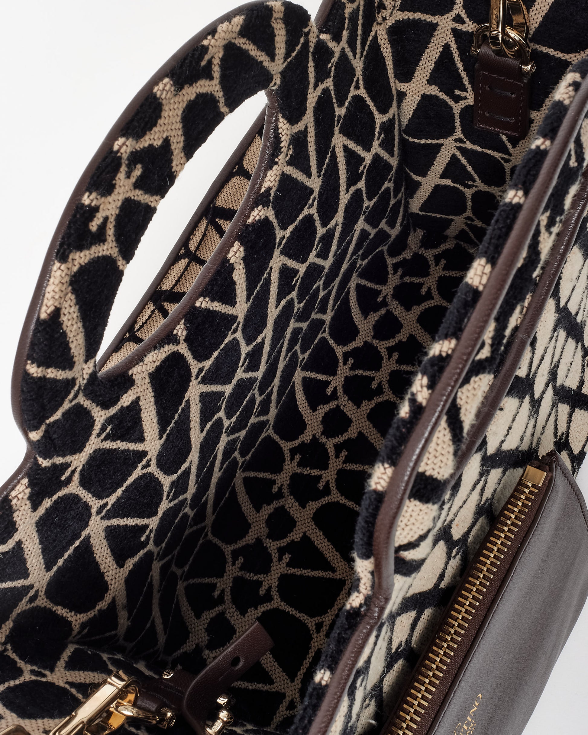 Make a bold style statement with this authentic pre-owned Valentino Le Troisième Toile Iconographic Small Tote Bag, a striking blend of artistic flair and contemporary luxury. Crafted from premium toile fabric, this bag showcases Valentino’s signature craftsmanship with an eye-catching, iconographic design that redefines modern elegance.