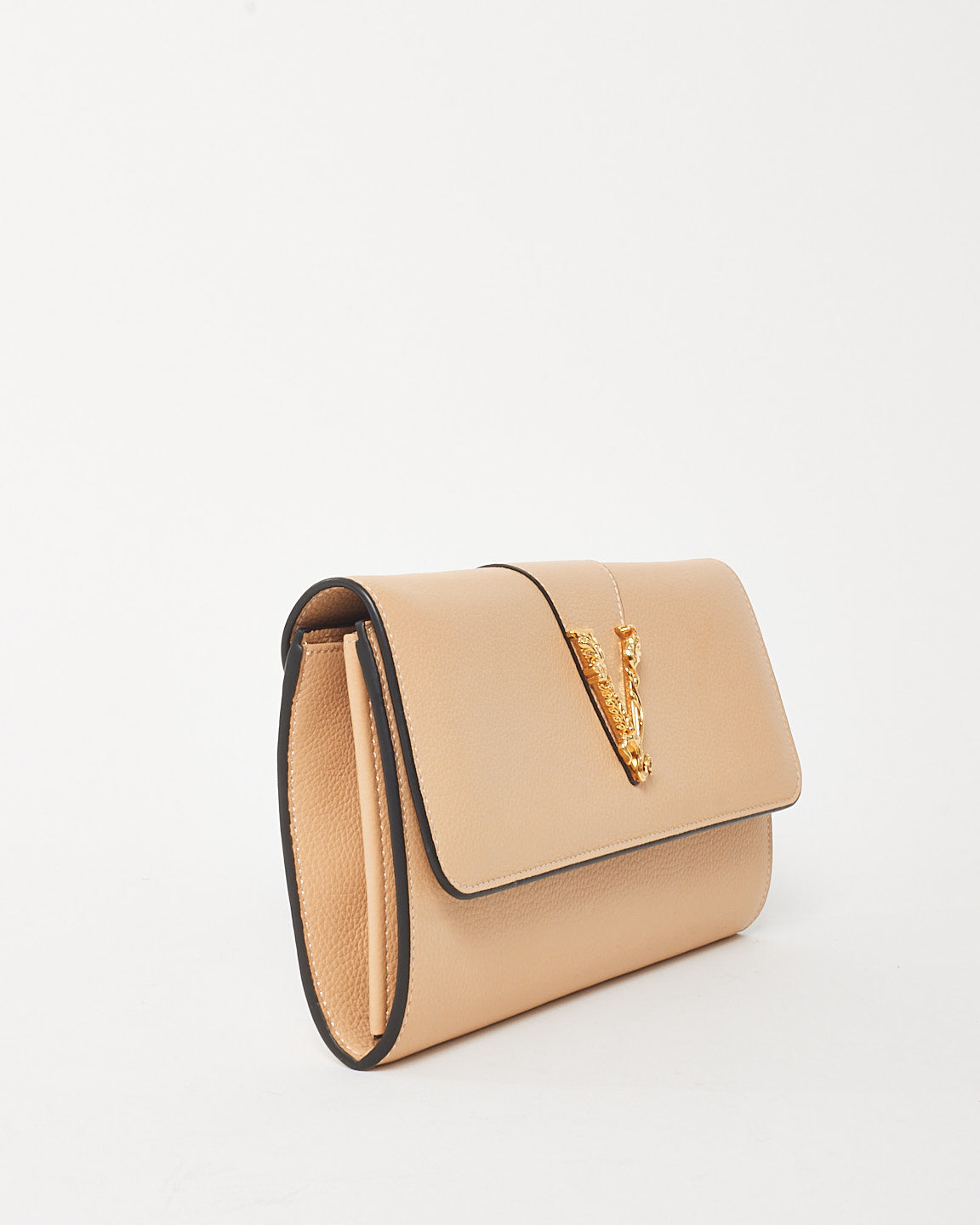 Beige Grained Leather Virtus Logo Wallet on Chain WOC Bag