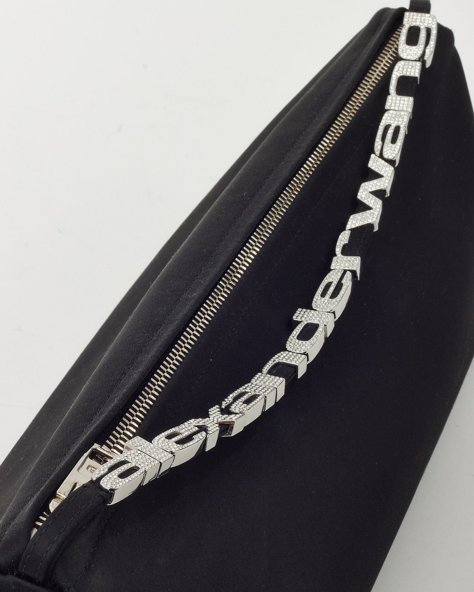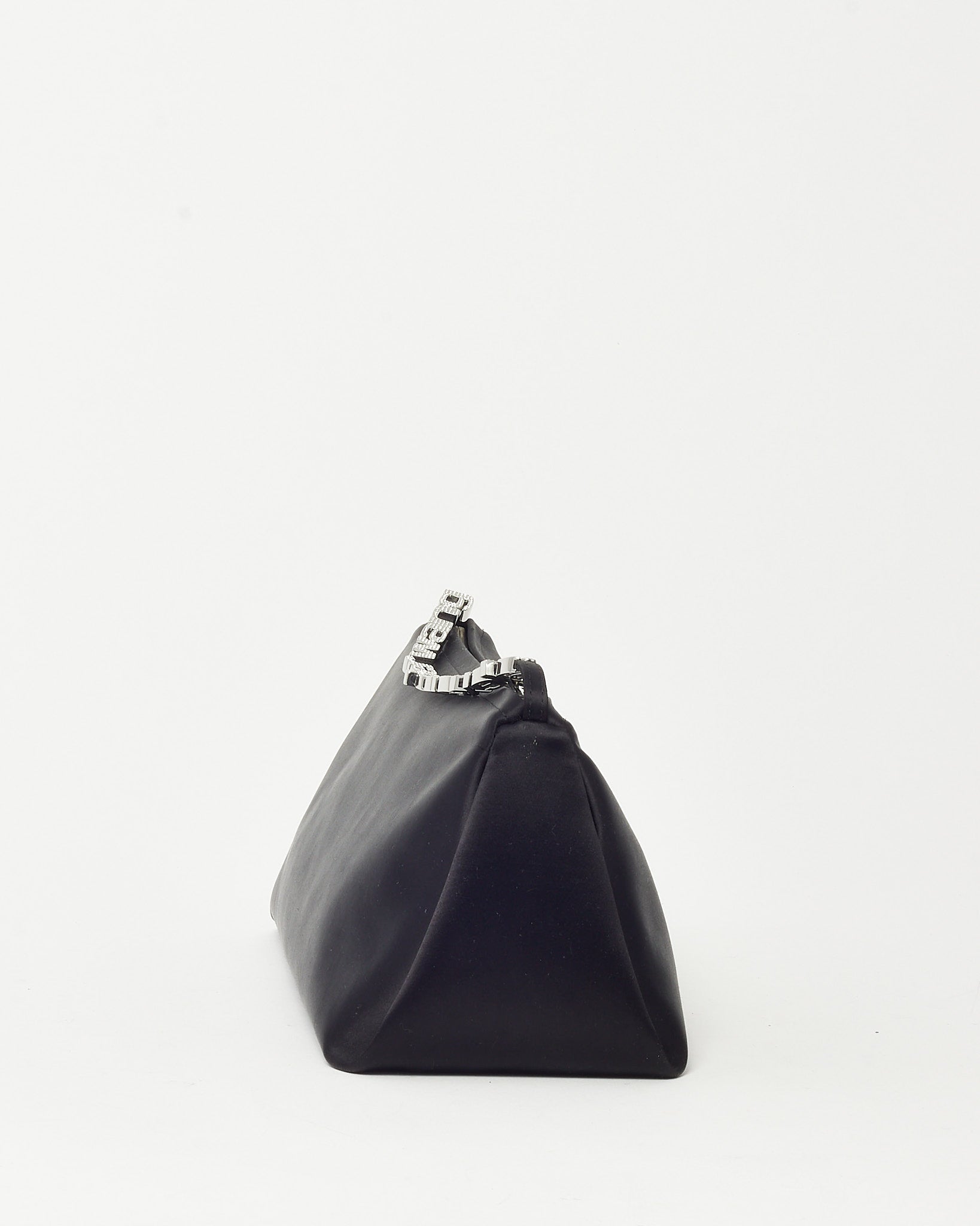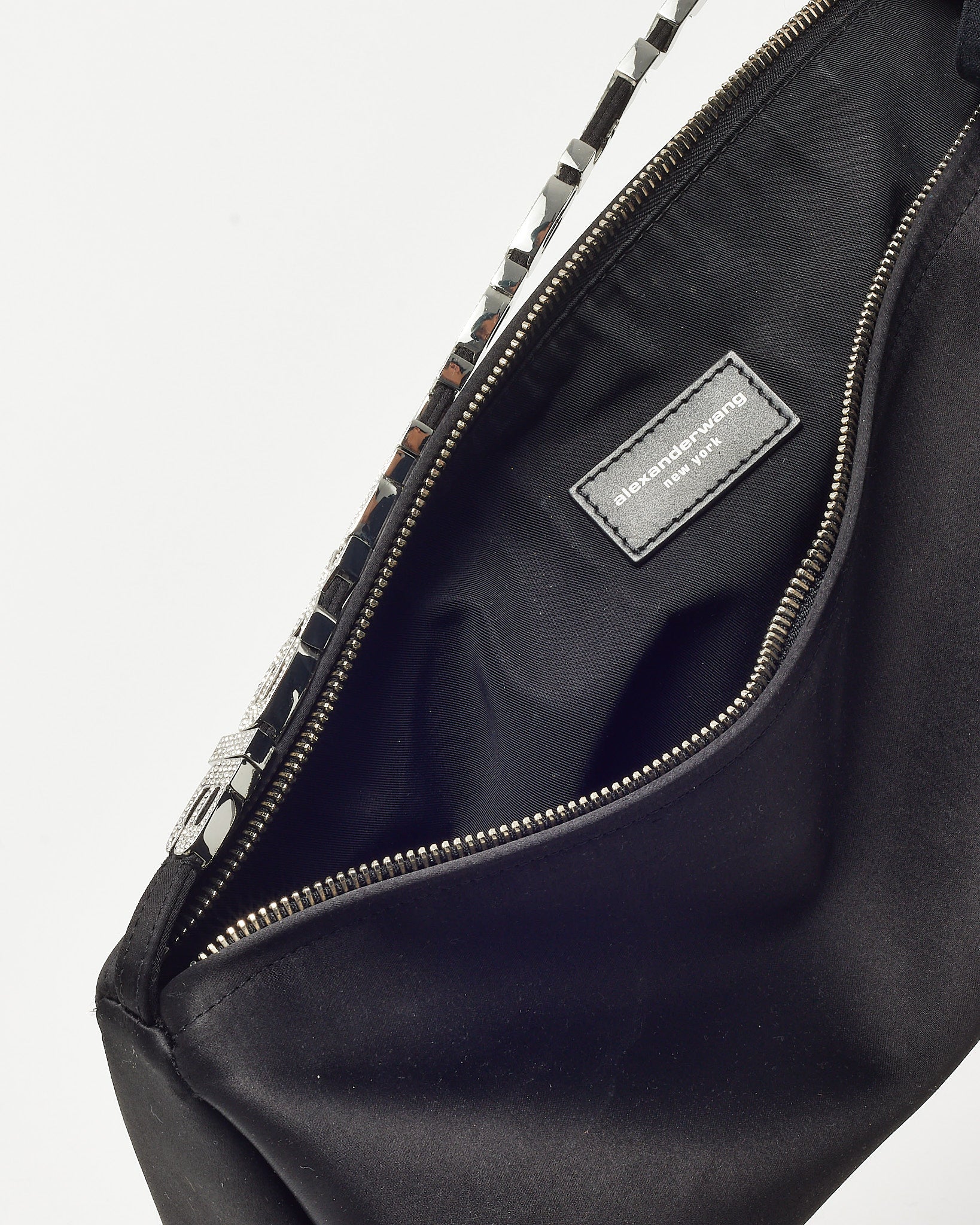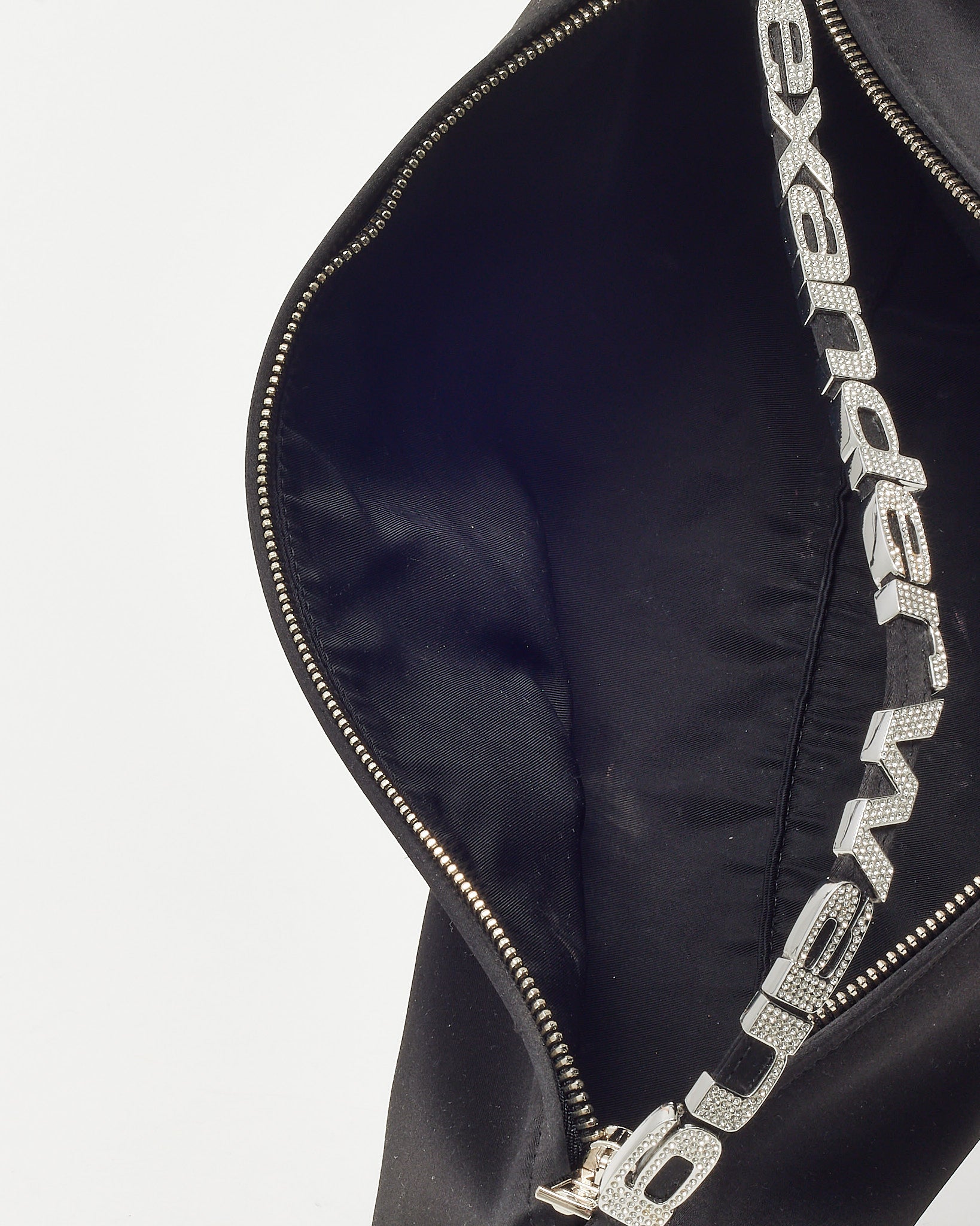 Make a bold, evening-ready statement with this pre-loved authentic Alexander Wang Black Satin Crystal Logo Marquess Micro Shoulder Bag, crafted in smooth black satin for a sleek, elegant finish. The compact micro silhouette is elevated with sparkling crystal logo strap detailing, adding a touch of glamour and signature edge. Designed with a shoulder strap for effortless wear and a petite interior for essentials, this Alexander Wang bag blends modern design with standout detail. A chic designer accessory that delivers contemporary style, shine, and night-out sophistication.
