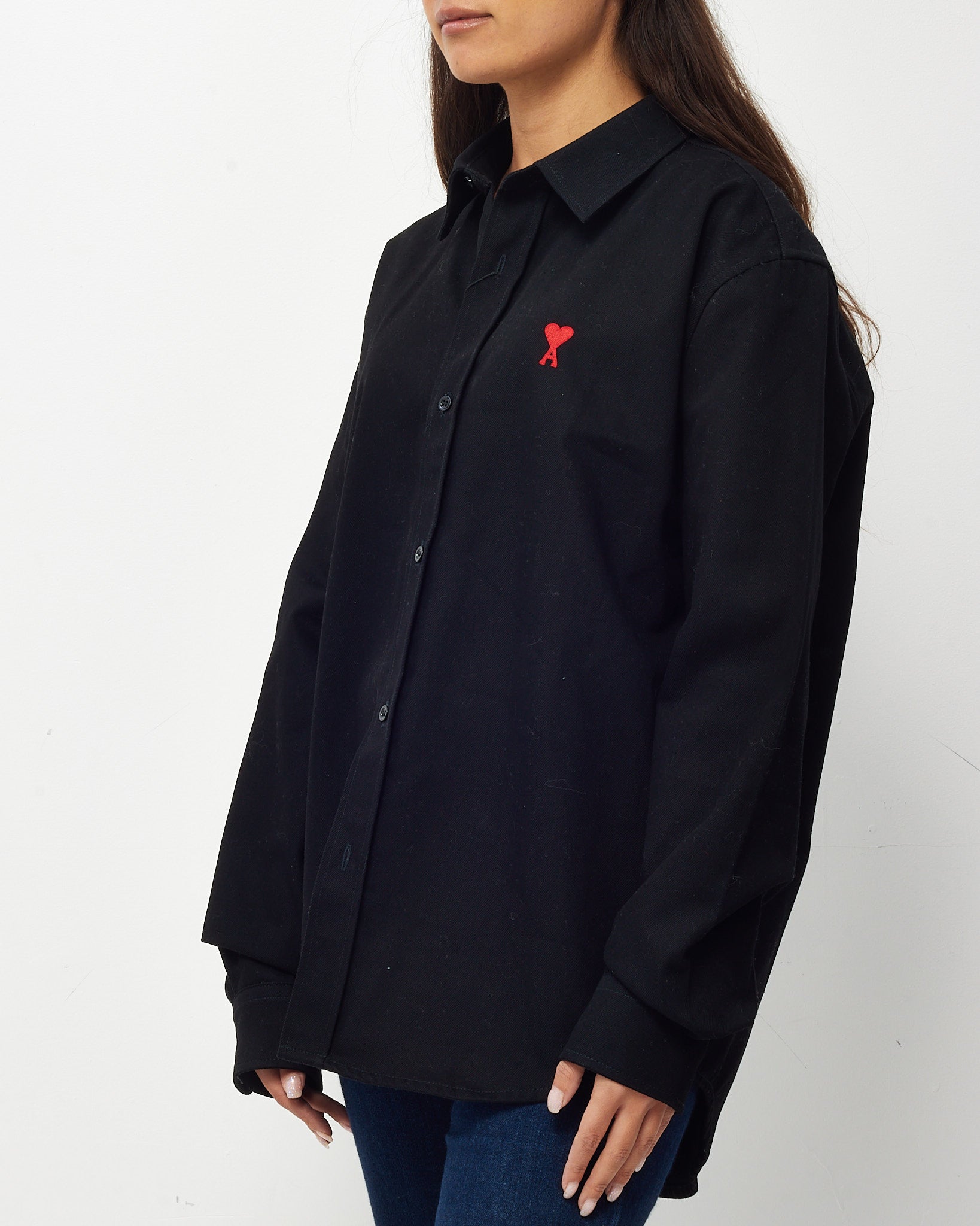 Men's Black Denim Logo Embroidered Ami De Coeur Button-Down Shirt - M / 40 MEN
