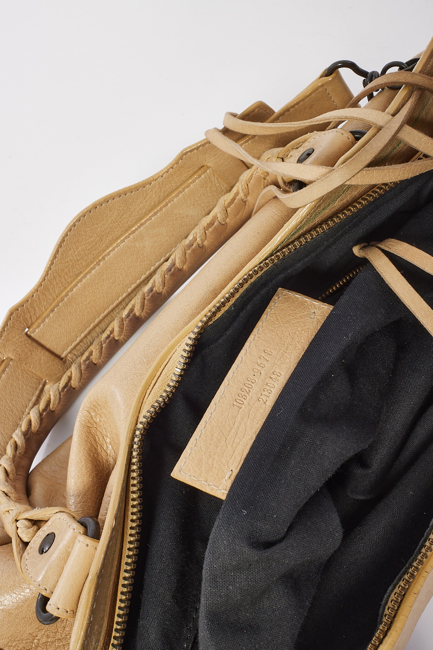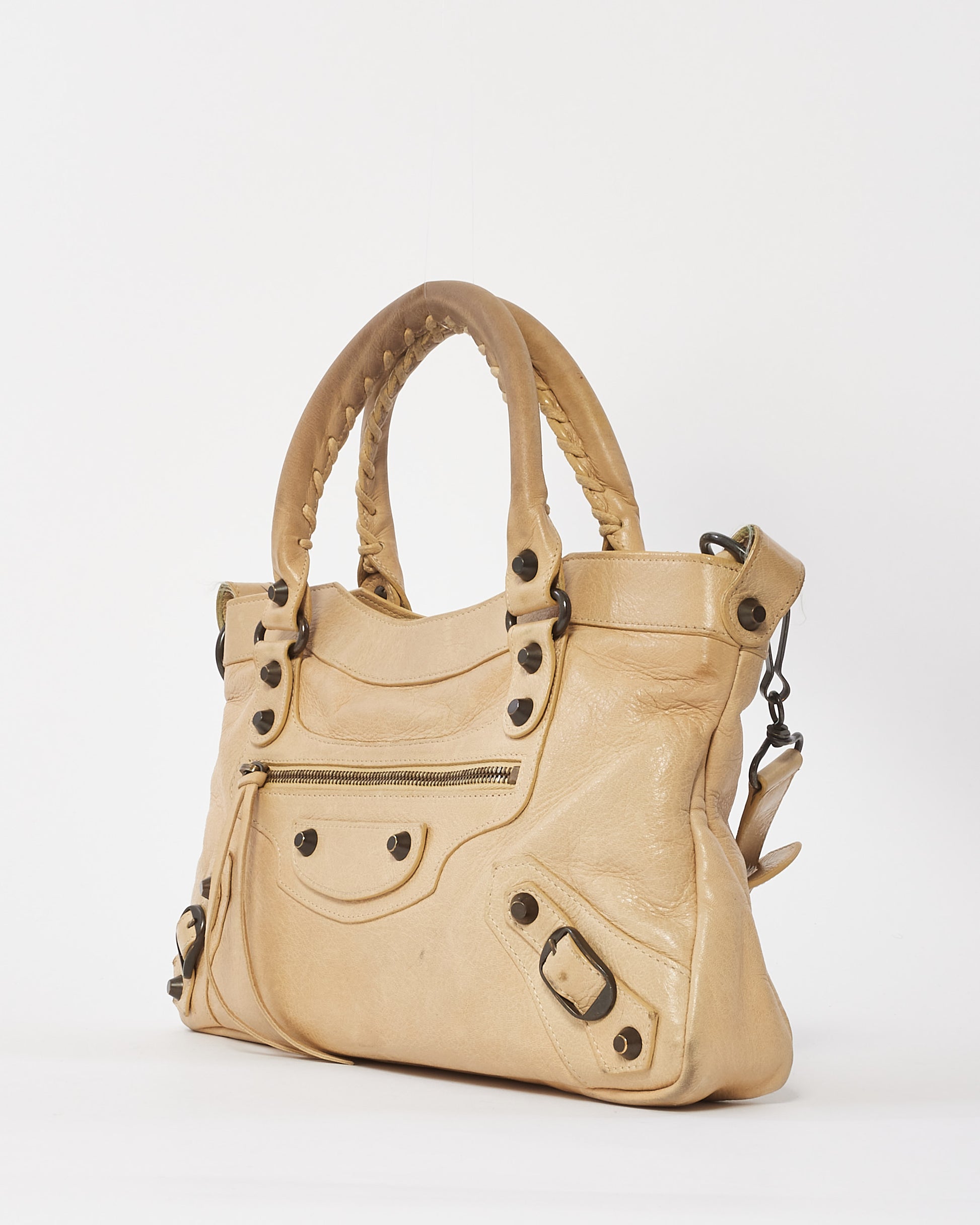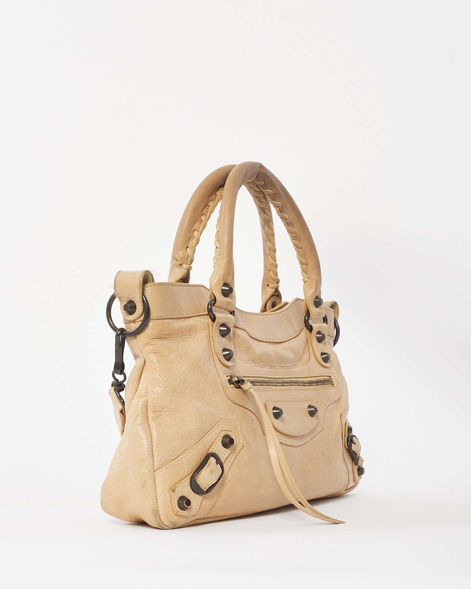 Beige Leather Gunmetal Stud Classic First 2Way Bag