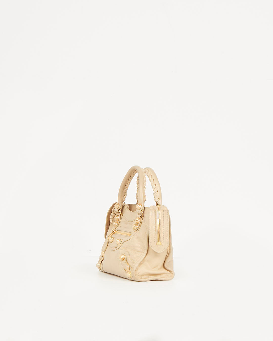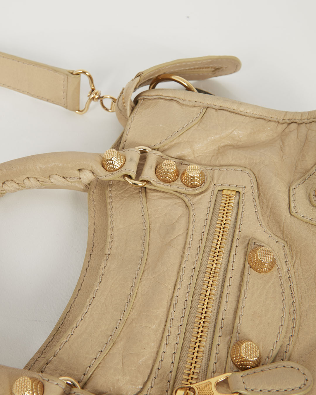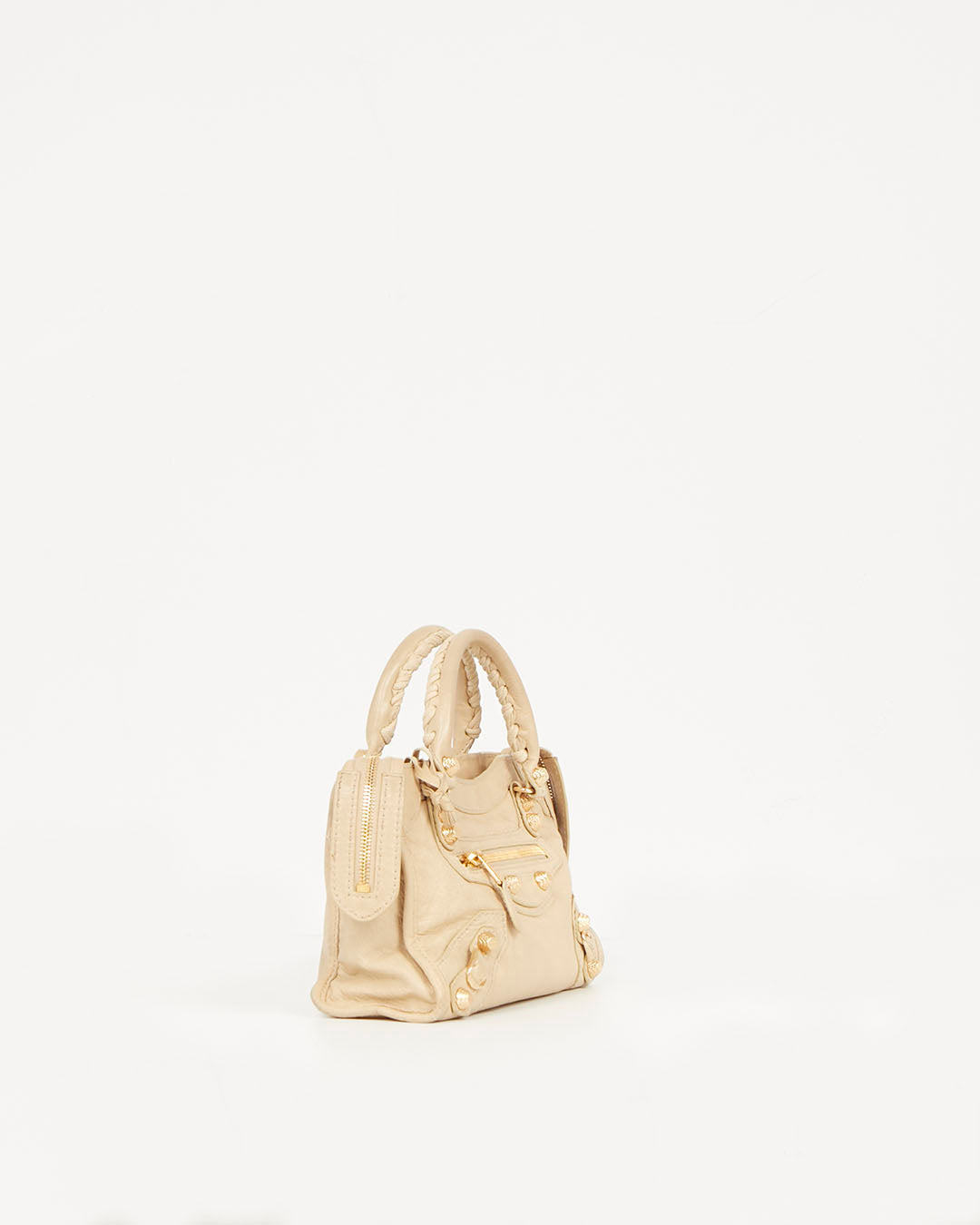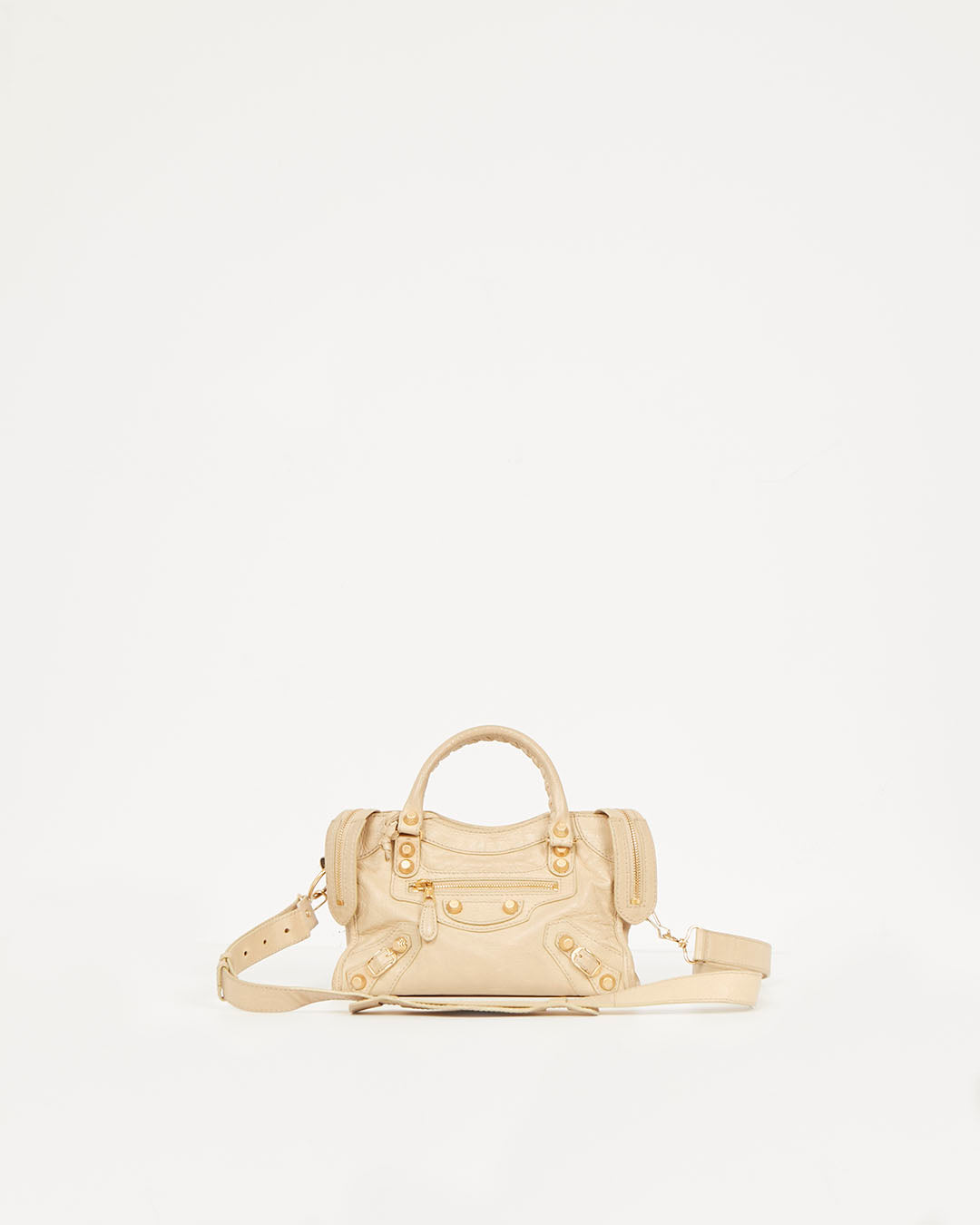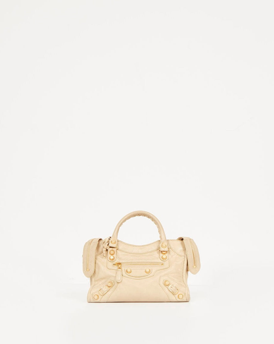 Beige Leather Motocross Giant 12 Mini City Bag